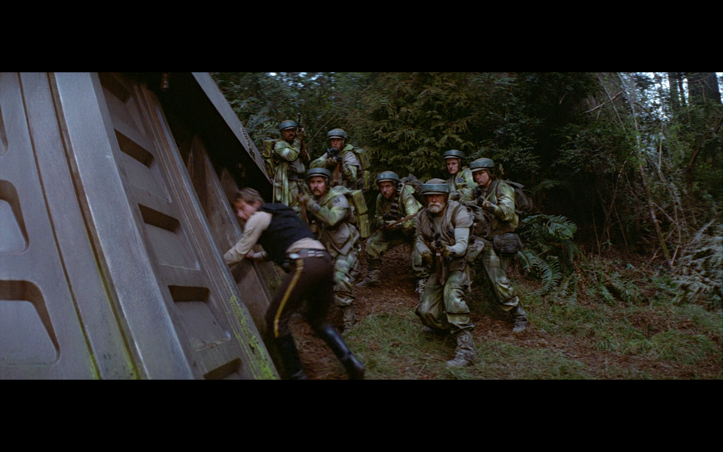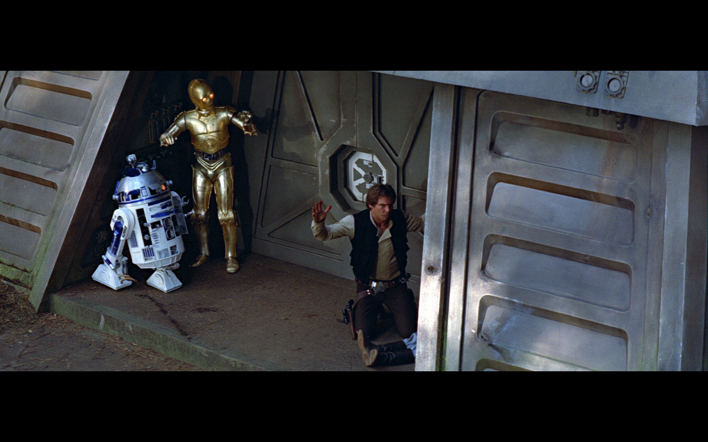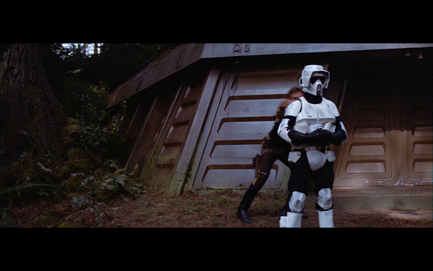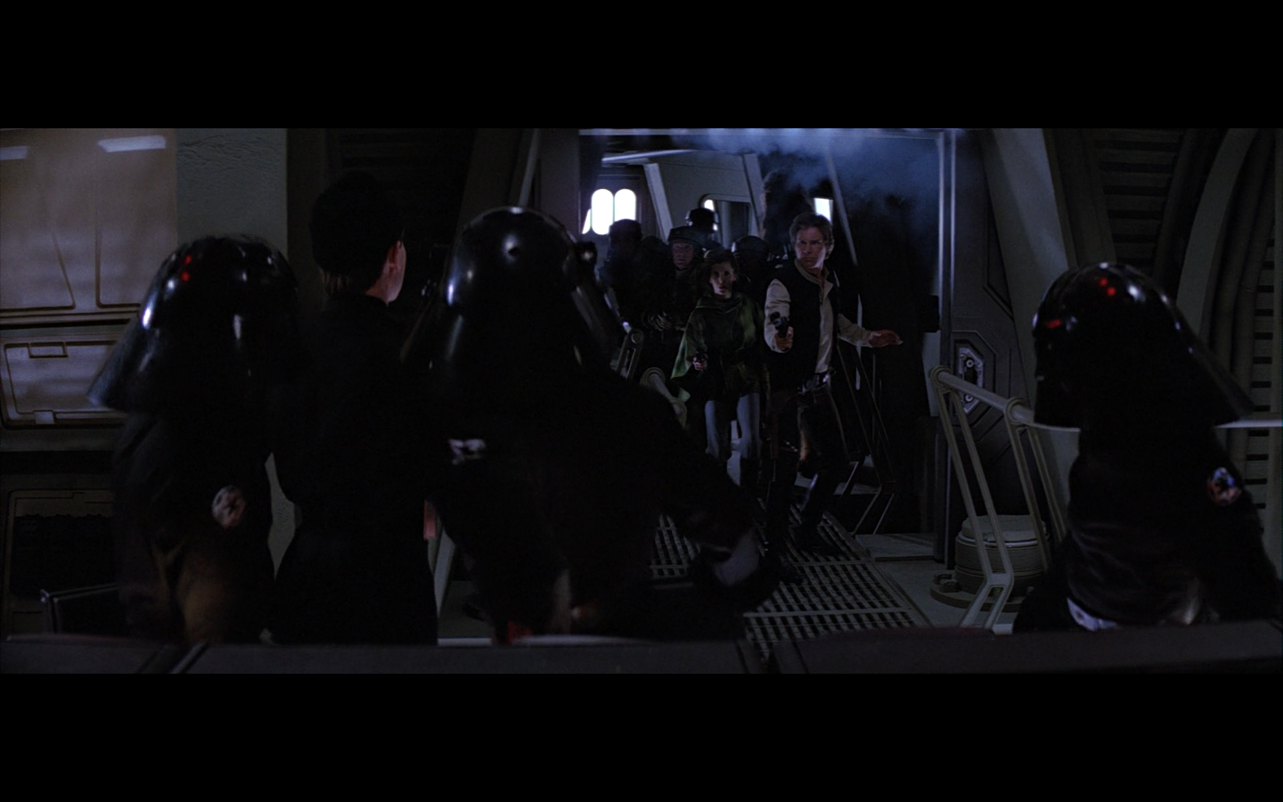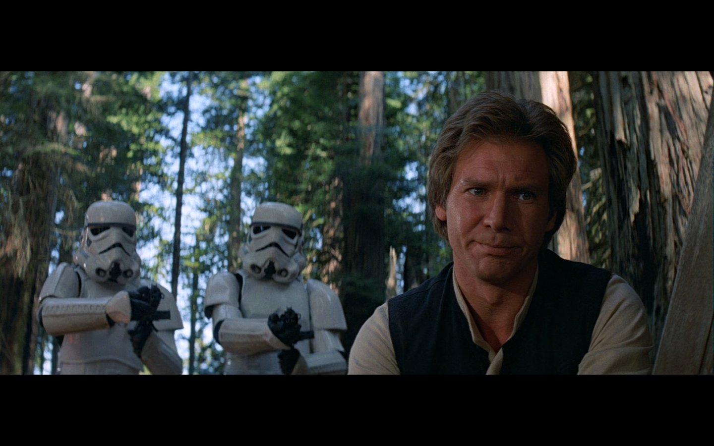 This shot would’ve been so much funnier if there weren’t also dead Rebels on the side. I love the idea of them having dialogue with the two dead Stormtroopers just lying there.