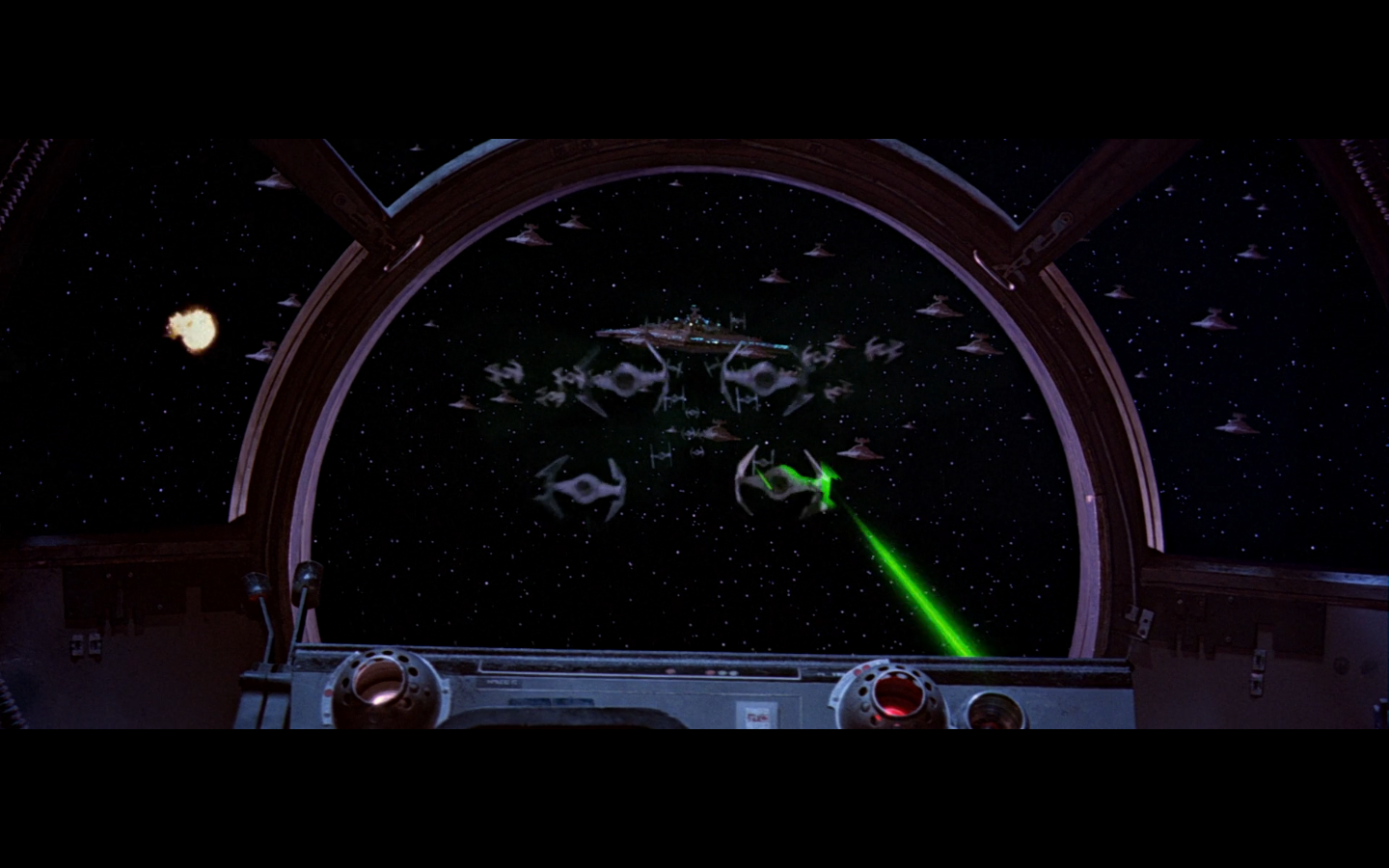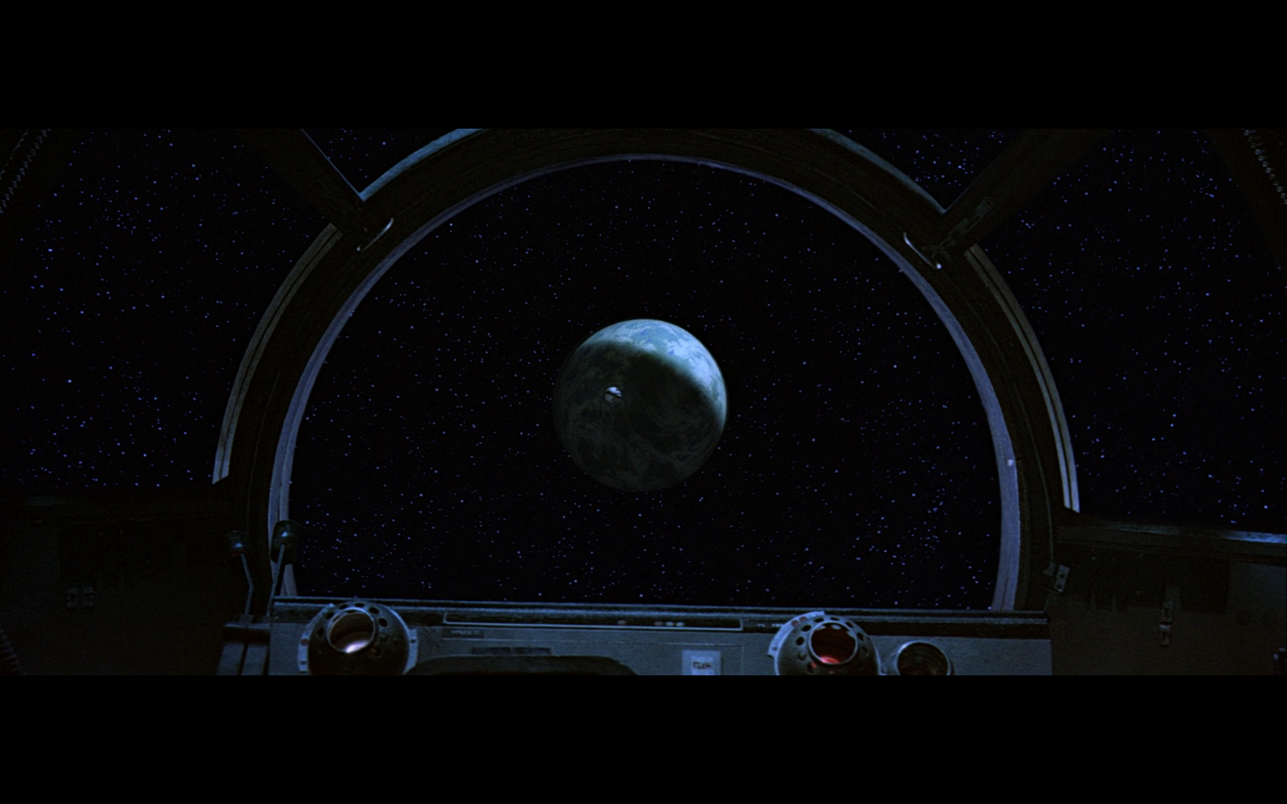 Windshield shot, plus an unfinished Death Star. Glorious image.
