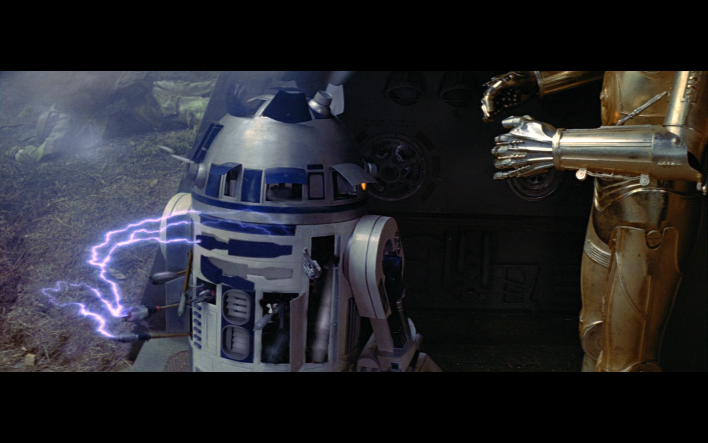 R2 gets fucked up because this is how life works. Nothing ever happens to him in the new trilogy; you know that if this had happened in Attack of the Clones, he’d have a tiny little lightsaber pop out and block the laser.