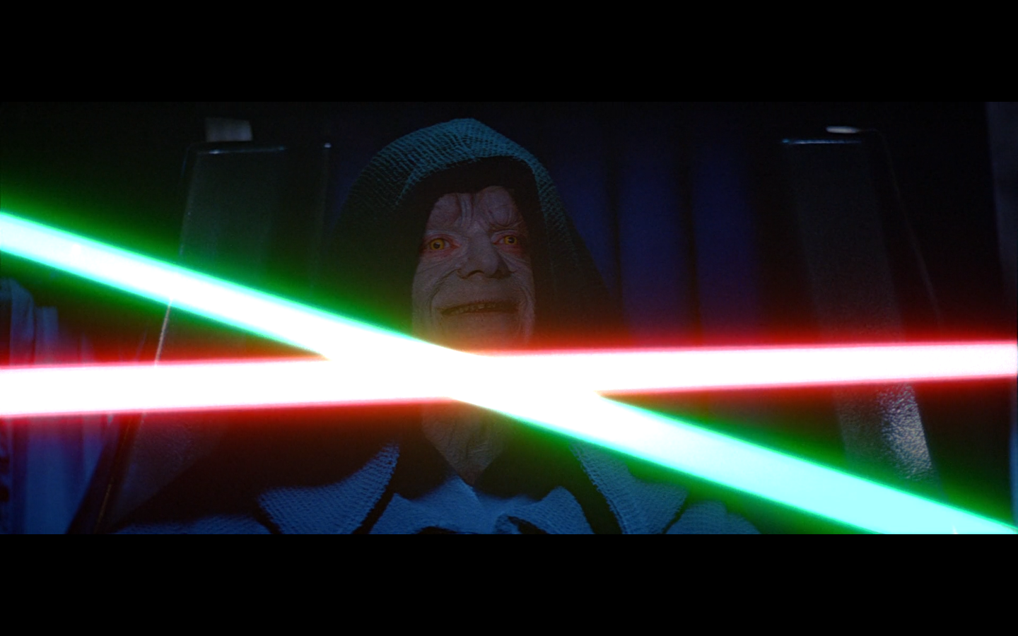 Plinkett pointed this out, and it makes sense. Palpatine refers to Luke’s lightsaber as, “a Jedi’s weapon.” We never see him use a lightsaber, and although Vader does, it stands to reason because he’s a fallen Jedi. Yoda never uses one either, which makes them far less common in this trilogy than in the new ones. You don’t expect Palpatine to have one too; he uses lightning, which appears to be a unique Sith ability. There are so many fucking lightsabers in the new trilogy, I’m pretty sure they sell lightsaber Swiss Army knives on key chains.