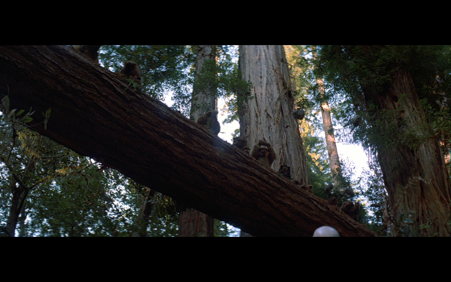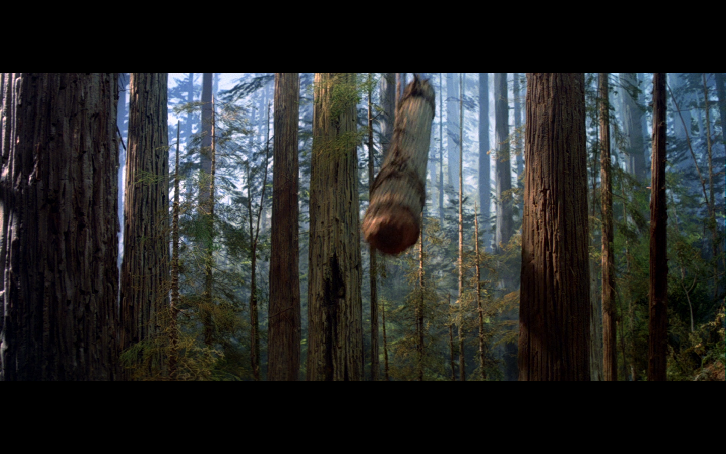 This montage of the battle turning around doesn’t make much sense. Did all of these traps get set by the Ewoks in advance? You’d have to figure they were. They’re still right next to the shield generator thing, so you have to wonder how they set up these things in time without alerting the Stormtroopers. You know how many Ewoks it’d take to hoist those logs way up into the trees to rig the swinging hammer trap thing? Like a drillion.