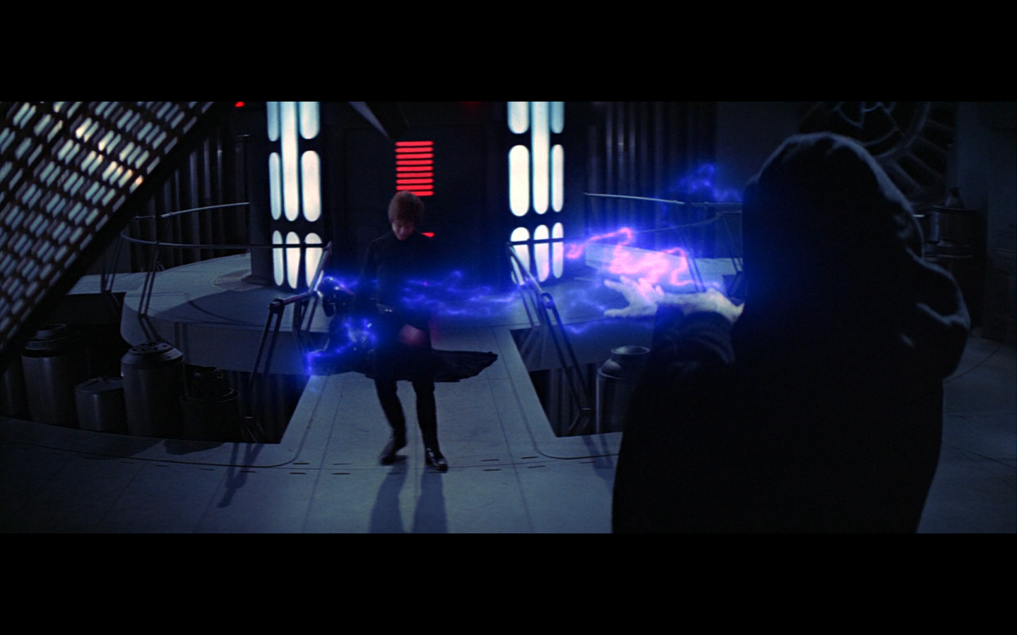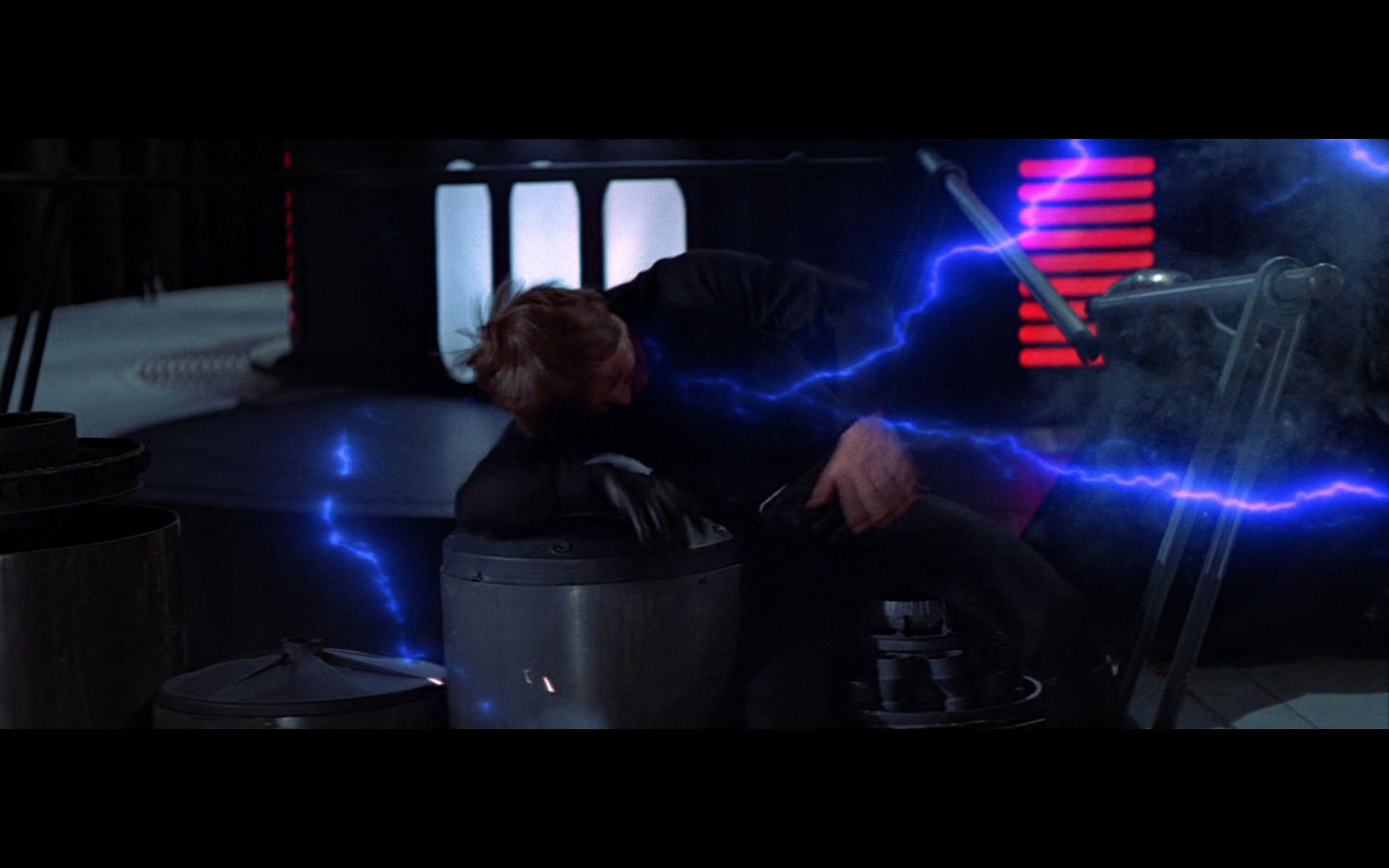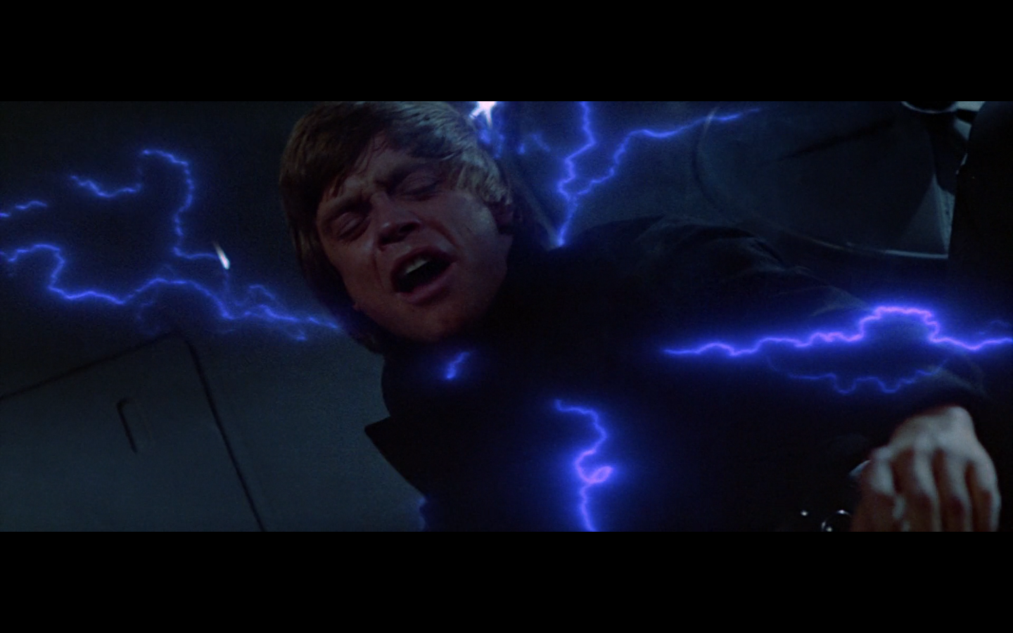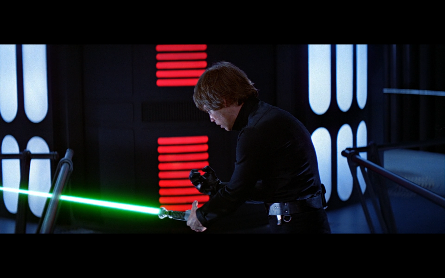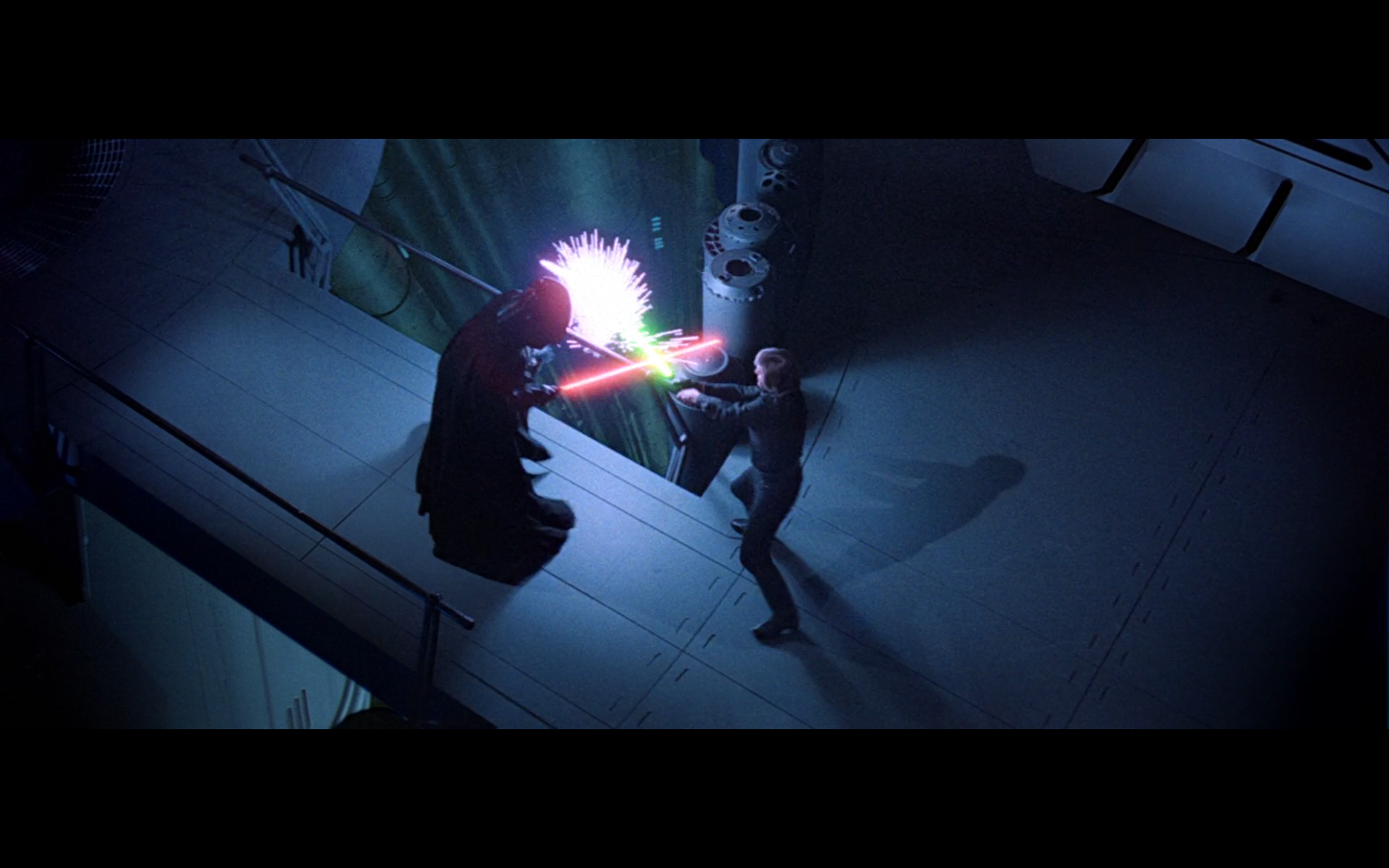 I like this type of lightsaber duel. Luke’s going buck wild and most of the shots are close up so we can see his face, rather than the choreography. Priorities.