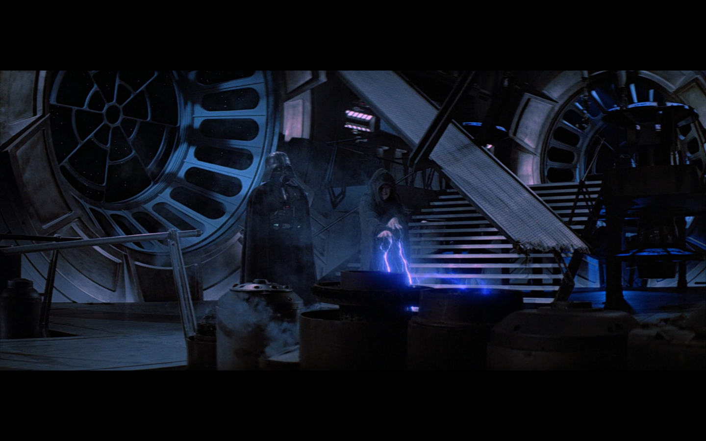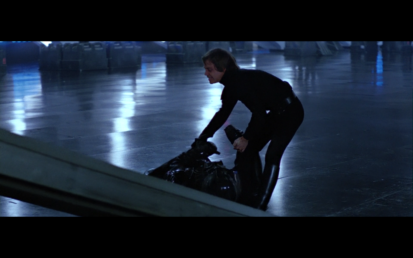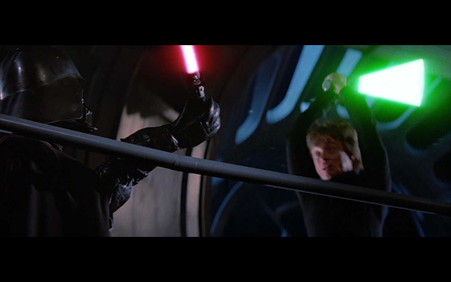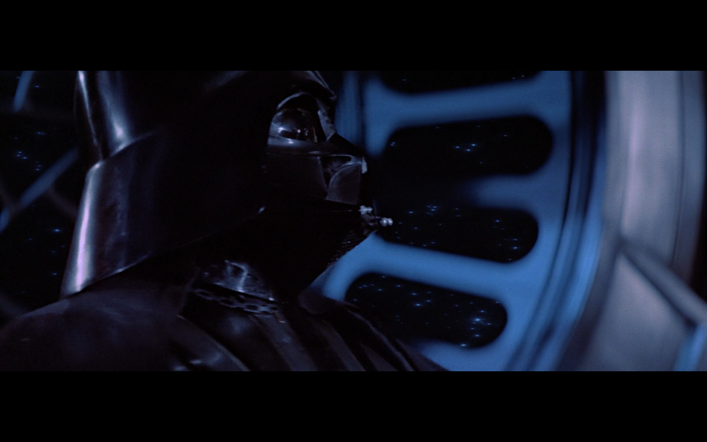 Okay, you can’t not like this scene. Vader’s searching for Luke in the dark, which gives him time to say shit that makes Luke feel conflicted. We get a visual representation of the two sides at battle in him with the shot of his face half covered in shadow.