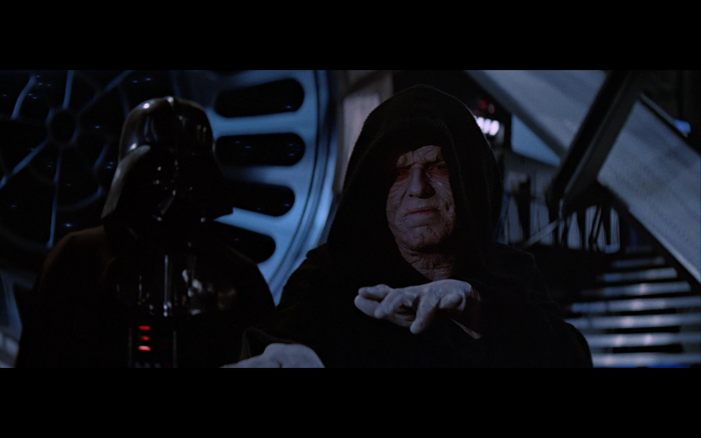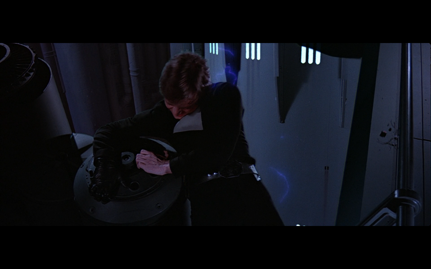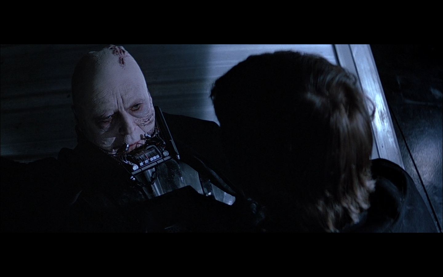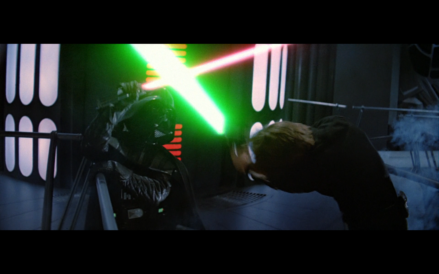Okay, you can’t not like this scene. Vader’s searching for Luke in the dark, which gives him time to say shit that makes Luke feel conflicted. We get a visual representation of the two sides at battle in him with the shot of his face half covered in shadow.