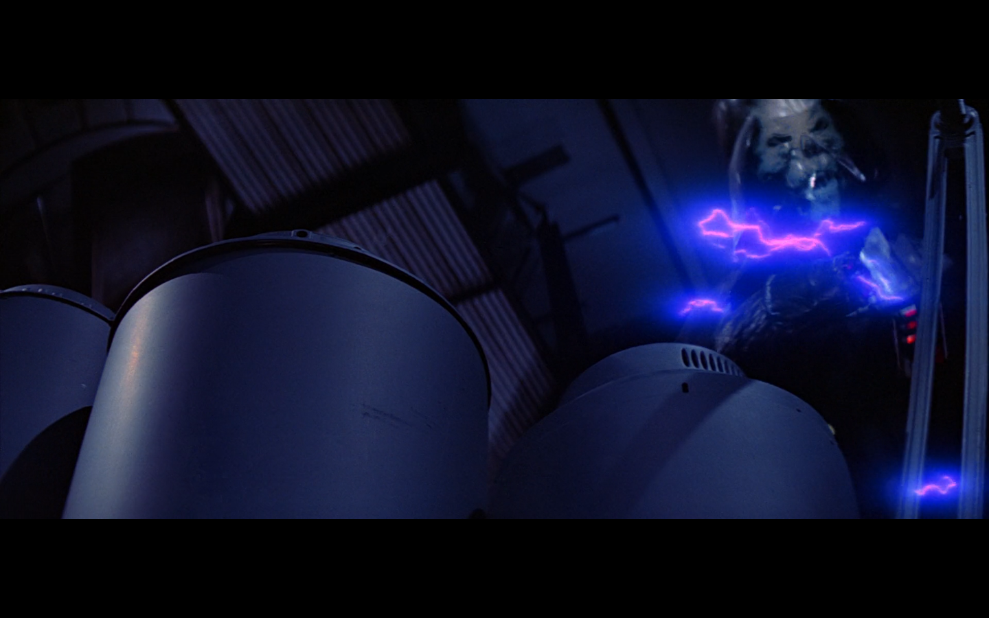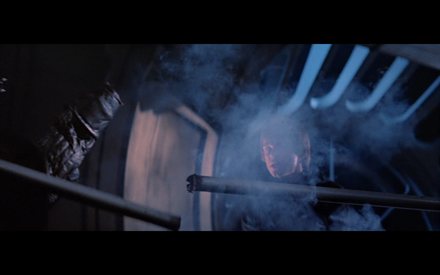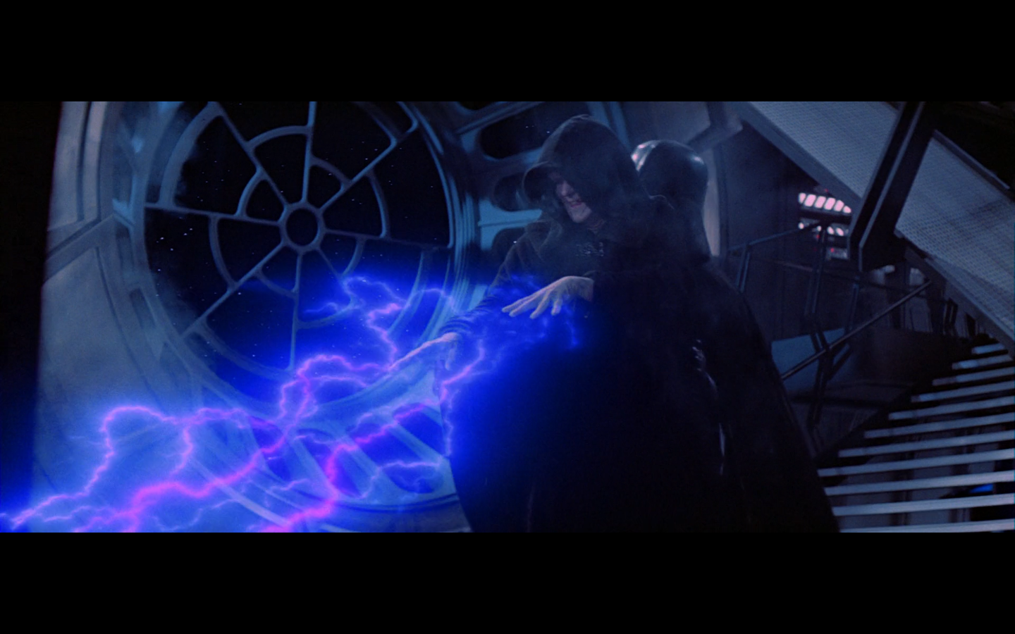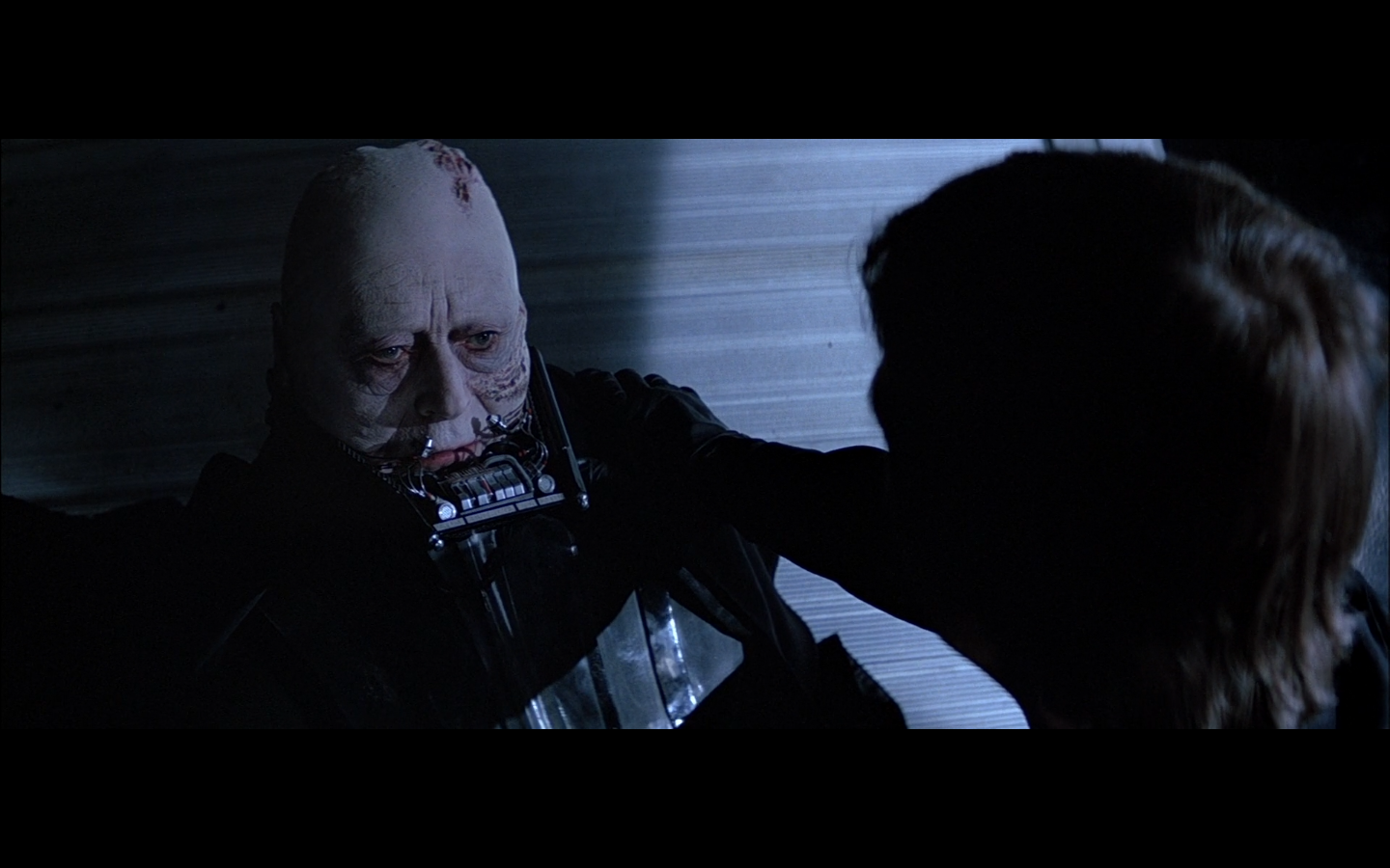 Okay, you can’t not like this scene. Vader’s searching for Luke in the dark, which gives him time to say shit that makes Luke feel conflicted. We get a visual representation of the two sides at battle in him with the shot of his face half covered in shadow.