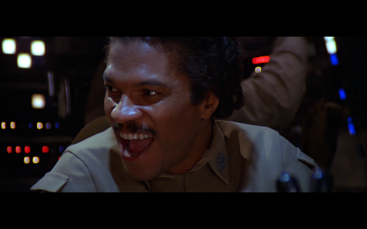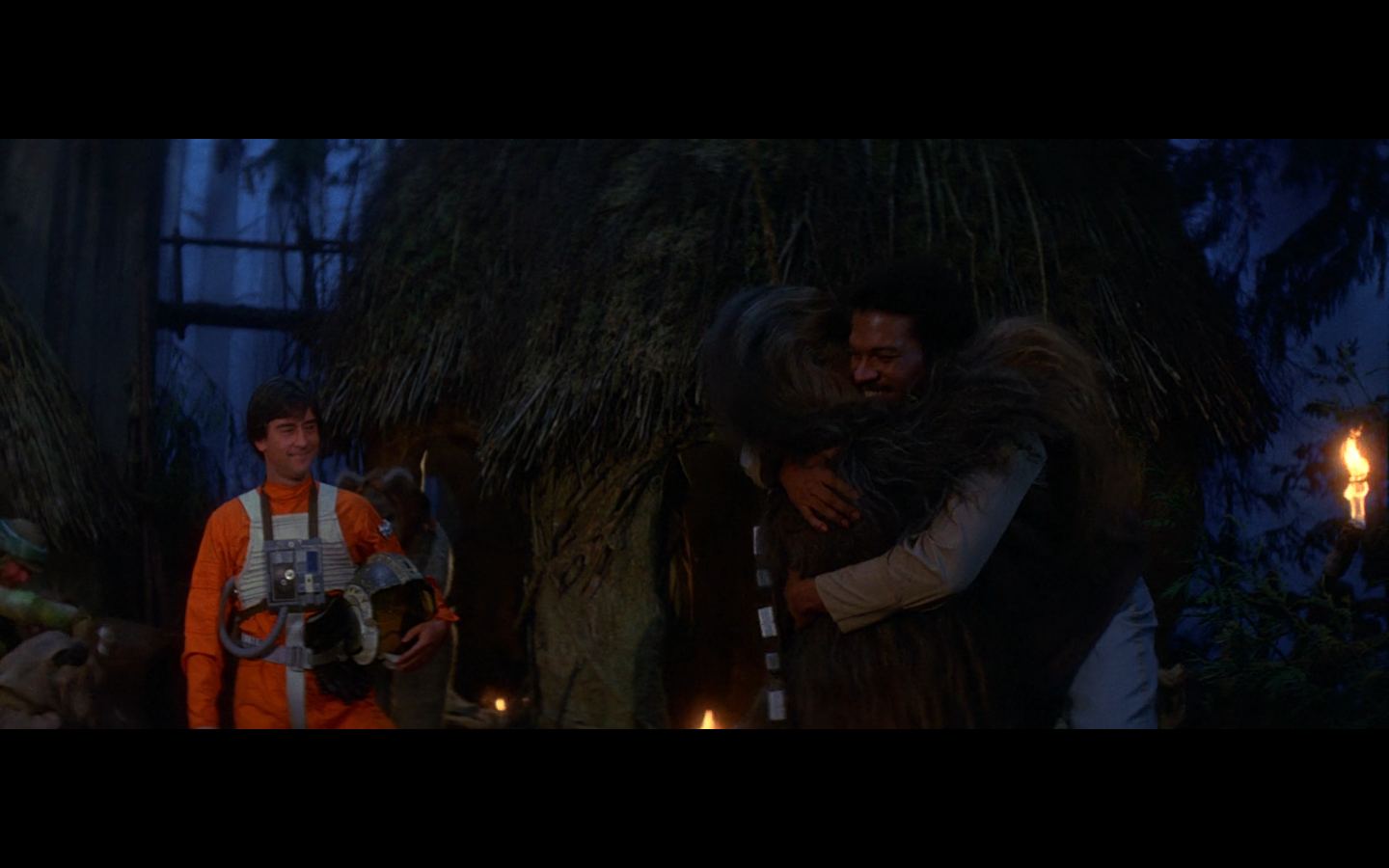 It’s funny how as they cut back to all of them standing there for the final shot, everyone’s just standing, except for Billy Dee Williams, who’s clapping. George Lucas wants you to know that even in the Star Wars universe, black guys have rhythm.