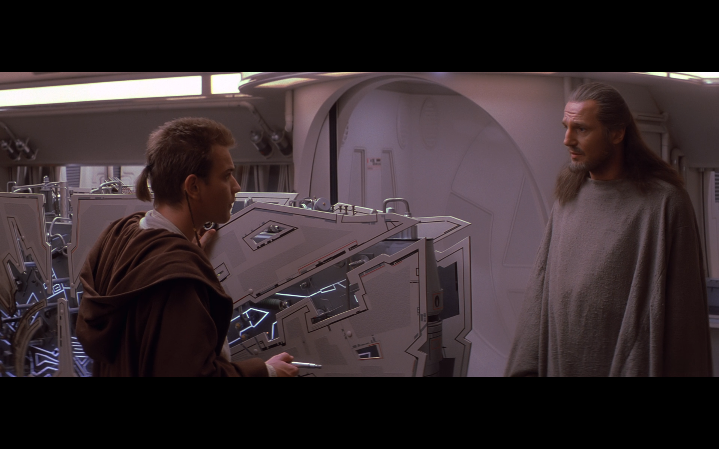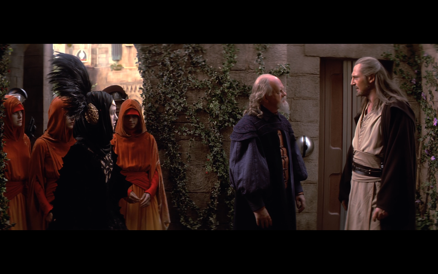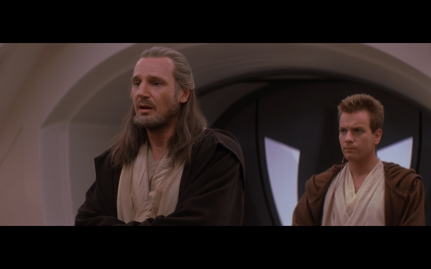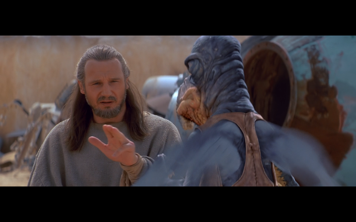 So what the fuck is Qui-Gon’s purpose here? He hasn’t said a goddamn word during any of this, and now he just stands up and looks around and says nothing. Why are they here, what’s going on? Is any of this important in the least?