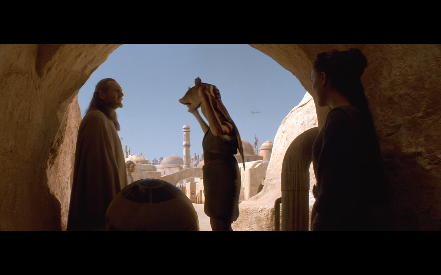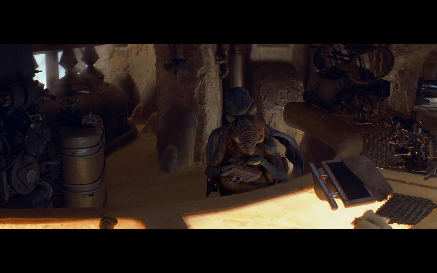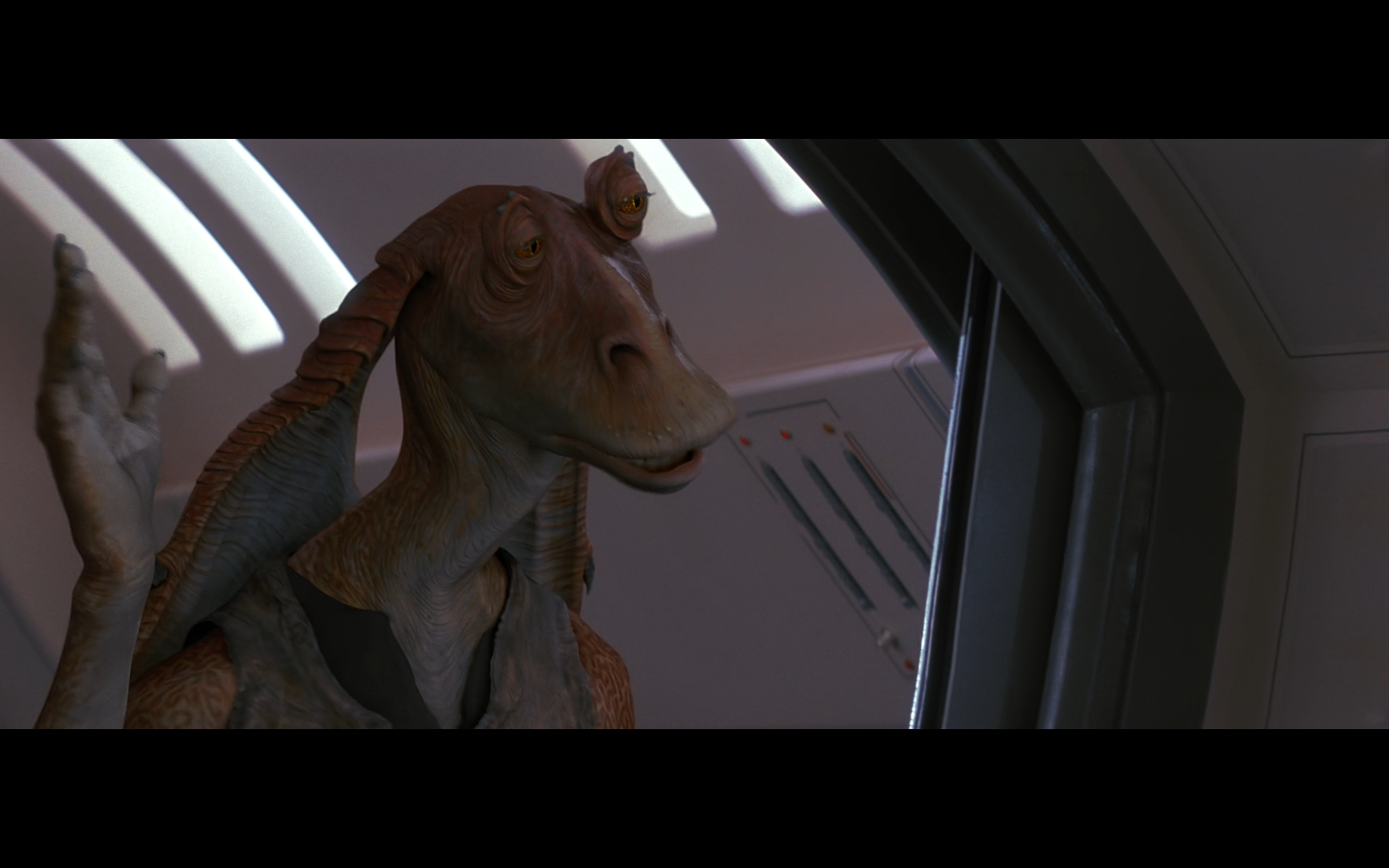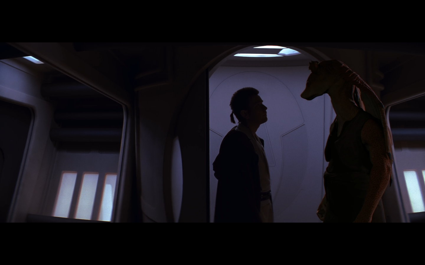 So what the fuck is Qui-Gon’s purpose here? He hasn’t said a goddamn word during any of this, and now he just stands up and looks around and says nothing. Why are they here, what’s going on? Is any of this important in the least?