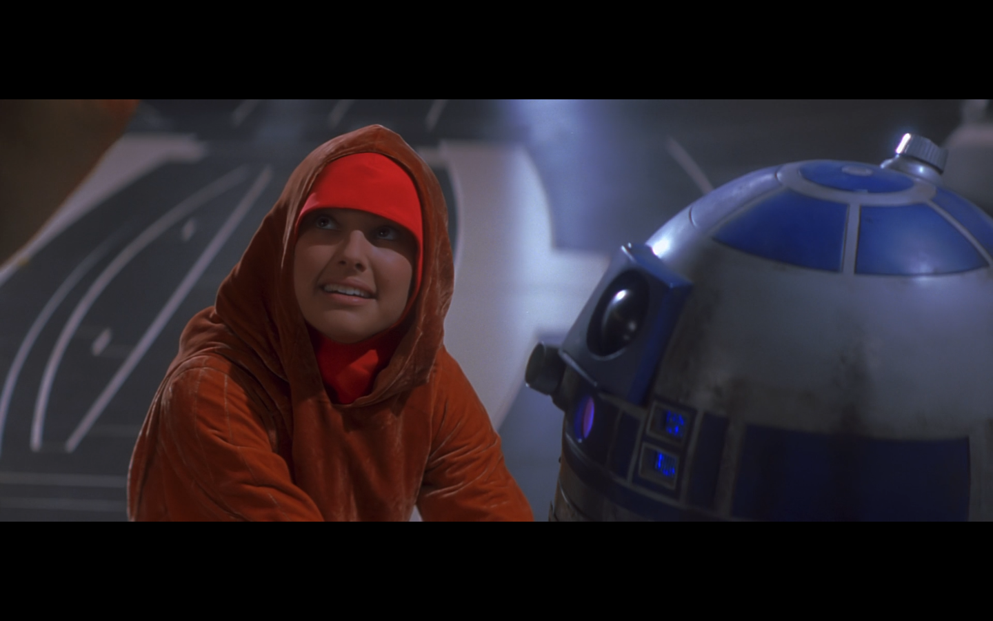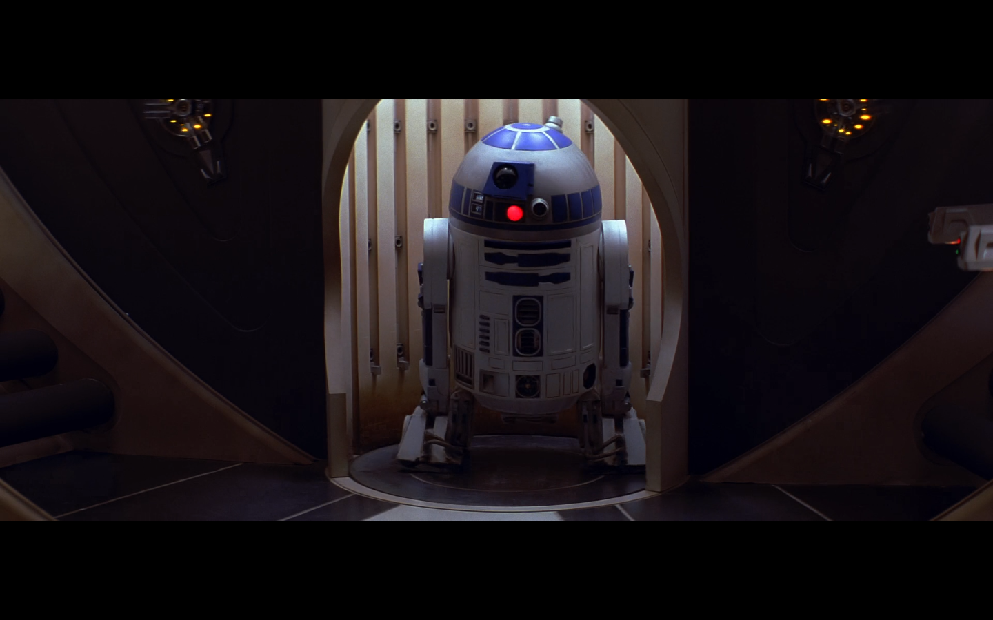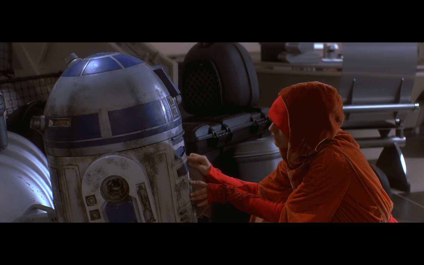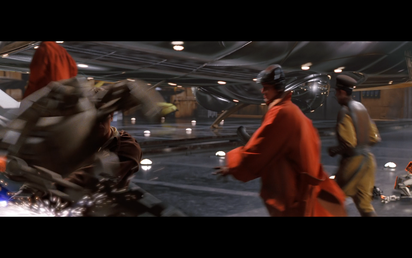 This feels so much like a video game. They’re walking in and are told they have to free some pilots that are conveniently being held in a little rectangle on the floor, as if the droids put down masking tape. And the camera pans over to the pilots in such a way that you expect to see an ‘objective’ icon pop up over them.
