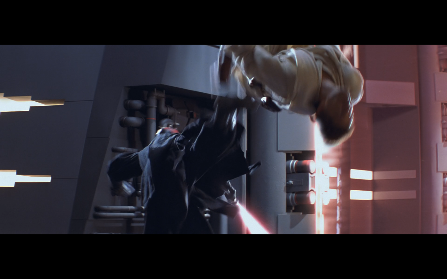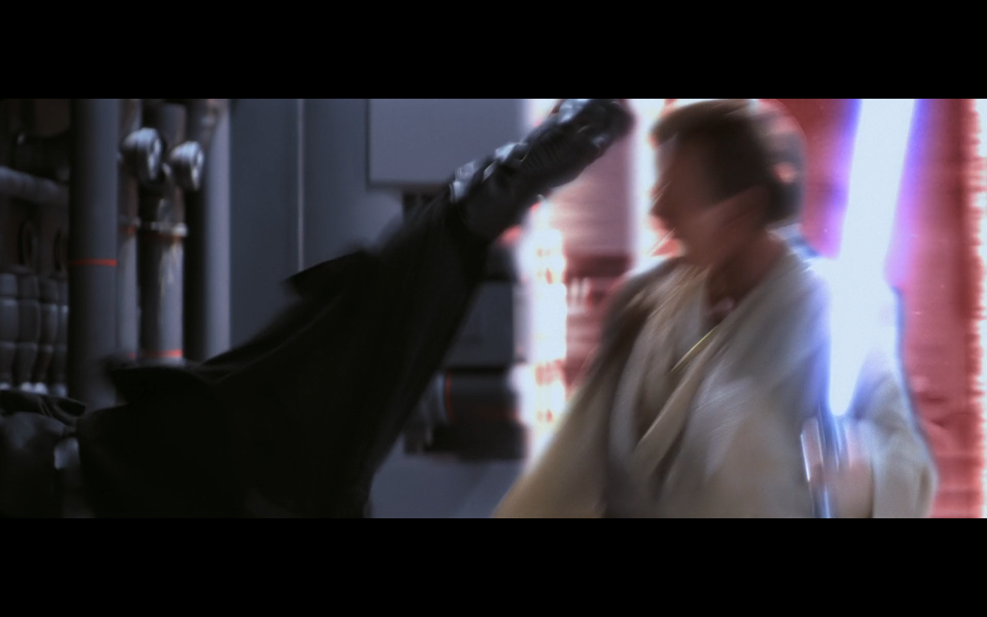 Note the blood spurt. Cause sometimes blood spurts from lightsaber wounds, and sometimes it doesn’t.