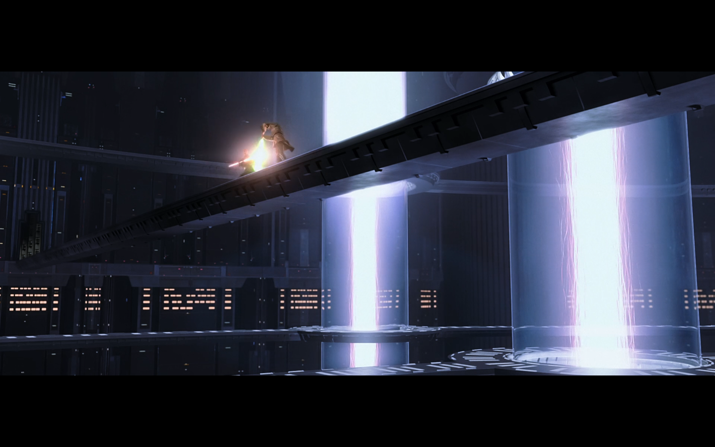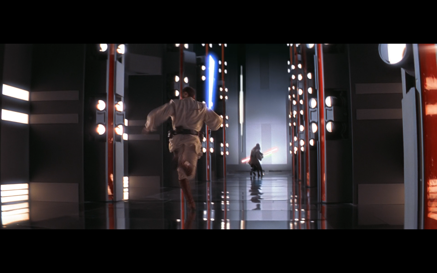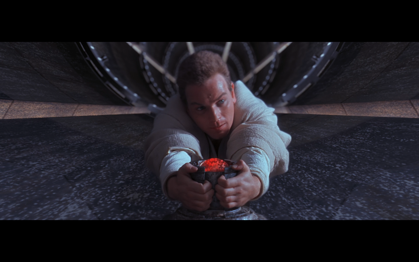 I love the idea of just messing with Obi-Wan here. Putting the tip of your lightsaber down to his knuckles and saying, “Not touching, can’t get mad!”