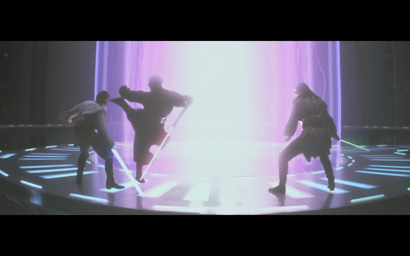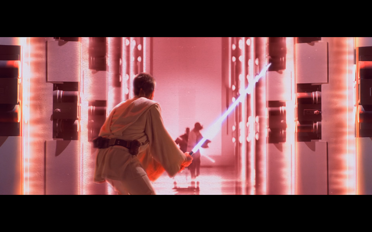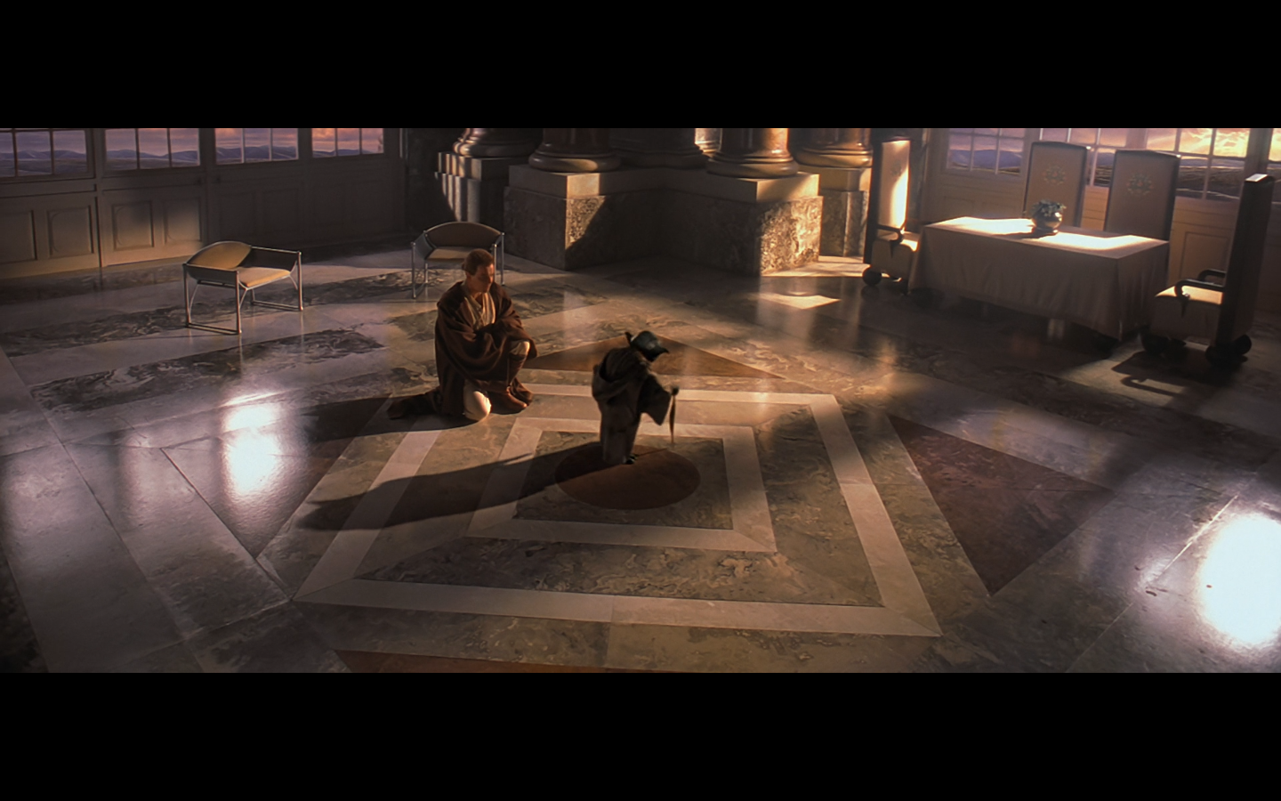 I love the idea of just messing with Obi-Wan here. Putting the tip of your lightsaber down to his knuckles and saying, “Not touching, can’t get mad!”