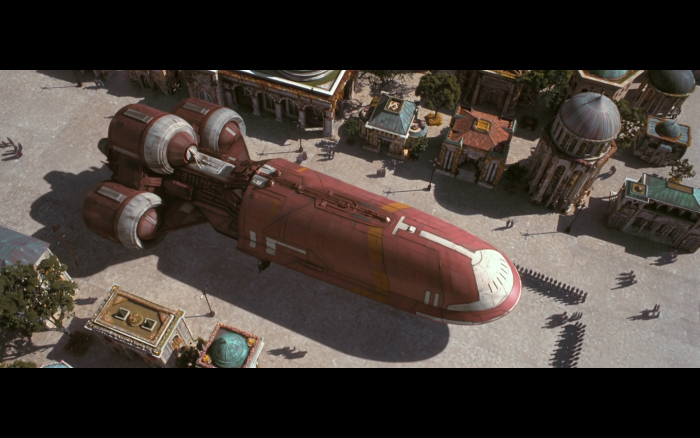 The interesting thing is that they keep calling the Trade Federation a franchise, meaning it derives its right to exist from the Galactic Senate. Wouldn’t that mean that a new, more powerful Supreme Chancellor would be able to revoke their charter without much difficulty? Later on, we hear complaints about how the Trade Federation is still around and how Nute Gunray is still in power – wouldn’t you talk to Palpatine about that? Unless…he’s using them for his malevolent ends. But it’s amusing how they complain about it and are never like, “Oh right, their charter could be revoked by the guy from OUR planet that we’re friends with!”