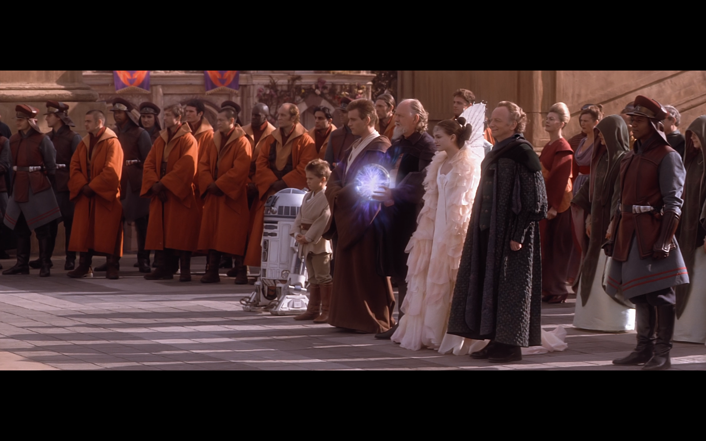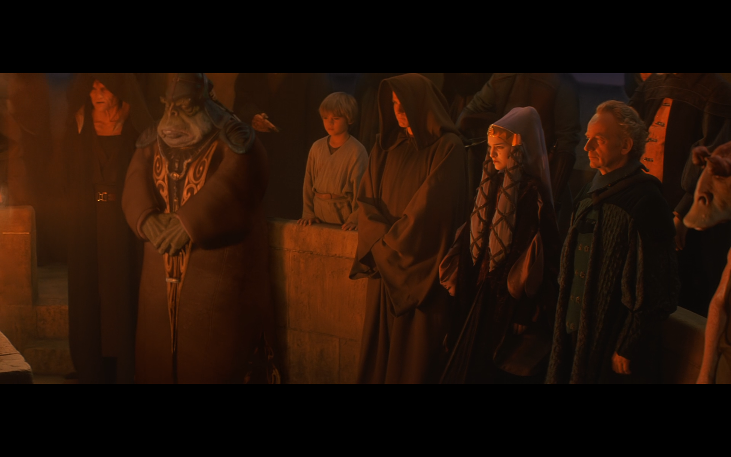 I love how Boss Nass randomly has a place of honor at the funeral for a Jedi he spent all of 15 minutes with and got mind raped by.