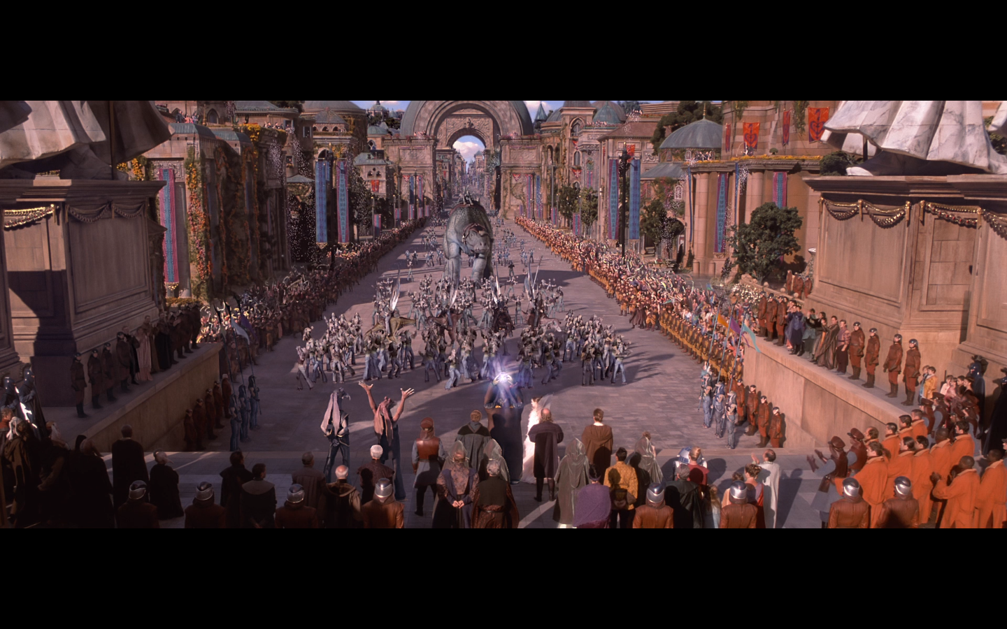 This part is even more Dinotopia than before, with the little children up on the walls throwing flowers. It’s uncanny. Because it’s stolen.