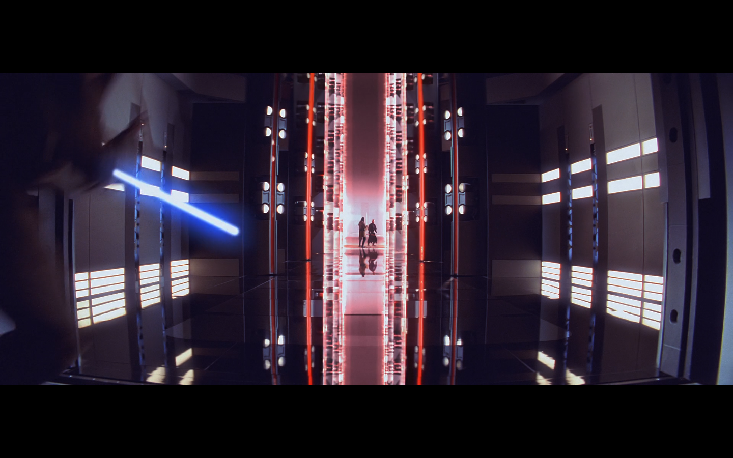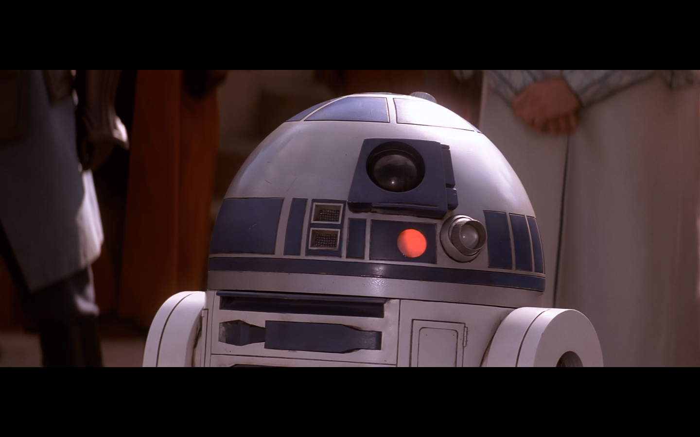 Oh, I get it. Callback to the end of A New Hope. Down to the cut to R2.