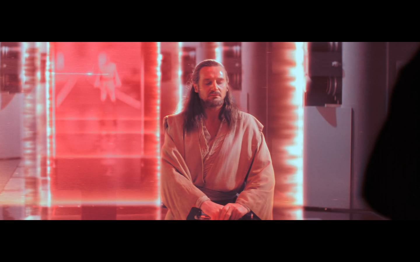 This is some perfect character shit right here. Obi-Wan’s anxious to get into battle, Qui-Gon’s praying and saving his energy, and Darth Maul is just pacing – he wants to fuck this guy up.