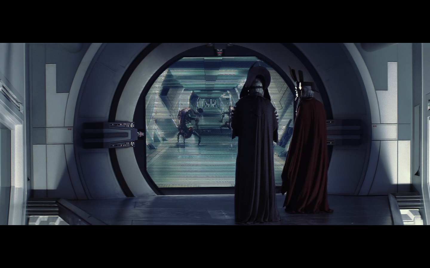 And the last shot — I just love the hallway. No idea why it exists at all, but I love it anyway. It’s just a badass place to fight. Plus I love how we get character development (which is a shocker, in this trilogy, I know) while they’re just hanging out there. But mostly for me it’s about the hallway.