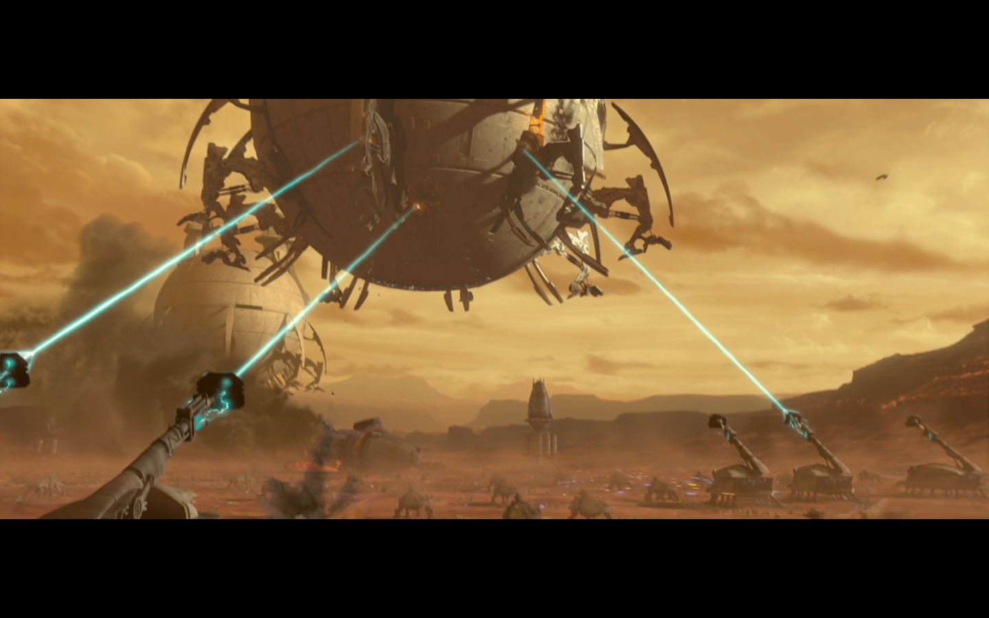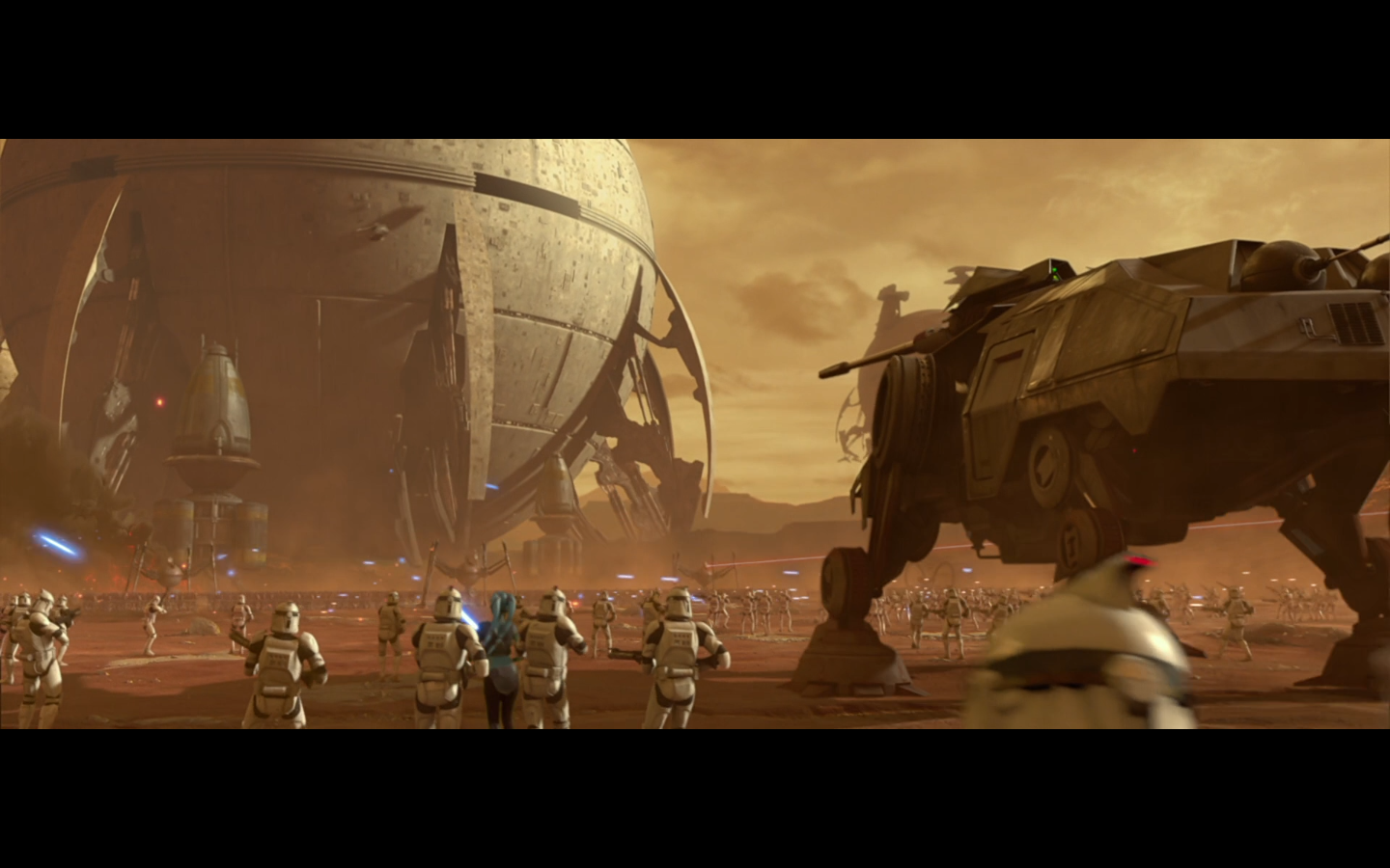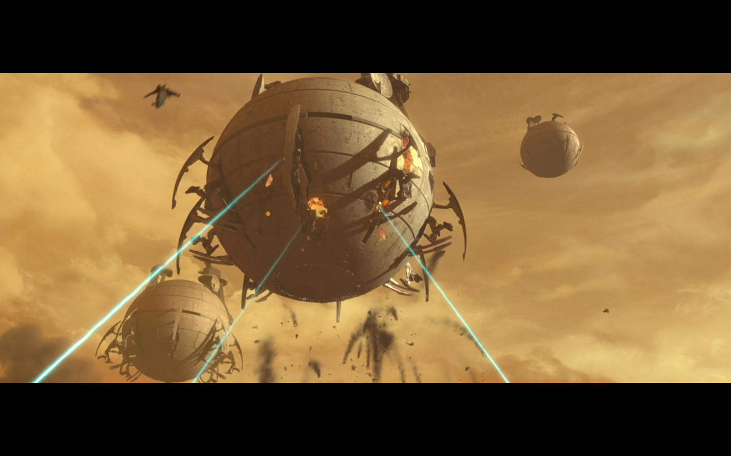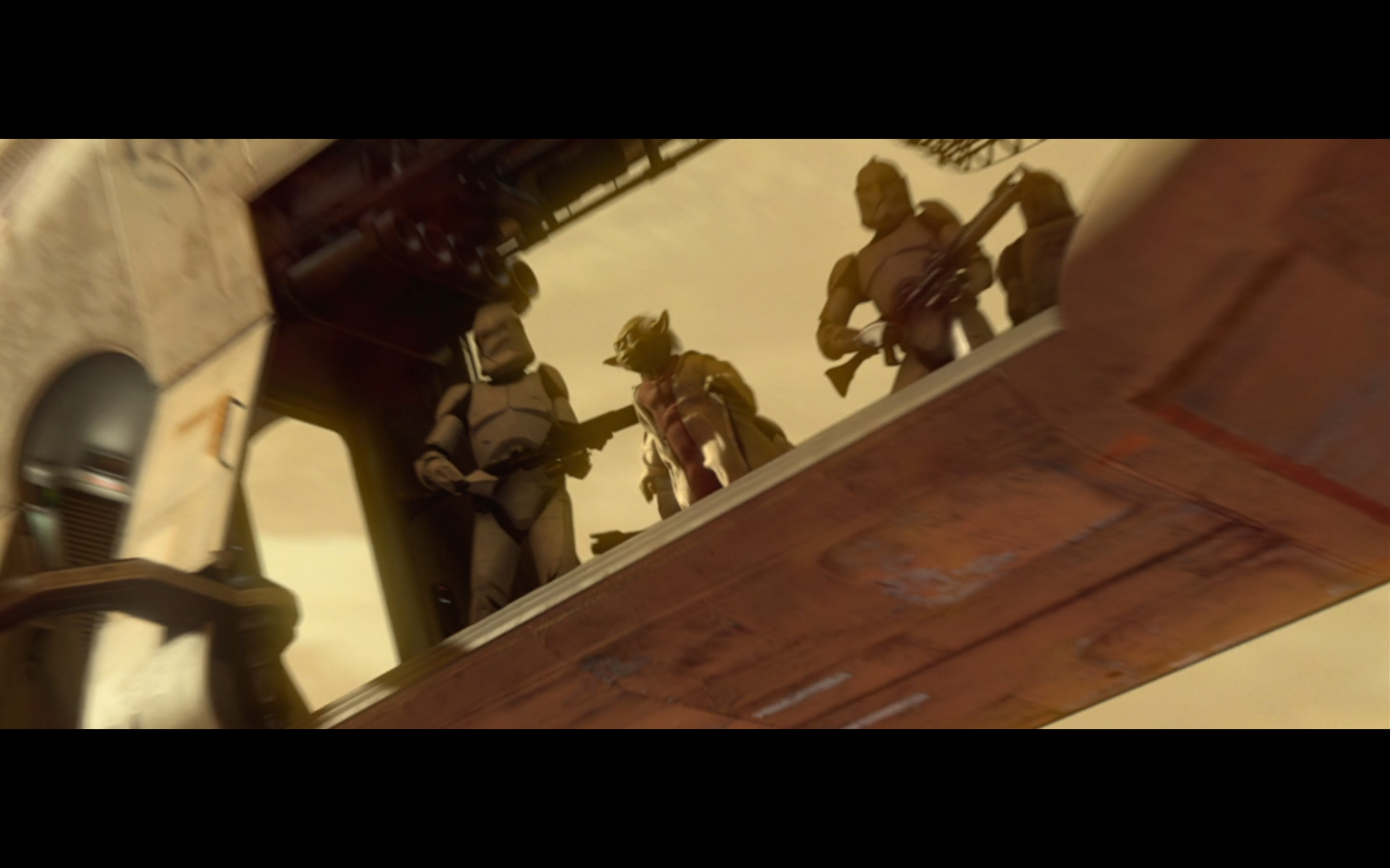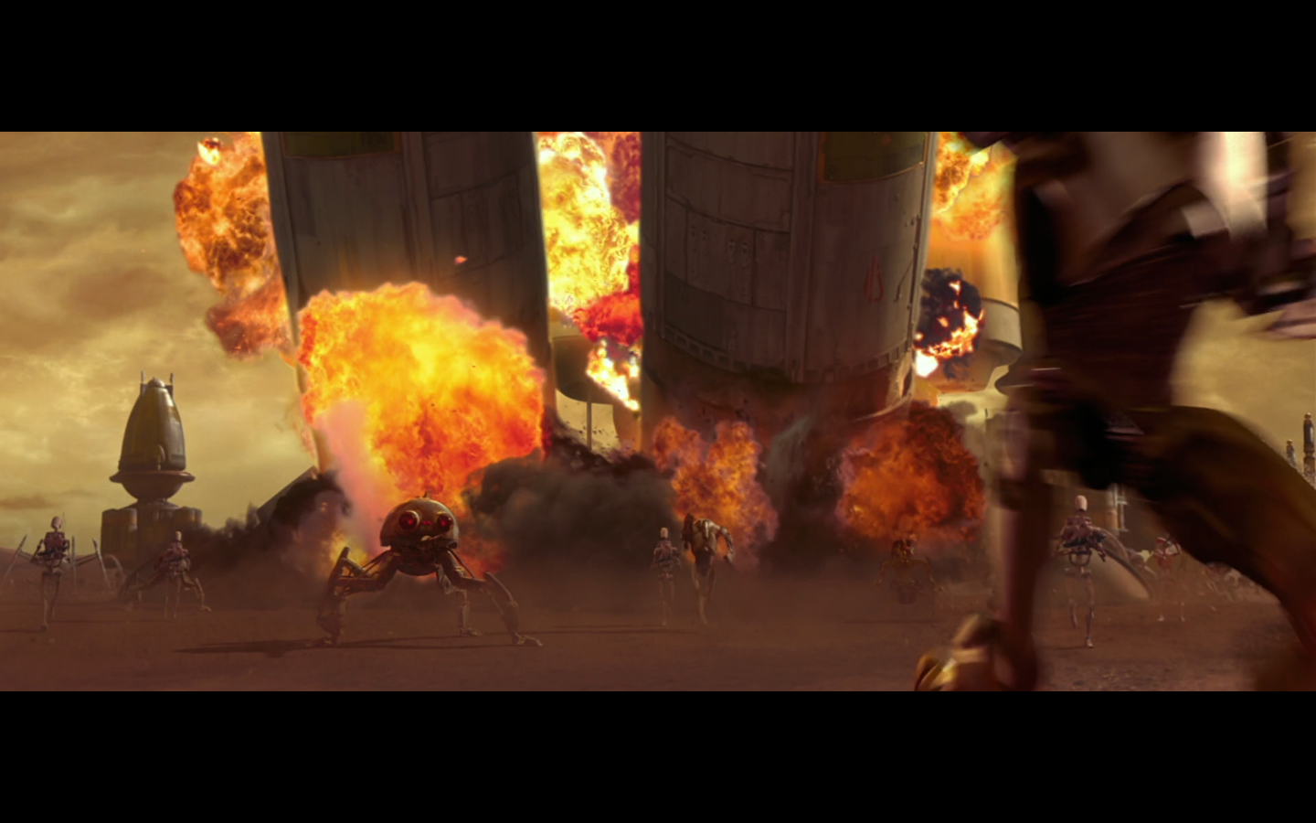 What’s with the camcorder sort of handheld feel to the reaction shots? It happened a few times already when cutting back to a ship flying quickly through the battle, like it was out of focus for a second and the shot was shaky. Now we get it as it cuts back to the clone troopers watching the starship fall.