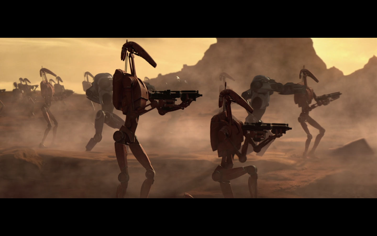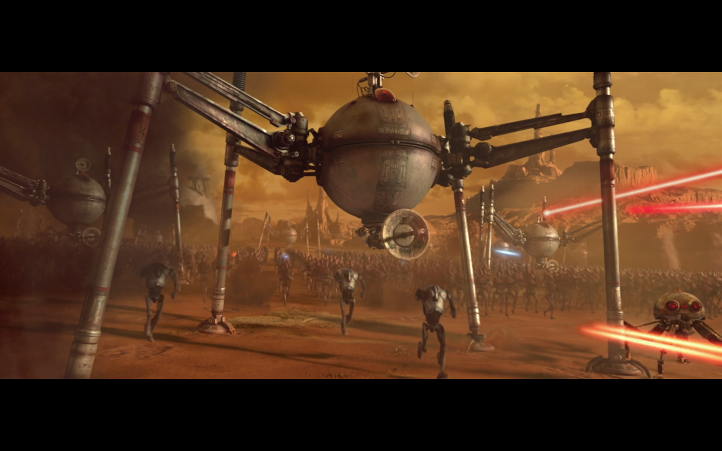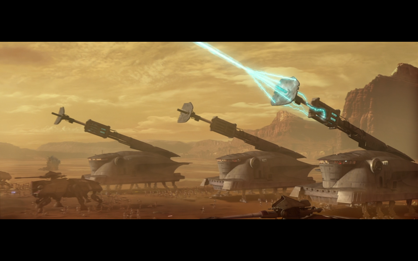 All the droid tank things are pretty ungainly. Spider legs and shit don’t make for very fast droids. How about some treads? Although I guess even the Republic’s tank things are like the precursor to AT-ATs.