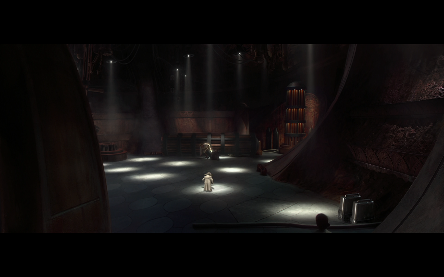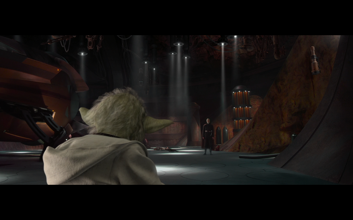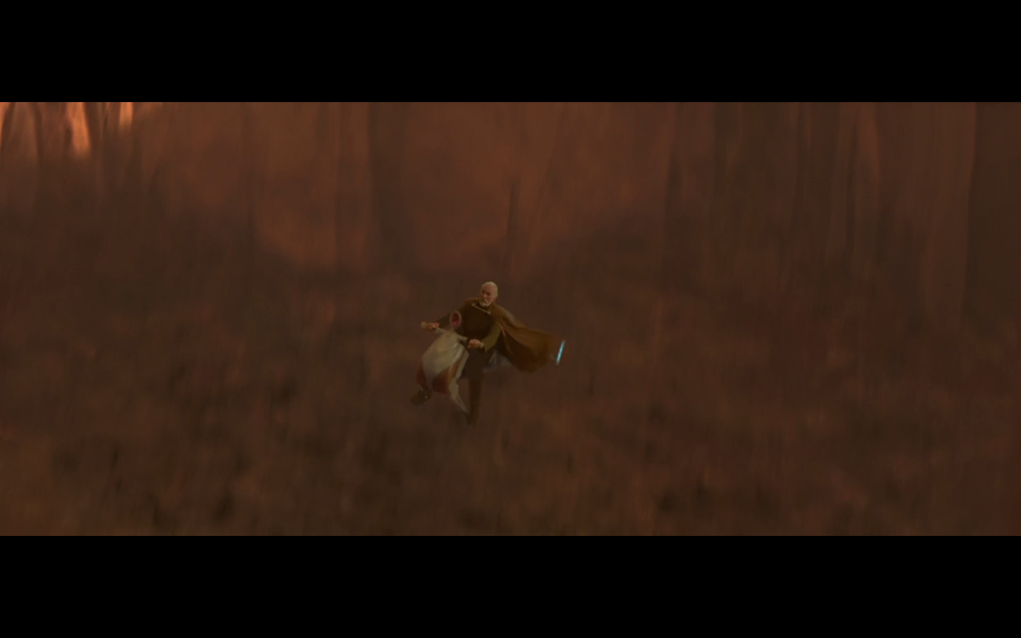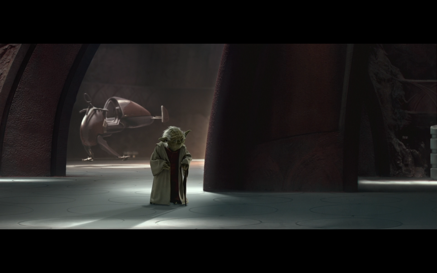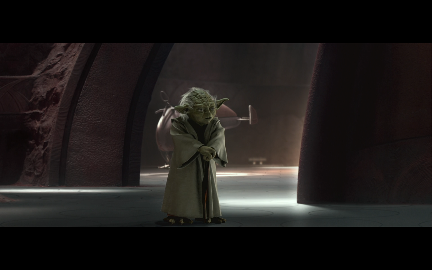 Now Yoda goes back to walking slowing again. What? Why does he make it look like it’s an exertion just to walk slowly now?