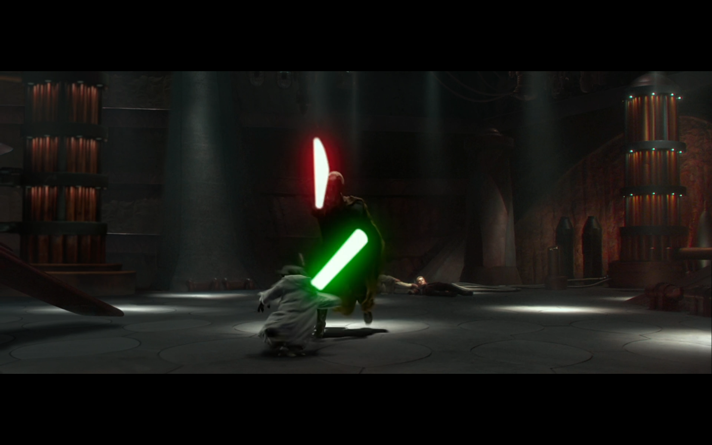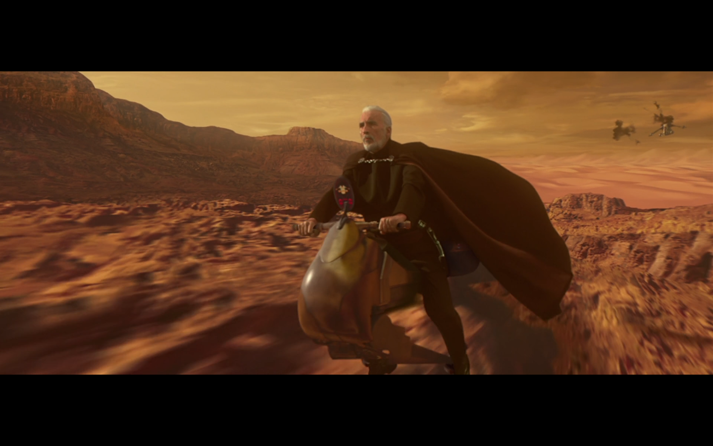 This is one of the best duels in the prequels if only because it’s Christopher Lee and he’s just taunting them the whole time.