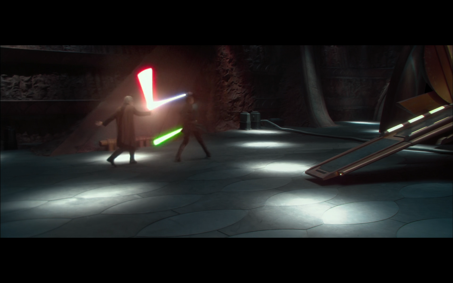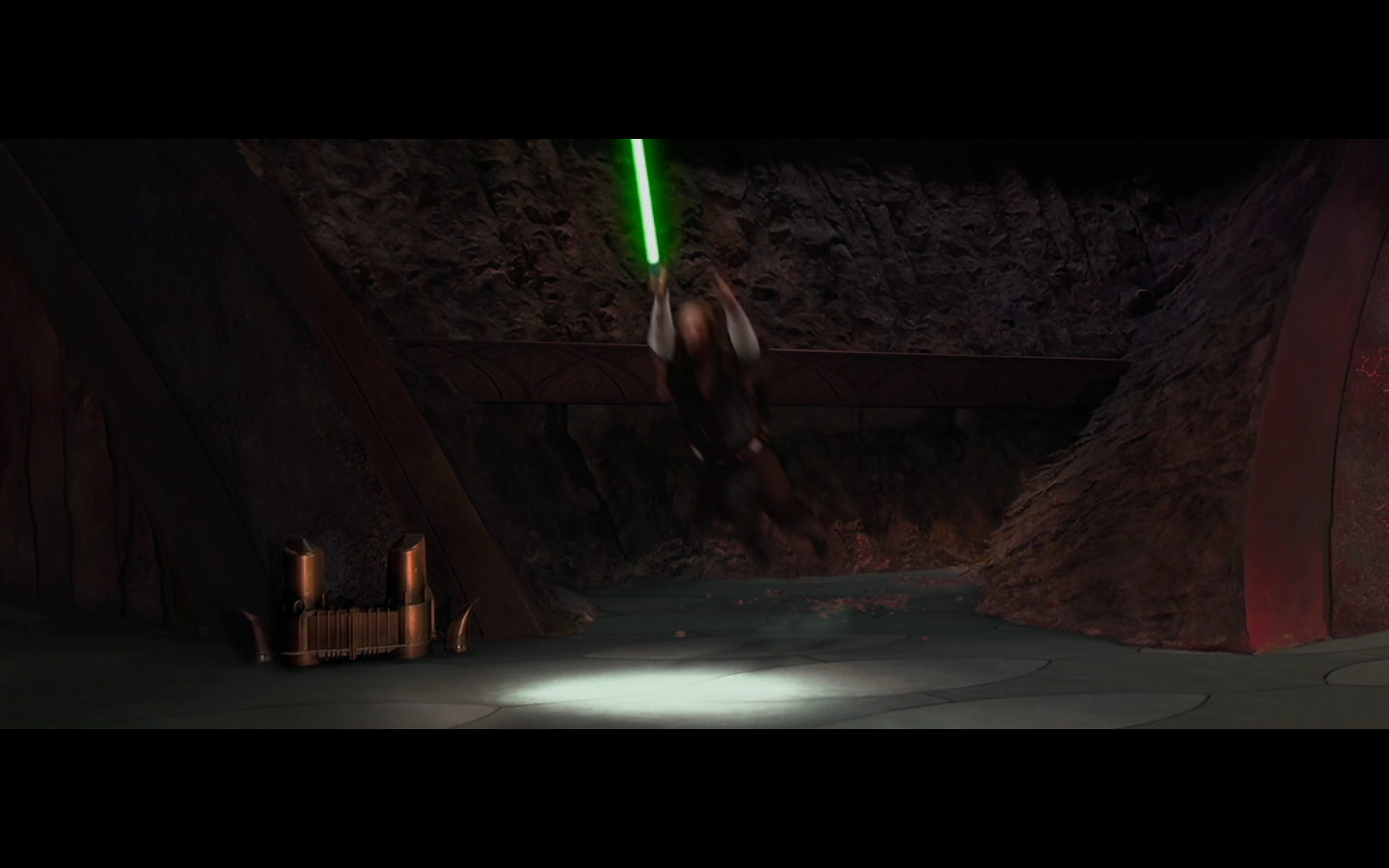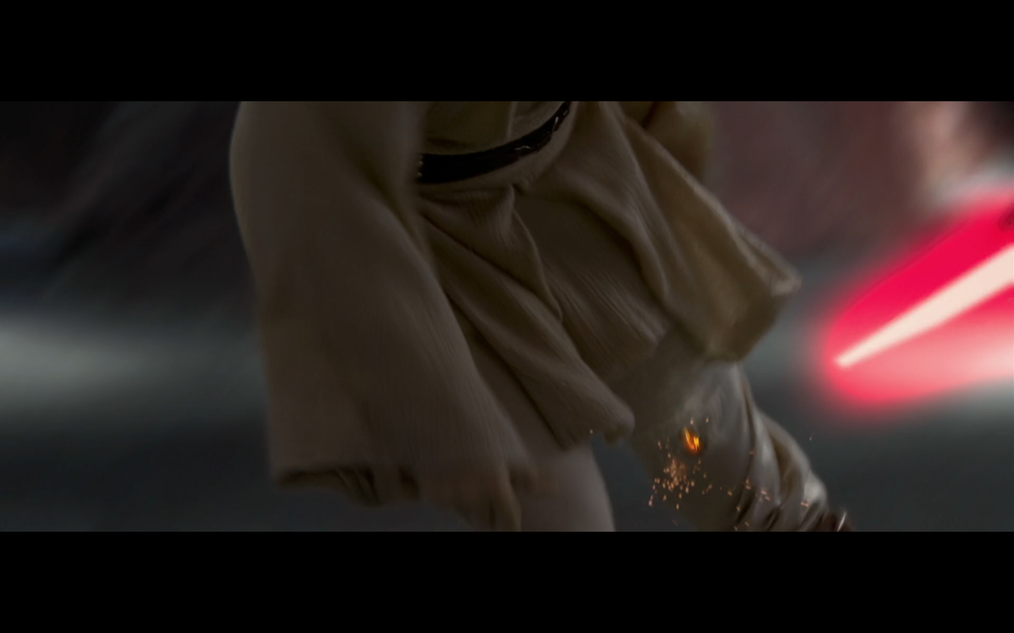Once again, they slow the action WAY down to show you him getting chopped. Just like with the Darth Maul fight, the victim has EONS to figure out what’s about to happen.