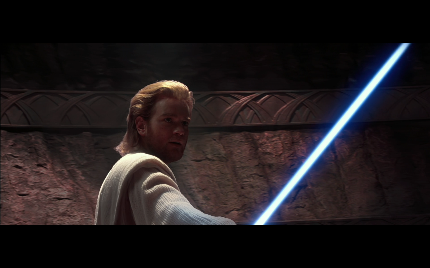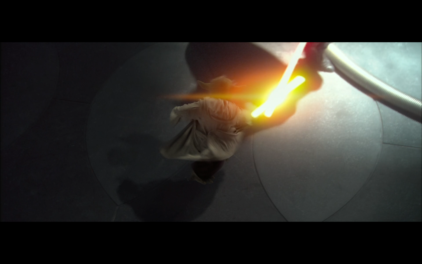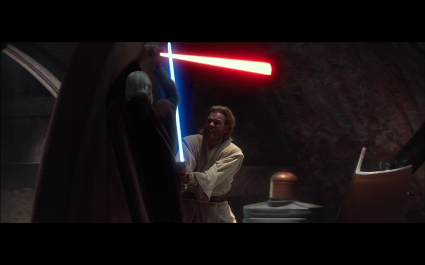 Once again, they slow the action WAY down to show you him getting chopped. Just like with the Darth Maul fight, the victim has EONS to figure out what’s about to happen.