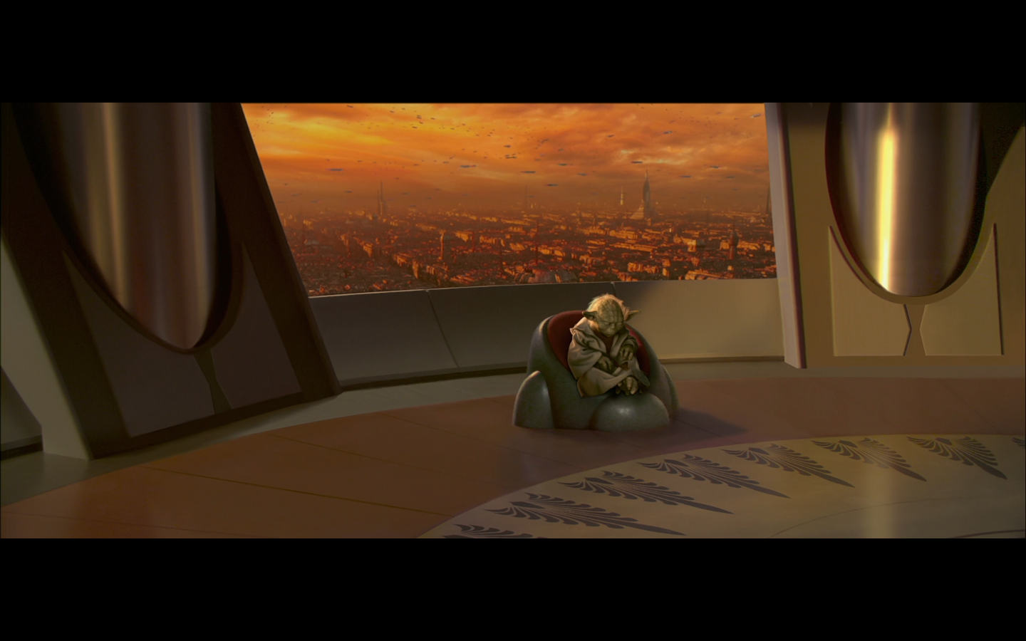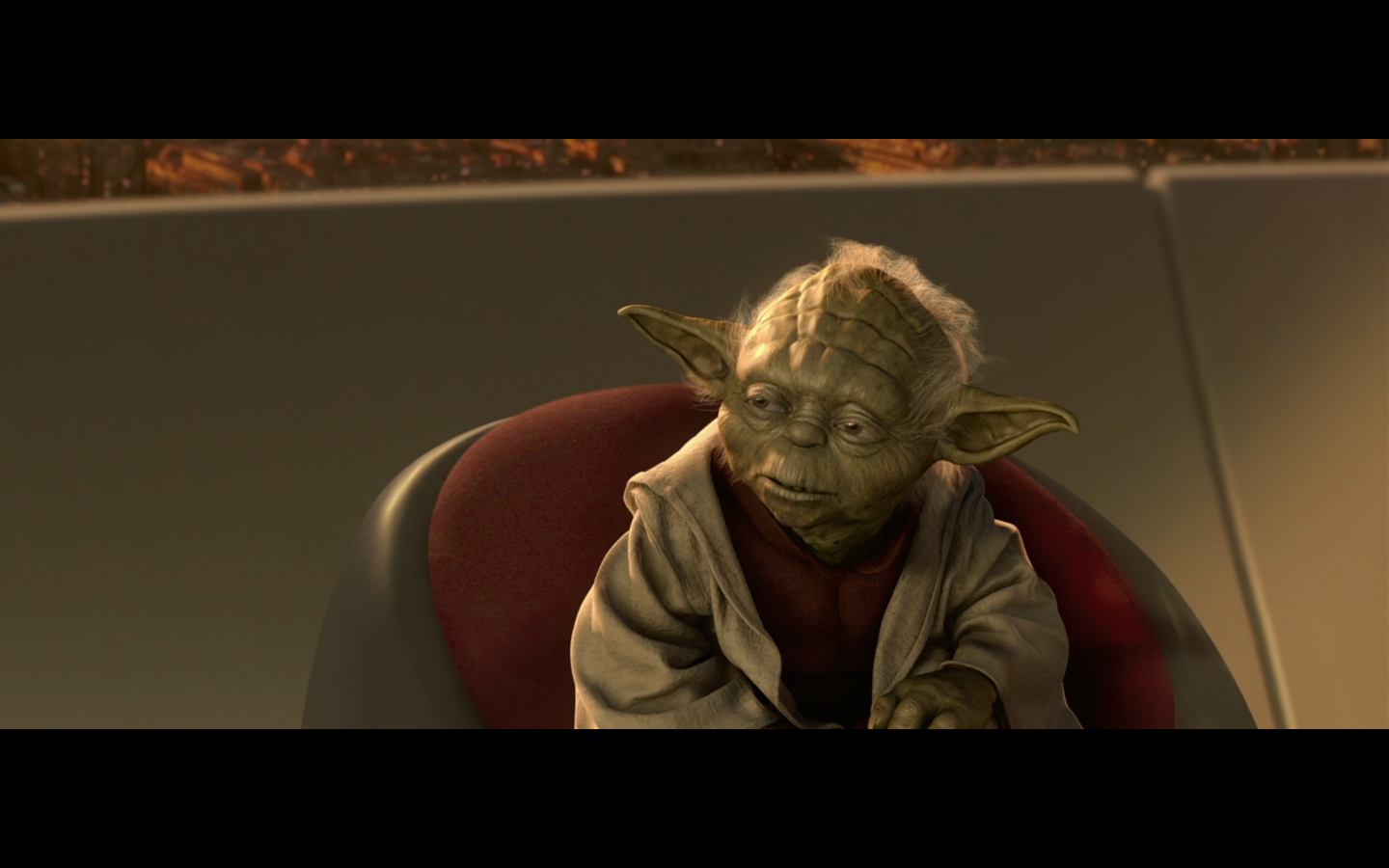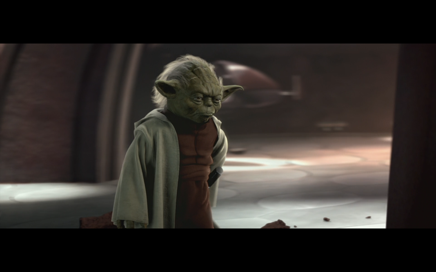 “Victory? Victory, you say? Master Obi-Wan, not victory. The shroud of the Dark Side has fallen. Begun the Clone War has.”