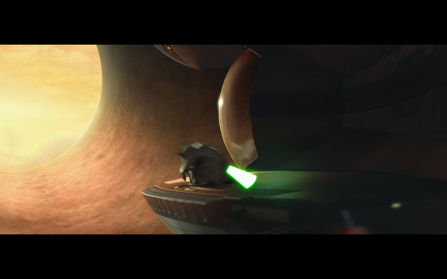 Really not happy that Yoda had to fight. You had to do it. Not only does he duel, but he duels unspectacularly and sort of loses. Yoda’s a character who should have been more about the mental side of the Force. We want him to be wise and intelligent. Having him bested by Dooku like this hurts to watch. Also, how come he just went with it when Dooku clumsily suggested they duel? Yoda didn’t attack Dooku once. What did he plan to do before the duel? I’d have loved to see something new or different from Yoda, but instead we have to watch him flip around like a moron to make up for his diminutive stature.