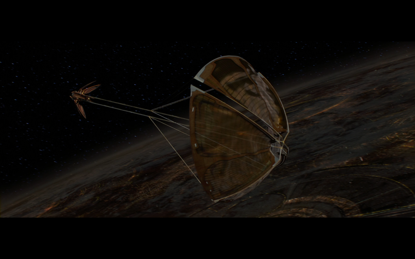 His ship has a space sail. Dunno what that’s about or even how that works.
