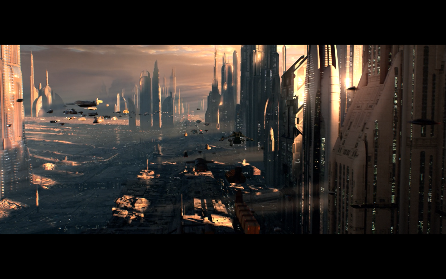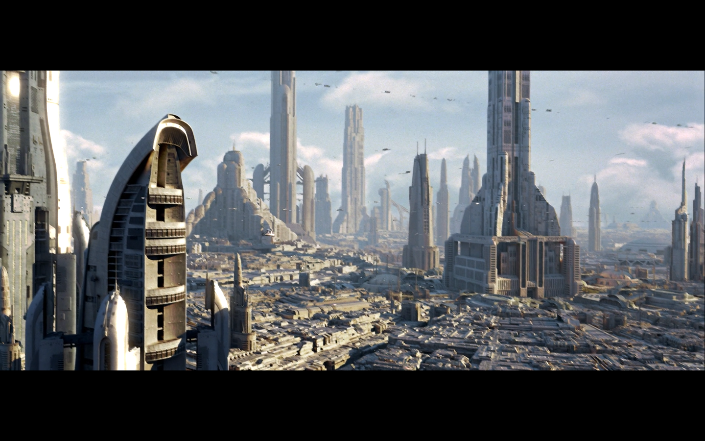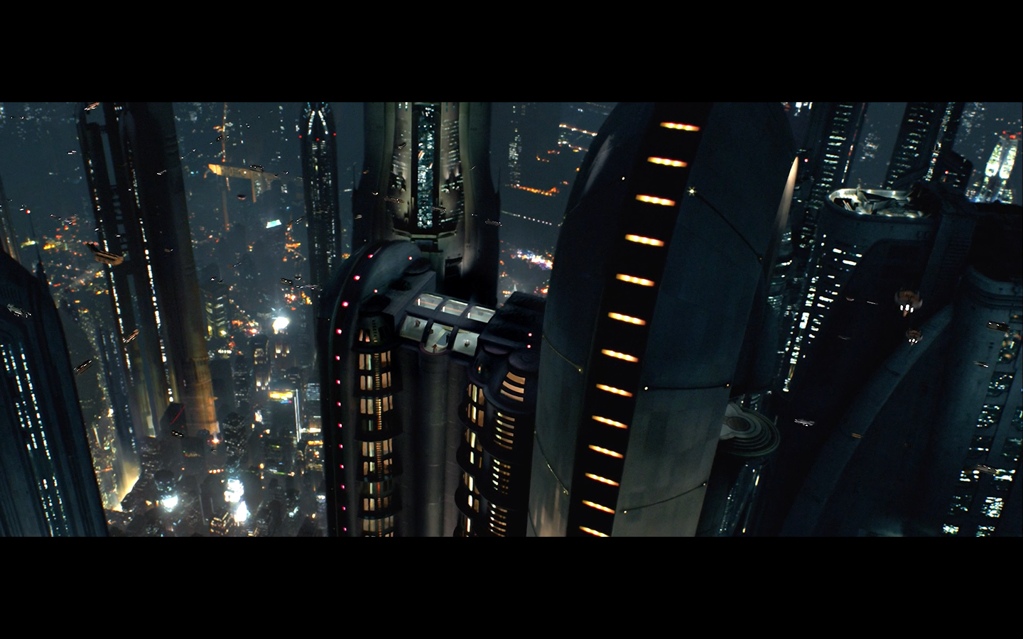 We begin Part II with some wide shots of Coruscant, because George loves this shit.