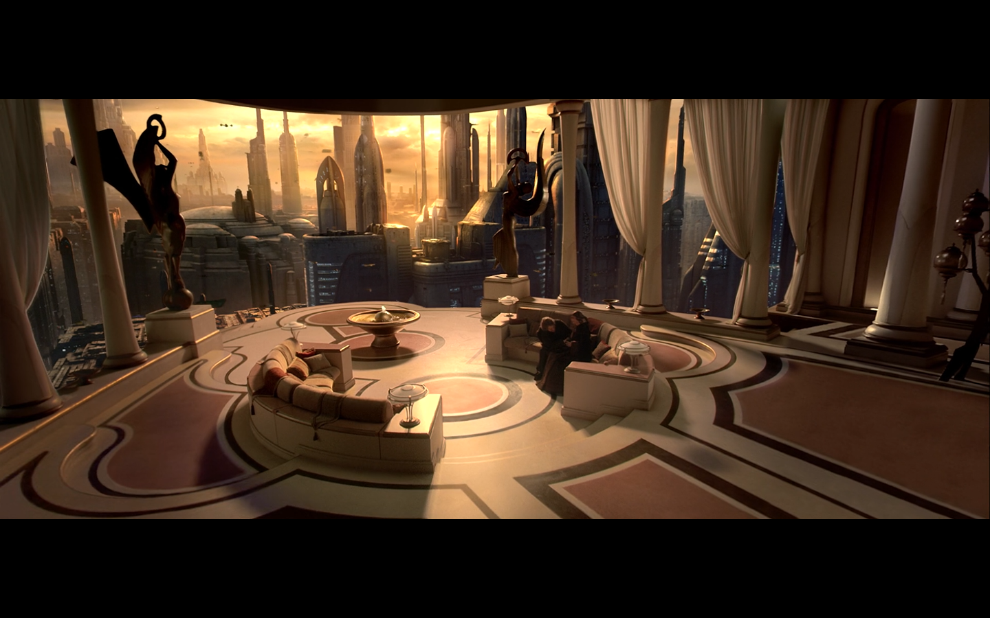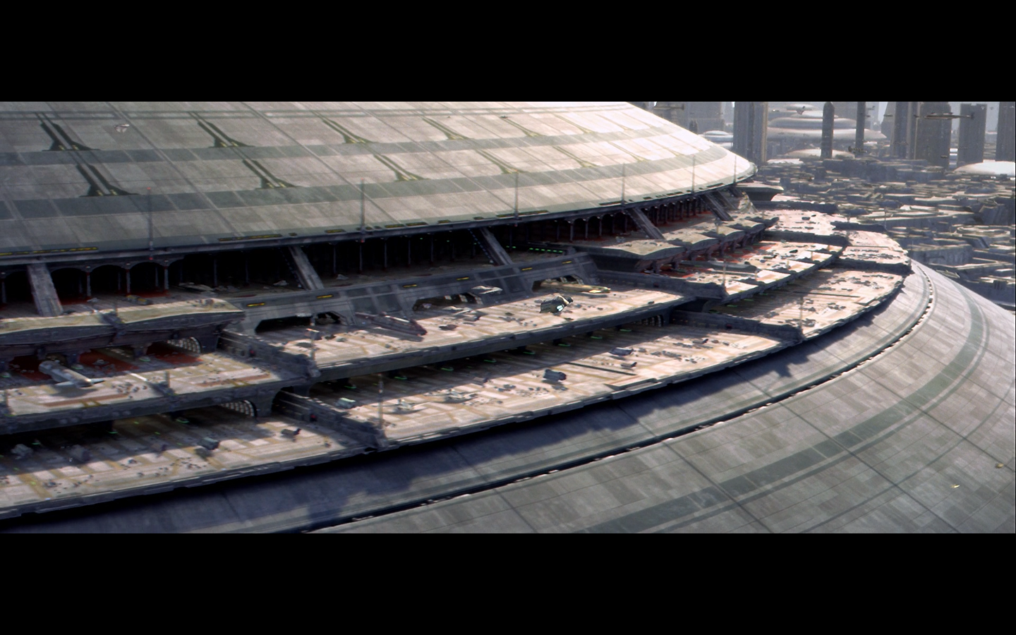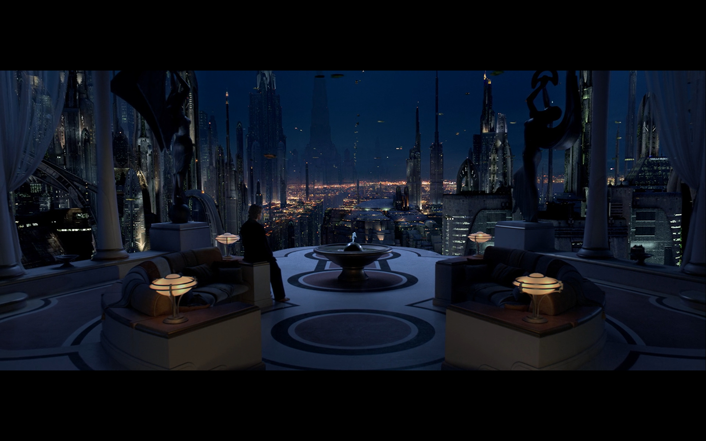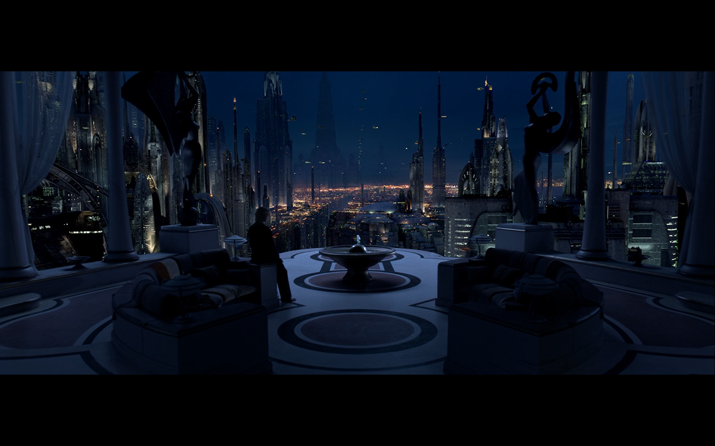 We begin Part II with some wide shots of Coruscant, because George loves this shit.