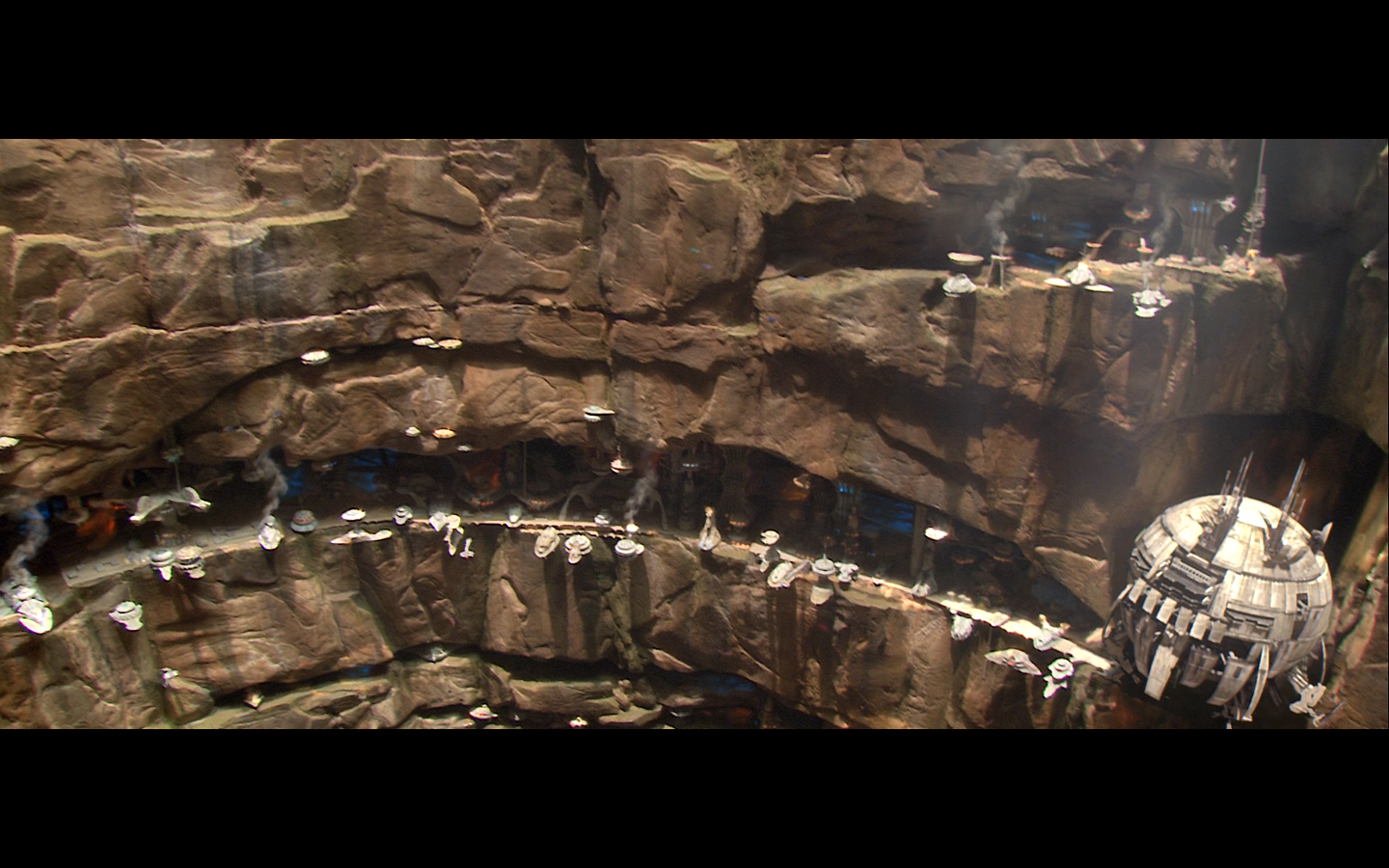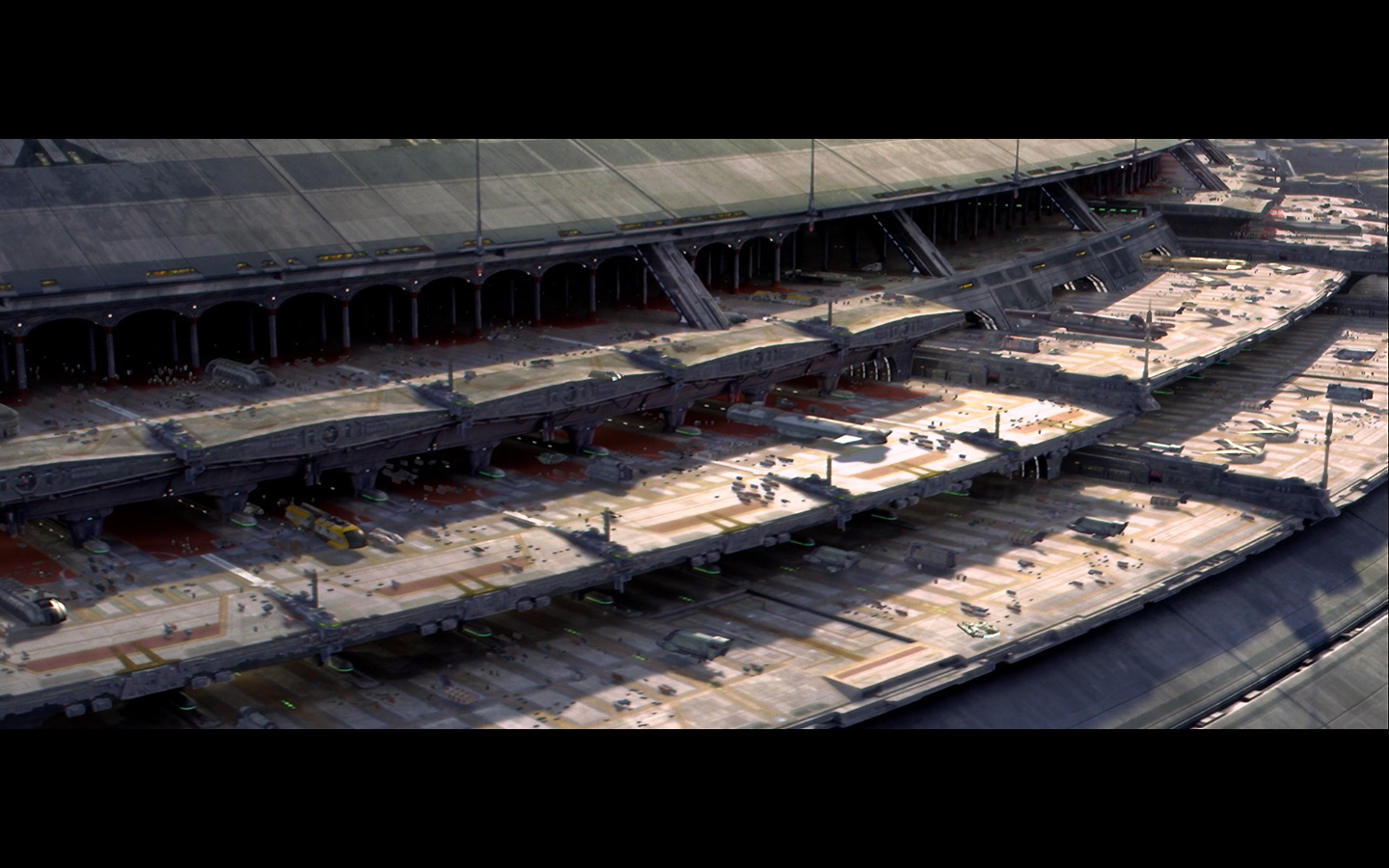 I forgot. Take a look at the bottom right of this shot above. There’s a ship that we all know and love, flying into the dock there. Yup, it’s a Millennium Falcon Easter egg in Revenge of the Sith.