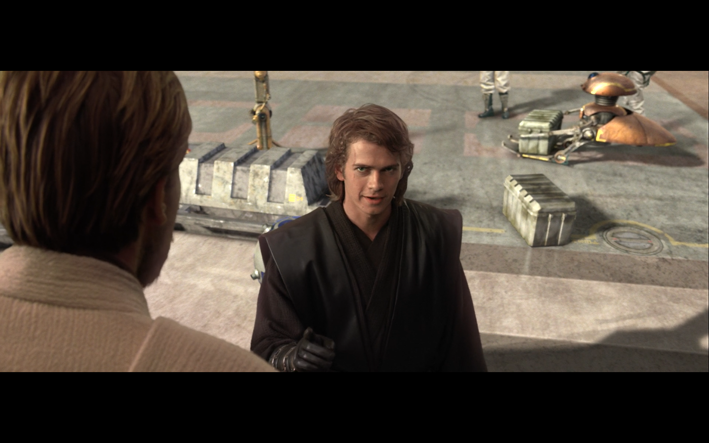This is TOO obvious. The stare and everything is too blatant and Anakin is just going with it. This is like when a drug dealer is like, “I have some…OREGANO for sale. It’s excellent stuff. I got this OREGANO in Mexico, where they don’t mess with chemicals like they do here. Are you interested in some of this (puff puff) OREGANO?” And Anakin goes, “Oregano, huh? My Greek salads have been missing something, and that might just be it.”