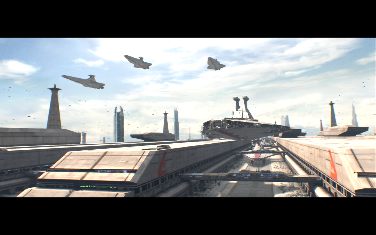 Yet again, showing someone approaching a planet, flying along the surface, getting to the general landing area, and coming in for landing. They even did the coming in for landing bit in two different shots this time, so they could waste more of my life. I like this planet’s aesthetic, but what the fuck are we doing?