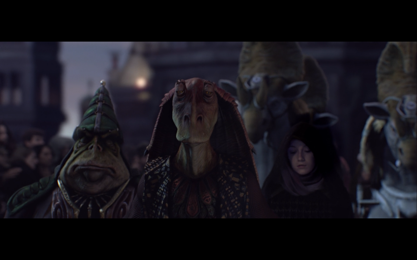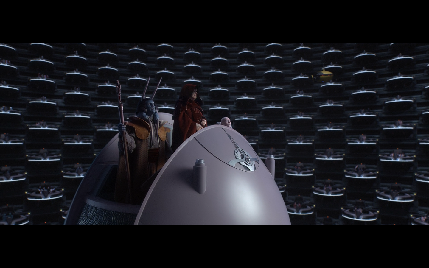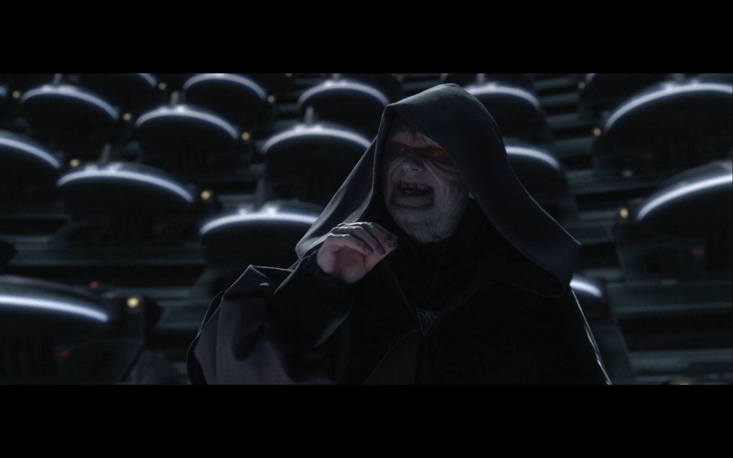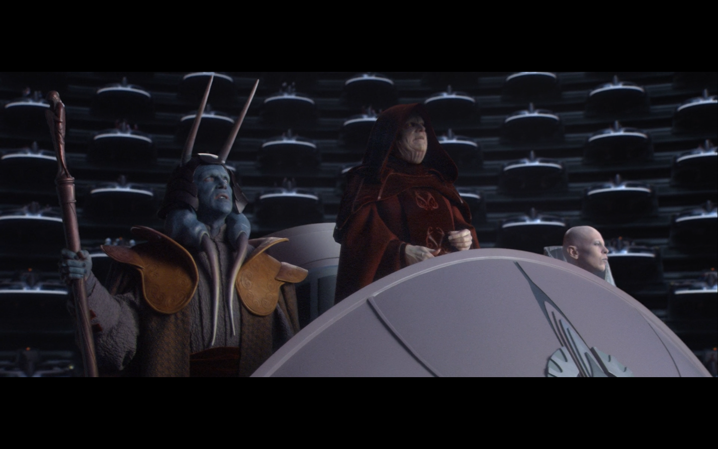 I don’t get how people just go along with this. He says things, like how the Republic will be rearranged into an Empire, and they just clap, even though the only particulars they’re getting is that the name is gonna change. Plus, as senators, you’d think that any revision of the existing republic would mean problems for them. How is this working for Palpatine? He’s basically telling him that he’s decided to make all of their jobs obsolete, but TRUST HIM, cause it’s gonna be sweet.