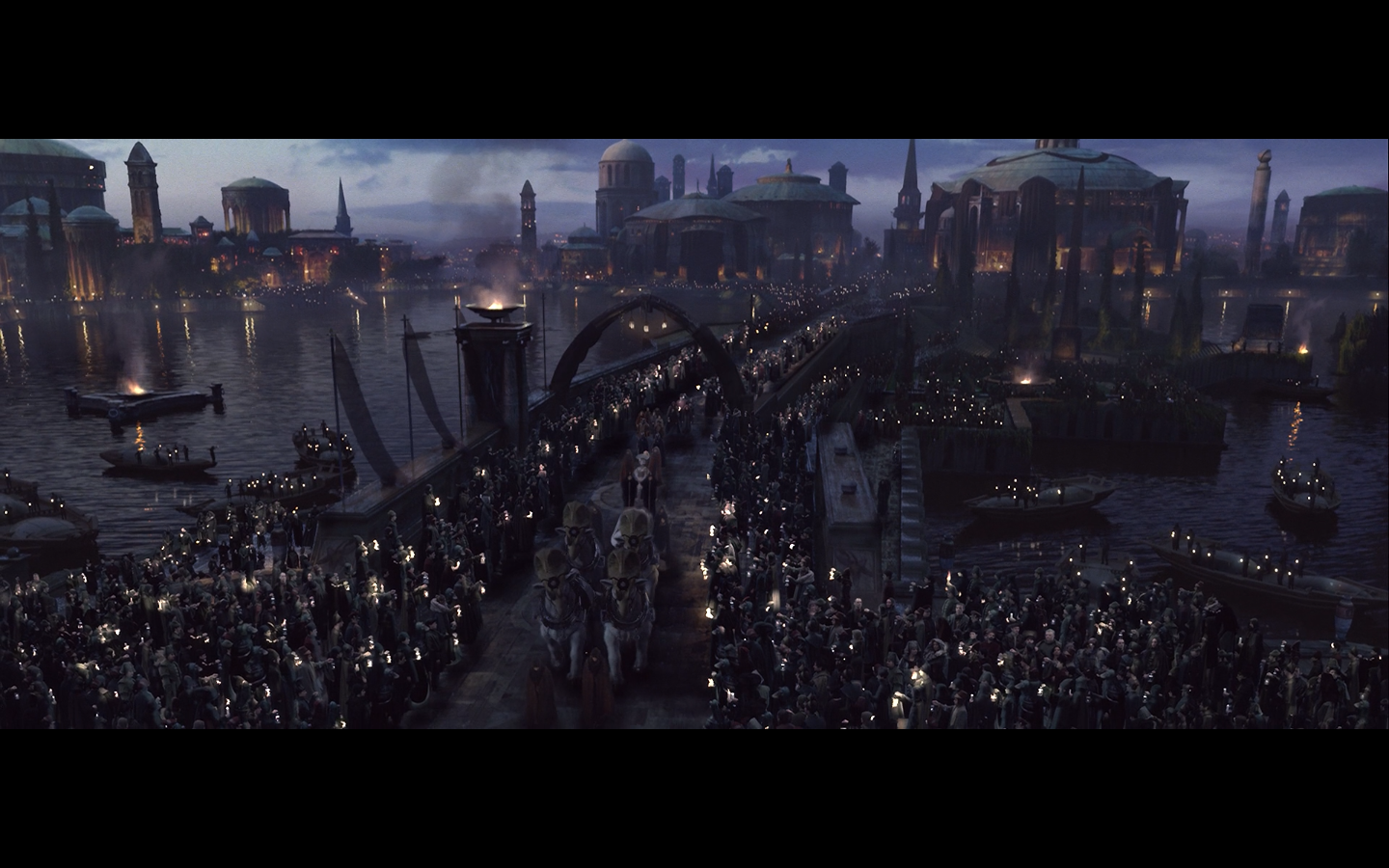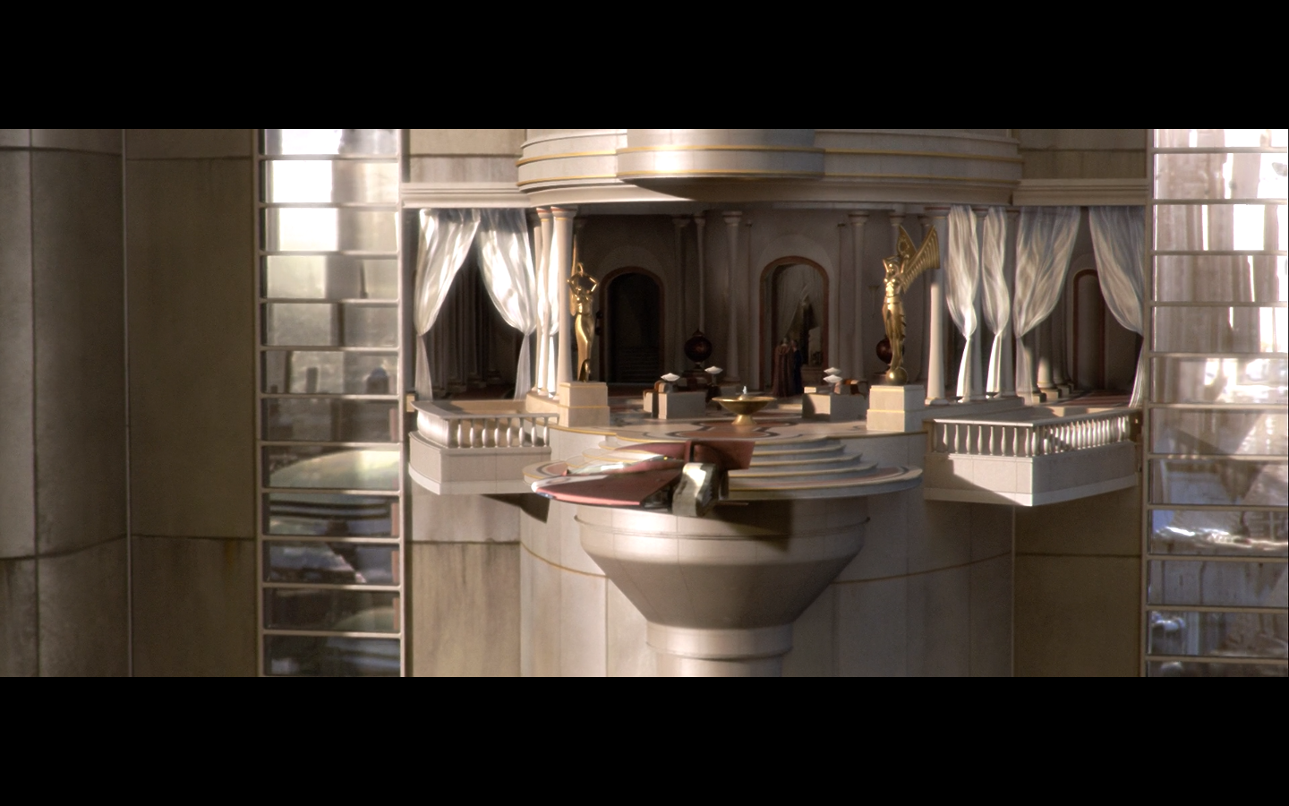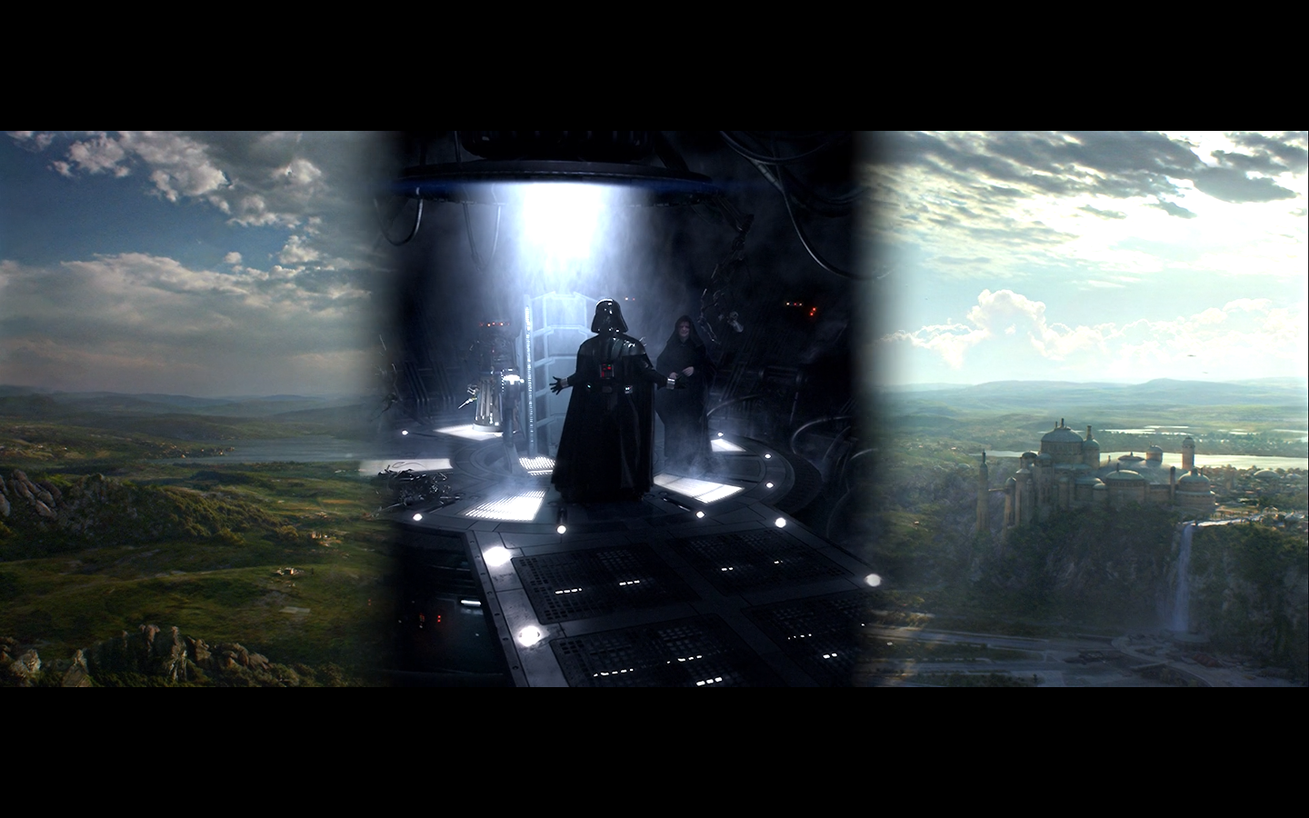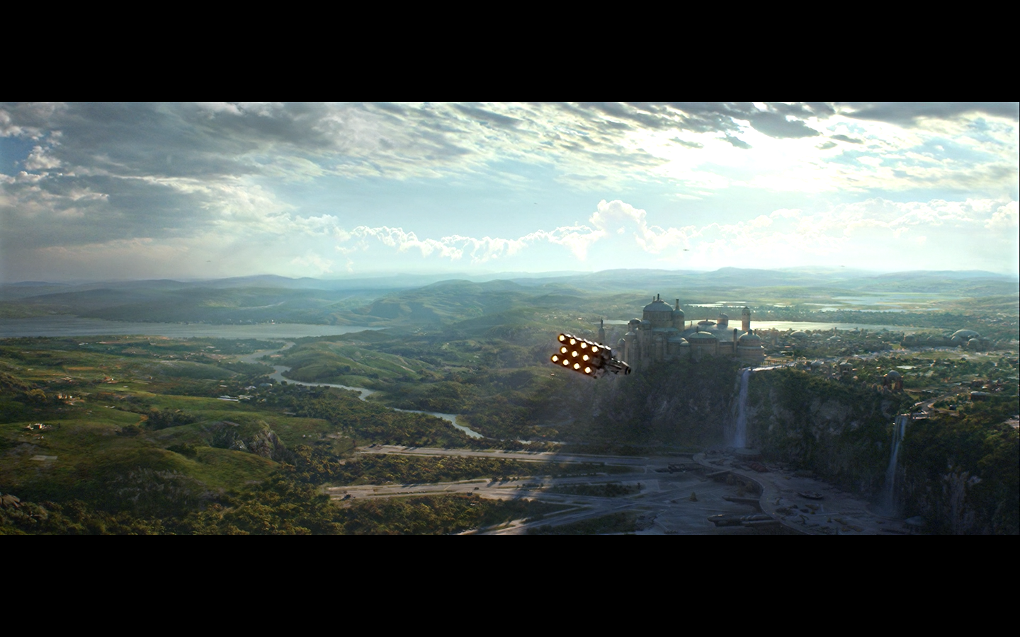 This is Naboo. They drop off the body. Then it’s off to Alderaan. You can tell it’s Naboo here cause of the waterfalls and green domed roofs.