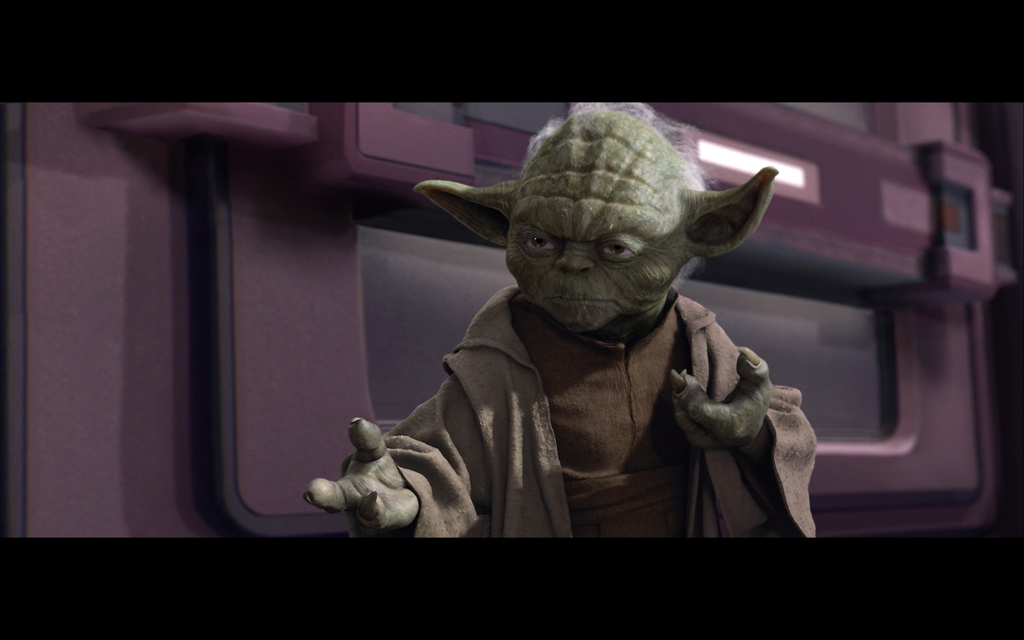 Yoda doesn’t even bring up the possibility that Vader be redeemed. Wouldn’t you try to bring him back from the Dark Side? There have been plenty of Jedi who go Sith and come back, and even vice-versa. But whatever, just go kill him.
