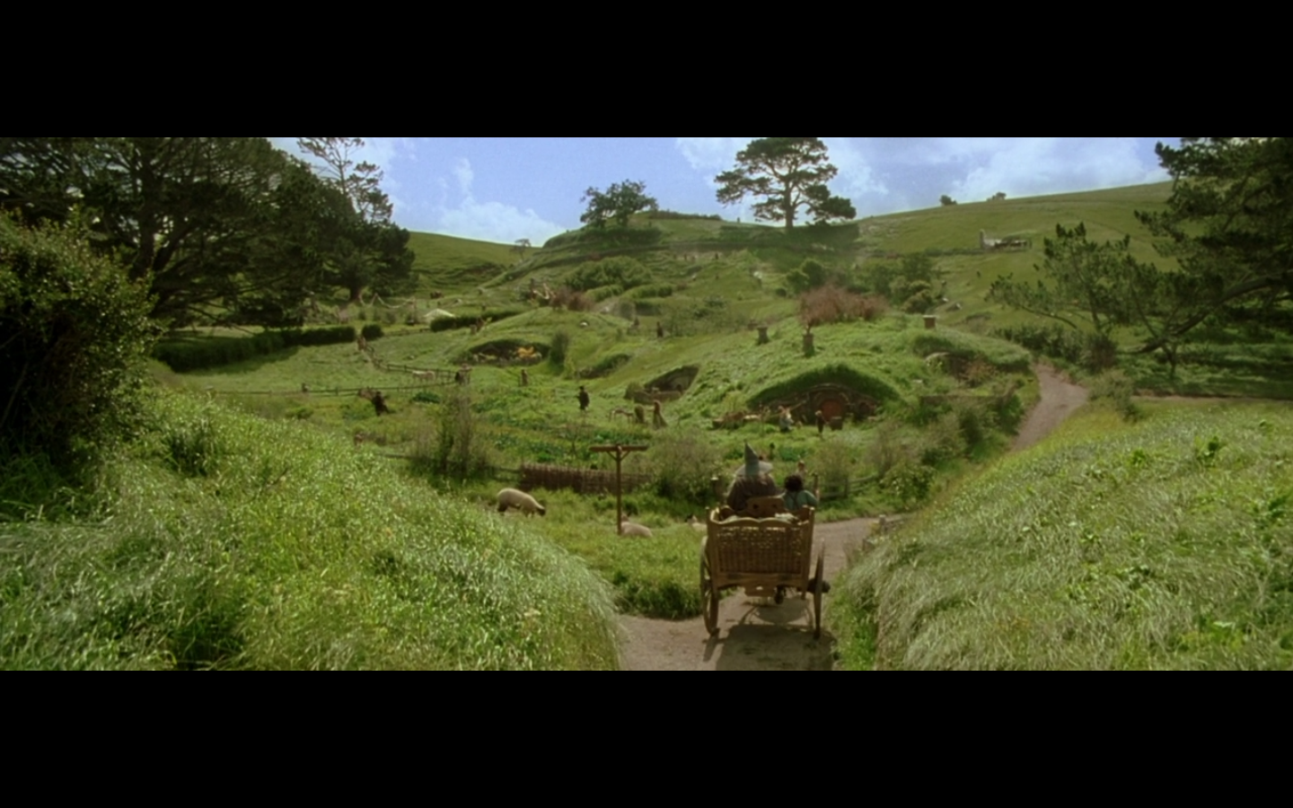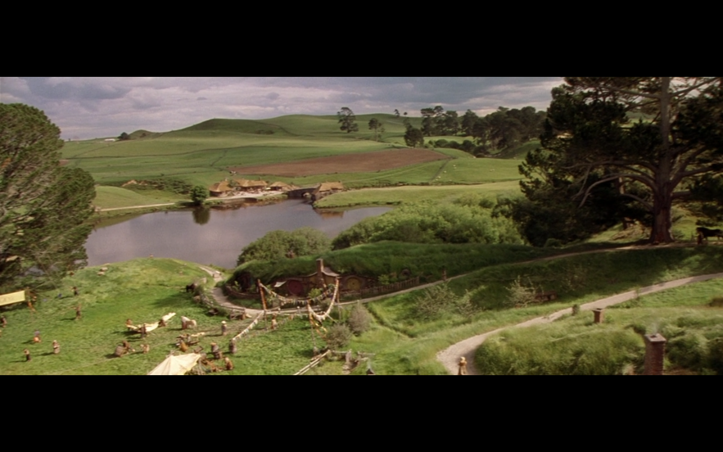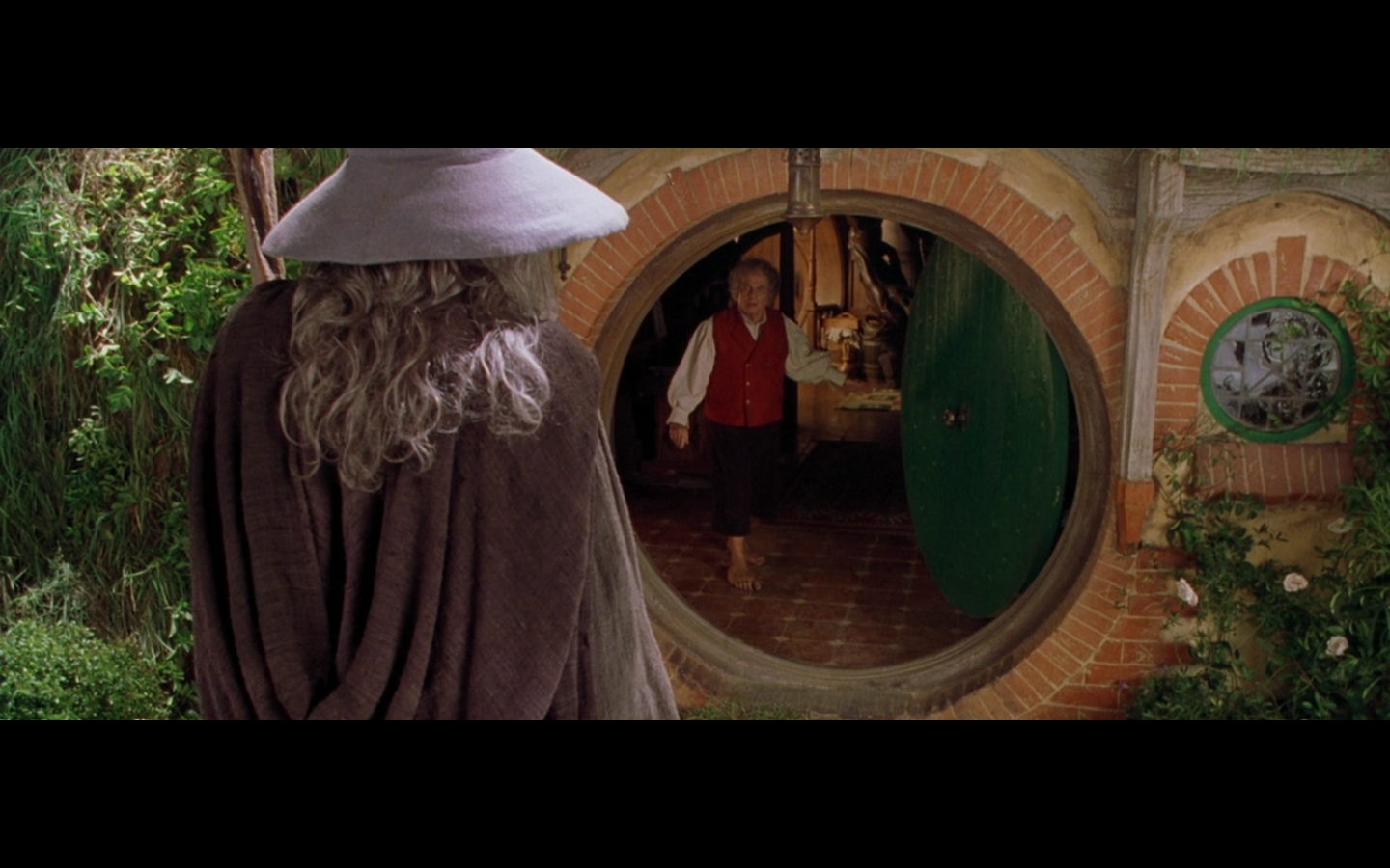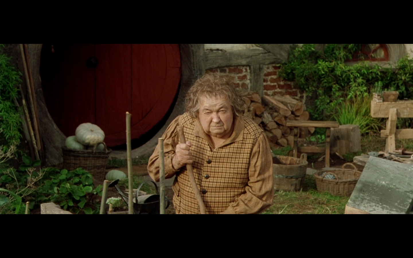 The guy points him toward Bag End. He says he’s “Up in Hobbiton.”