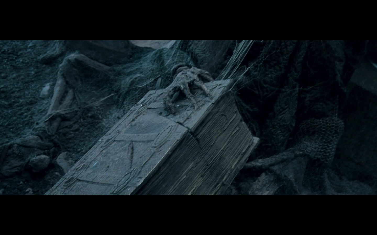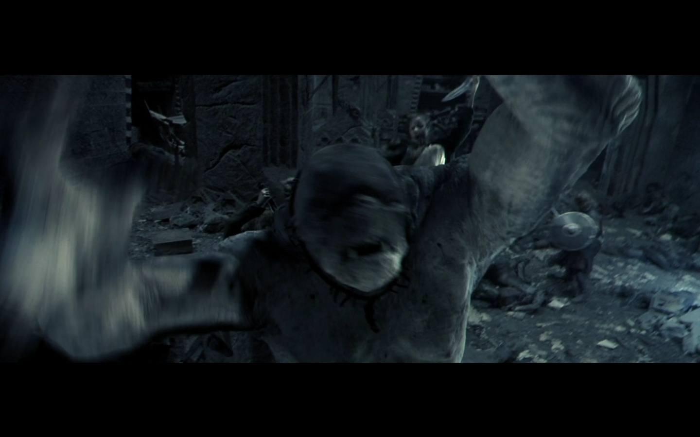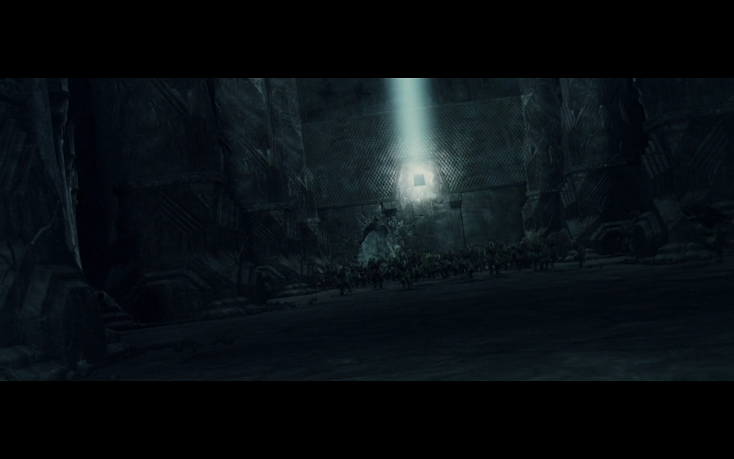 This is some creepy shit. They’re really good at making you feel nervous about shit. They are coming. This scene has always stuck with me – and I don’t mean the battle that’s about to happen, I mean the scene of Gandalf reading the account. It’s just so fucked up to me that they’re standing there in the middle of all these corpses, reading the last words that one of them ever wrote. And you have to imagine him writing that shit as goblins are banging on the door and they know they’re about to bite it.