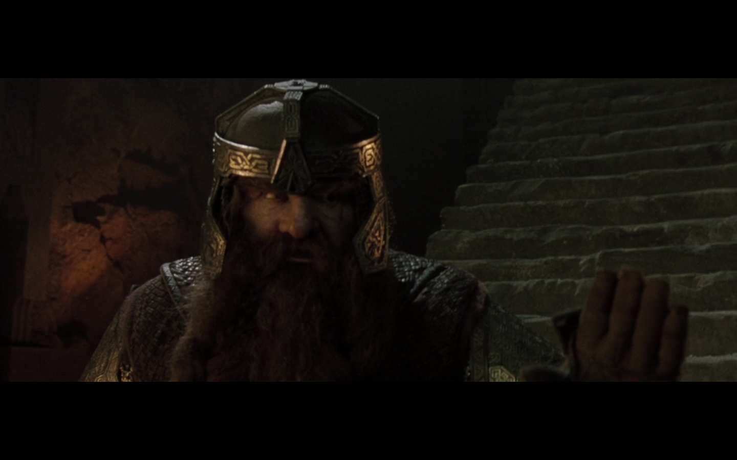 It’s funny how Gimli just weeps during all of these scenes and it’s totally cool. Nothing to do with the actor or anything – most of the times I’d think to call someone out for crying like a bitch… here I really only had that thought when it got excessive, and immediately that thought was followed by, “But he does have a reason,” as well as, “Shit… I can’t believe I didn’t have this thought sooner.”