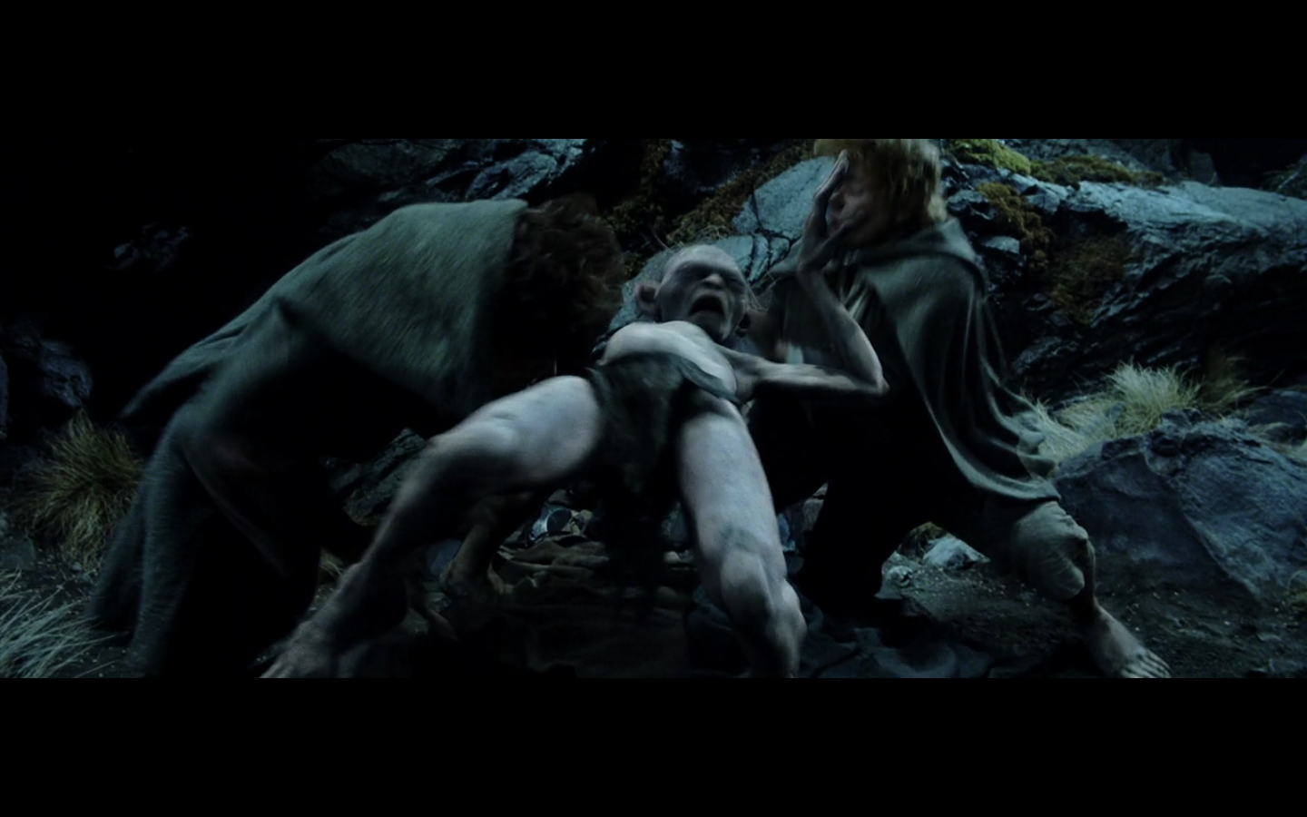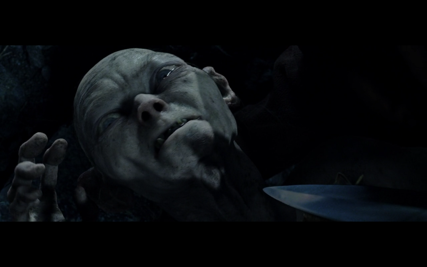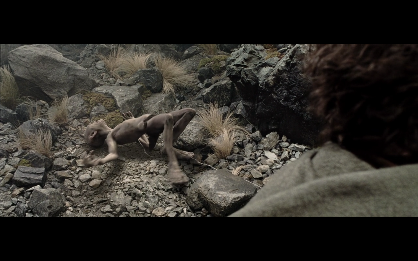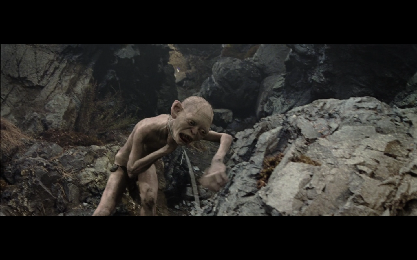 Great monologue though. Considering it’s the first we really hear from Gollum, other than, “Shire! Baggins!” when he was on the tortur-o-matic.