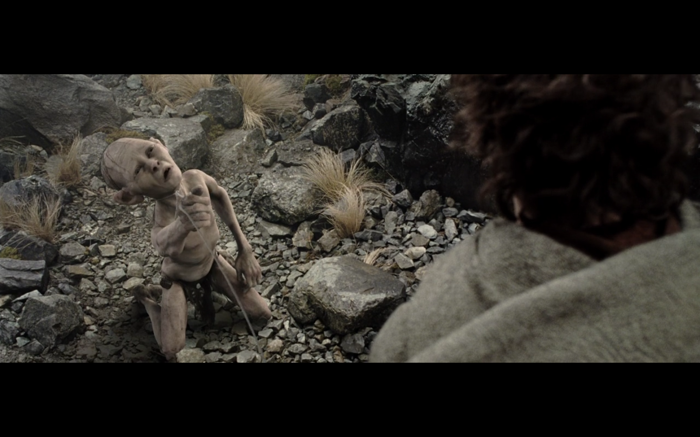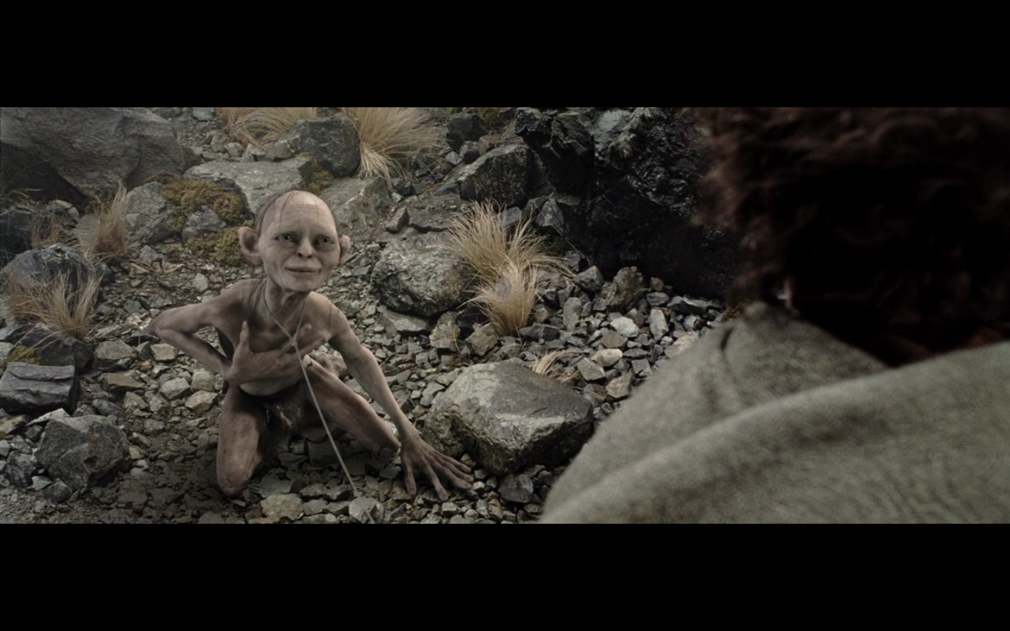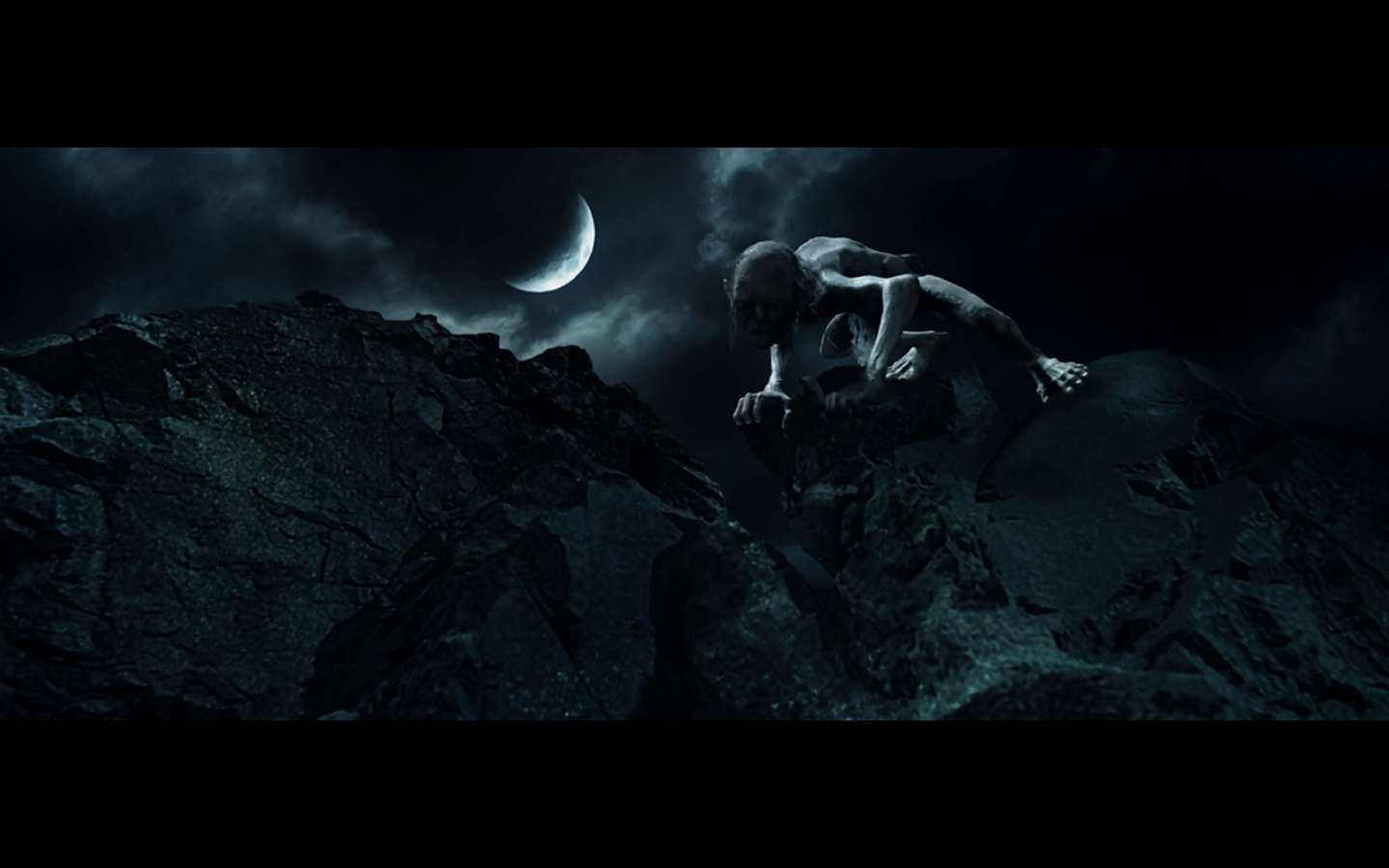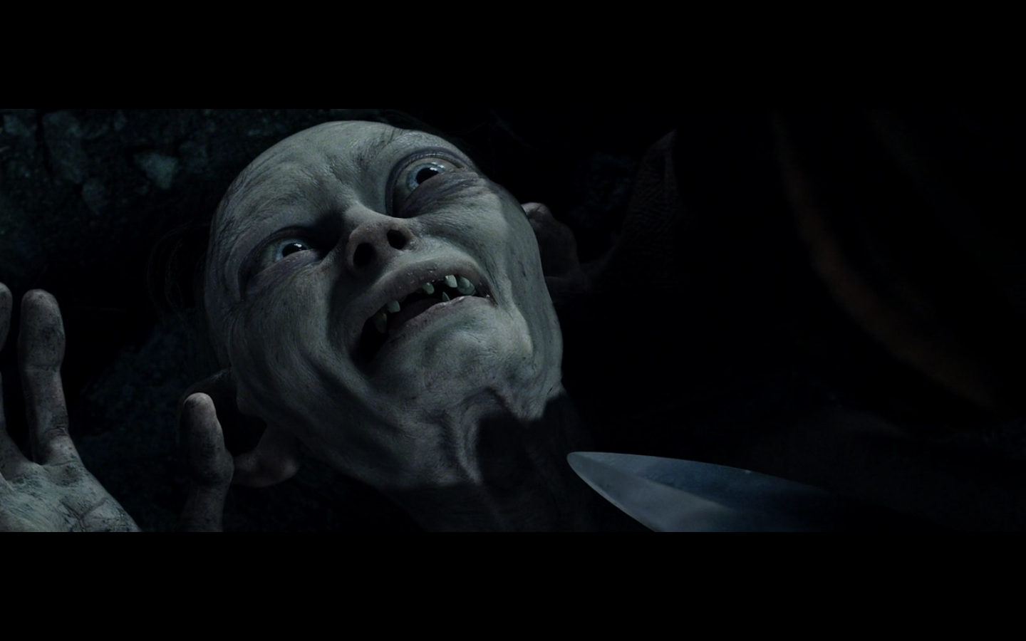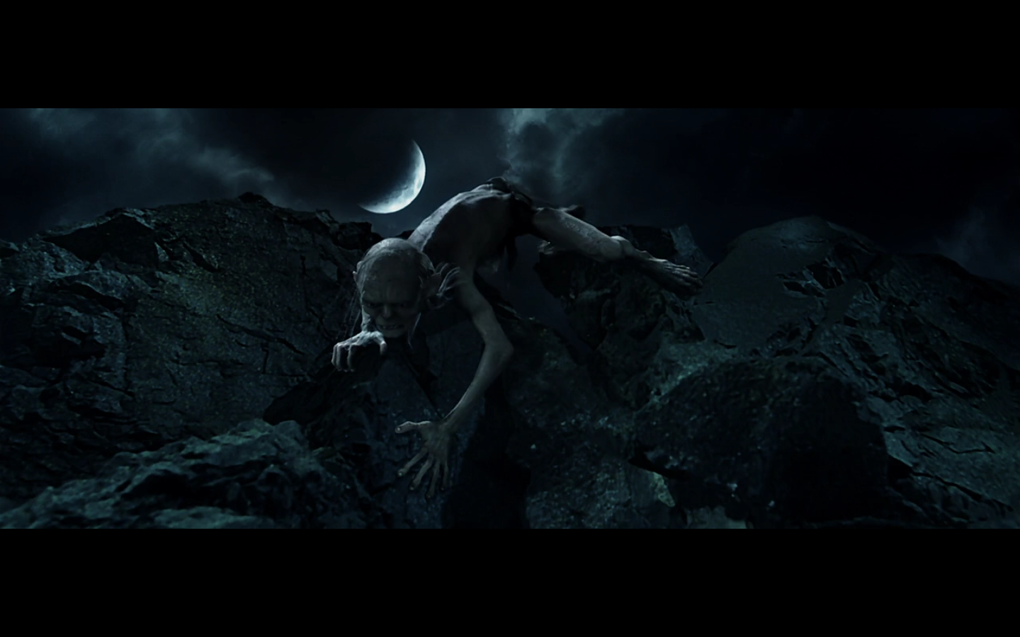 Great monologue though. Considering it’s the first we really hear from Gollum, other than, “Shire! Baggins!” when he was on the tortur-o-matic.