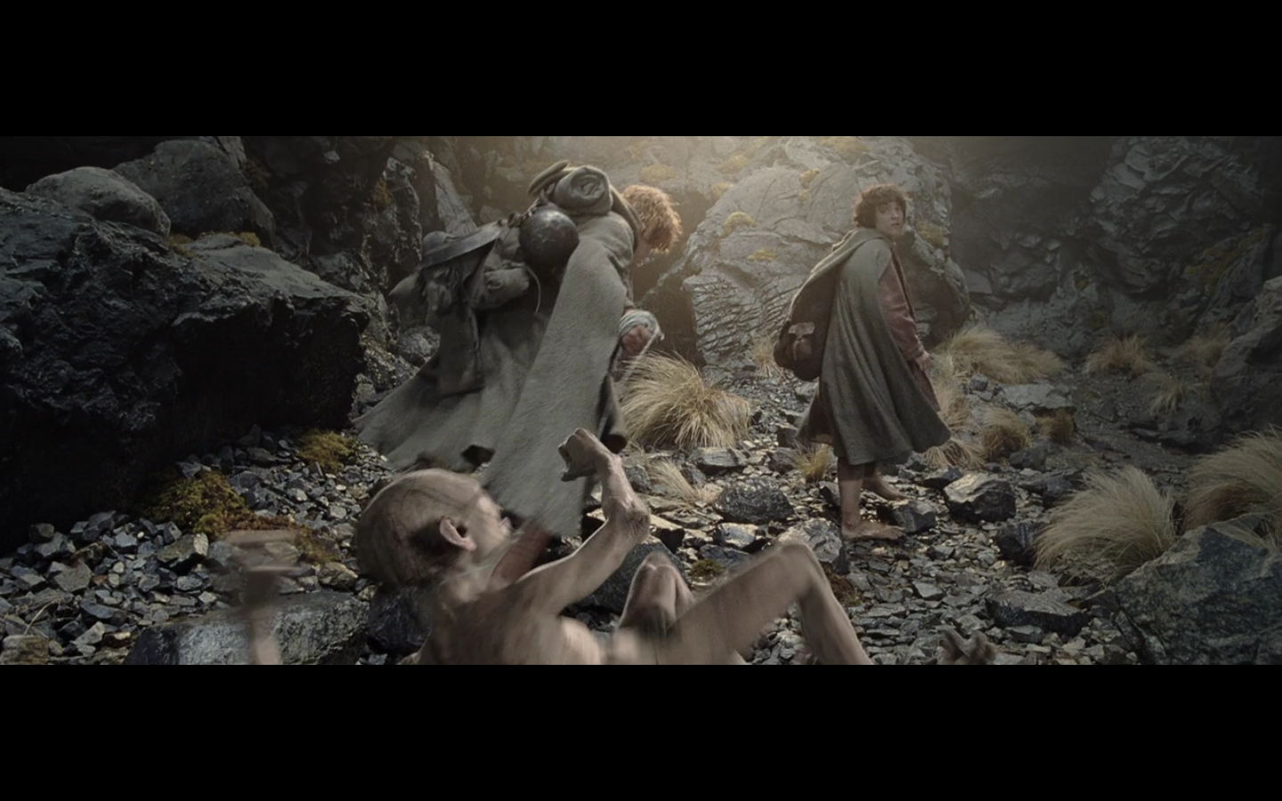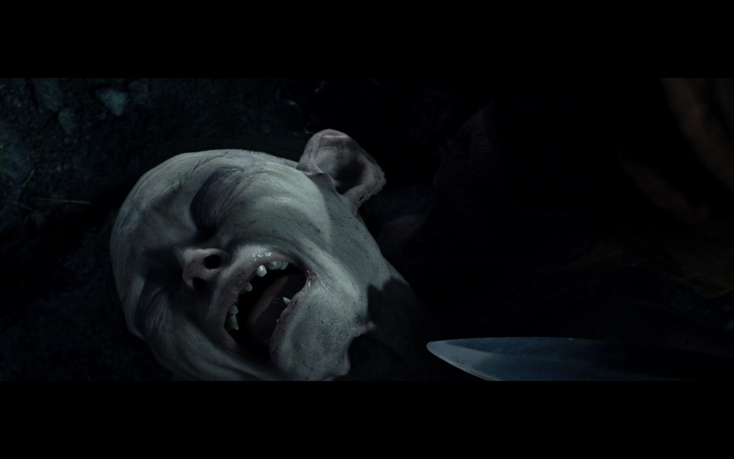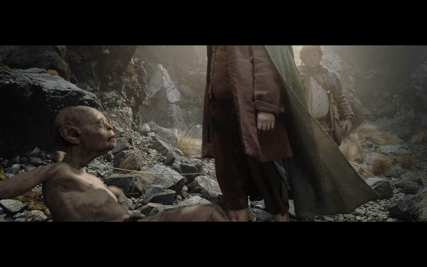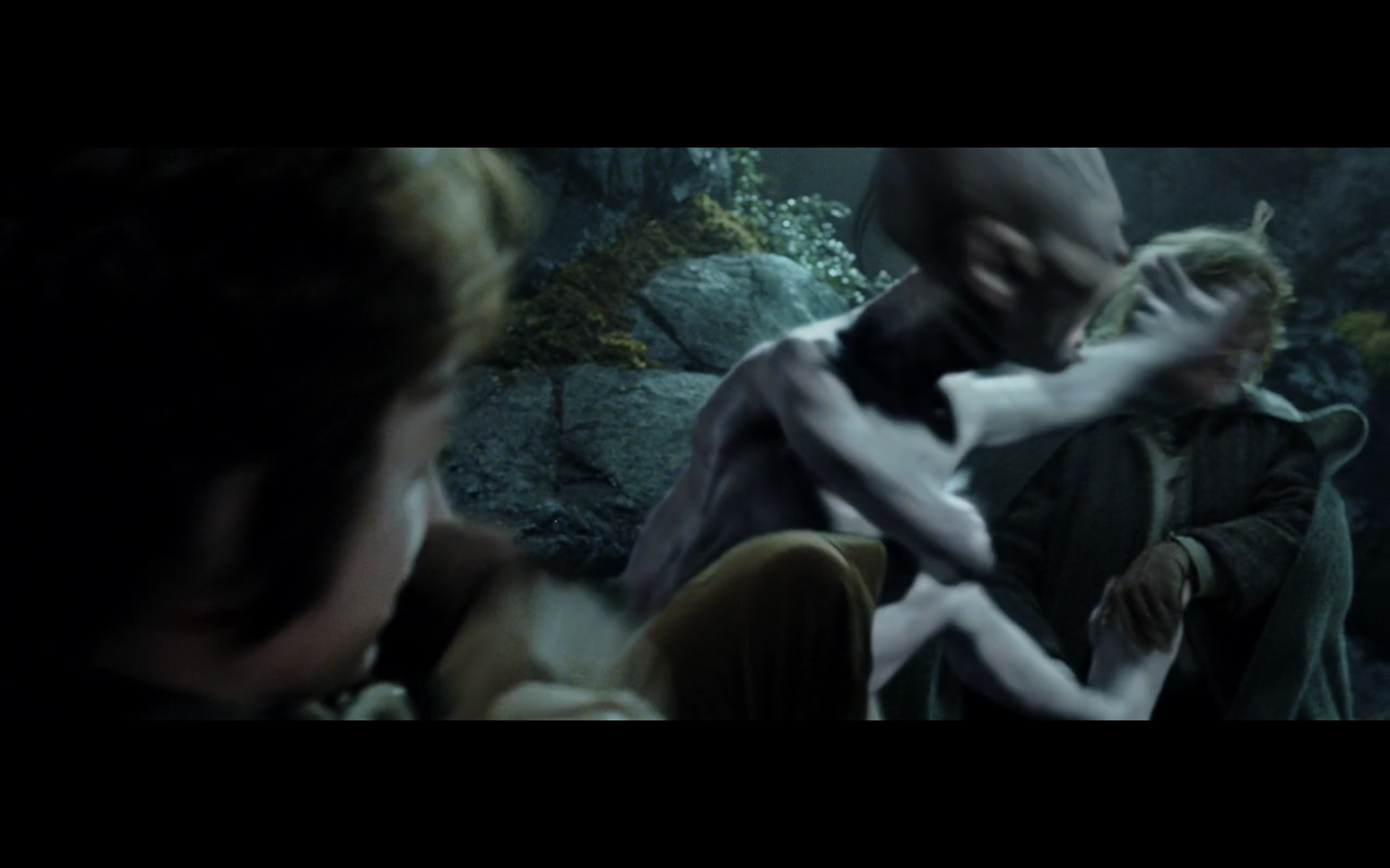 Great monologue though. Considering it’s the first we really hear from Gollum, other than, “Shire! Baggins!” when he was on the tortur-o-matic.