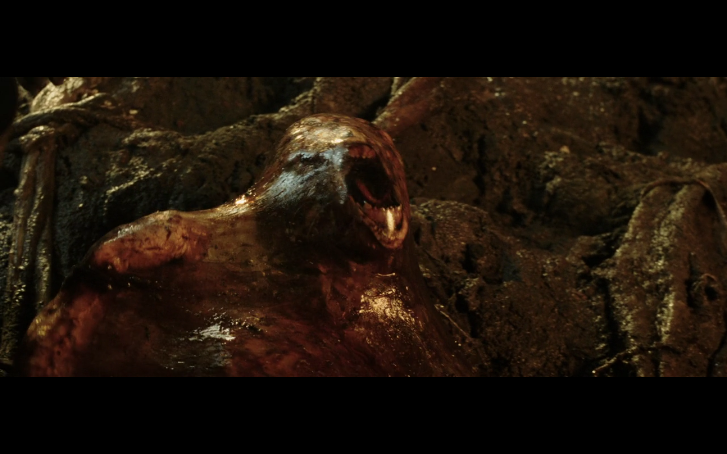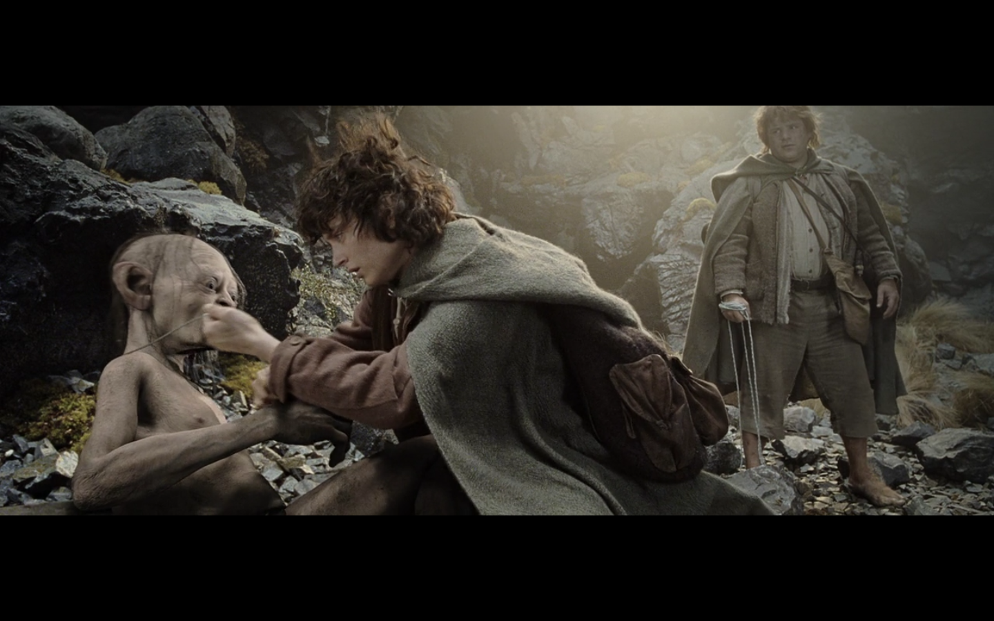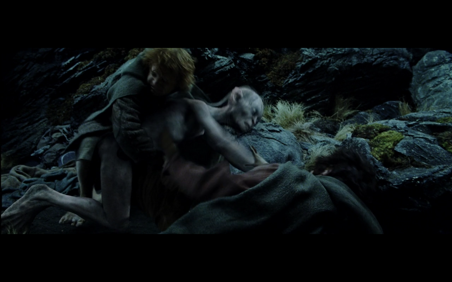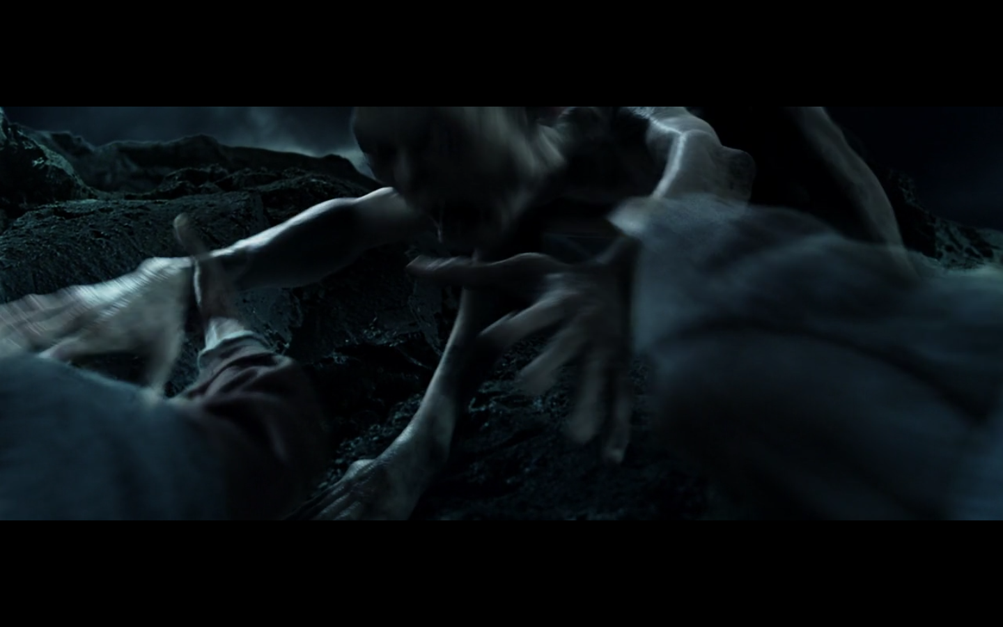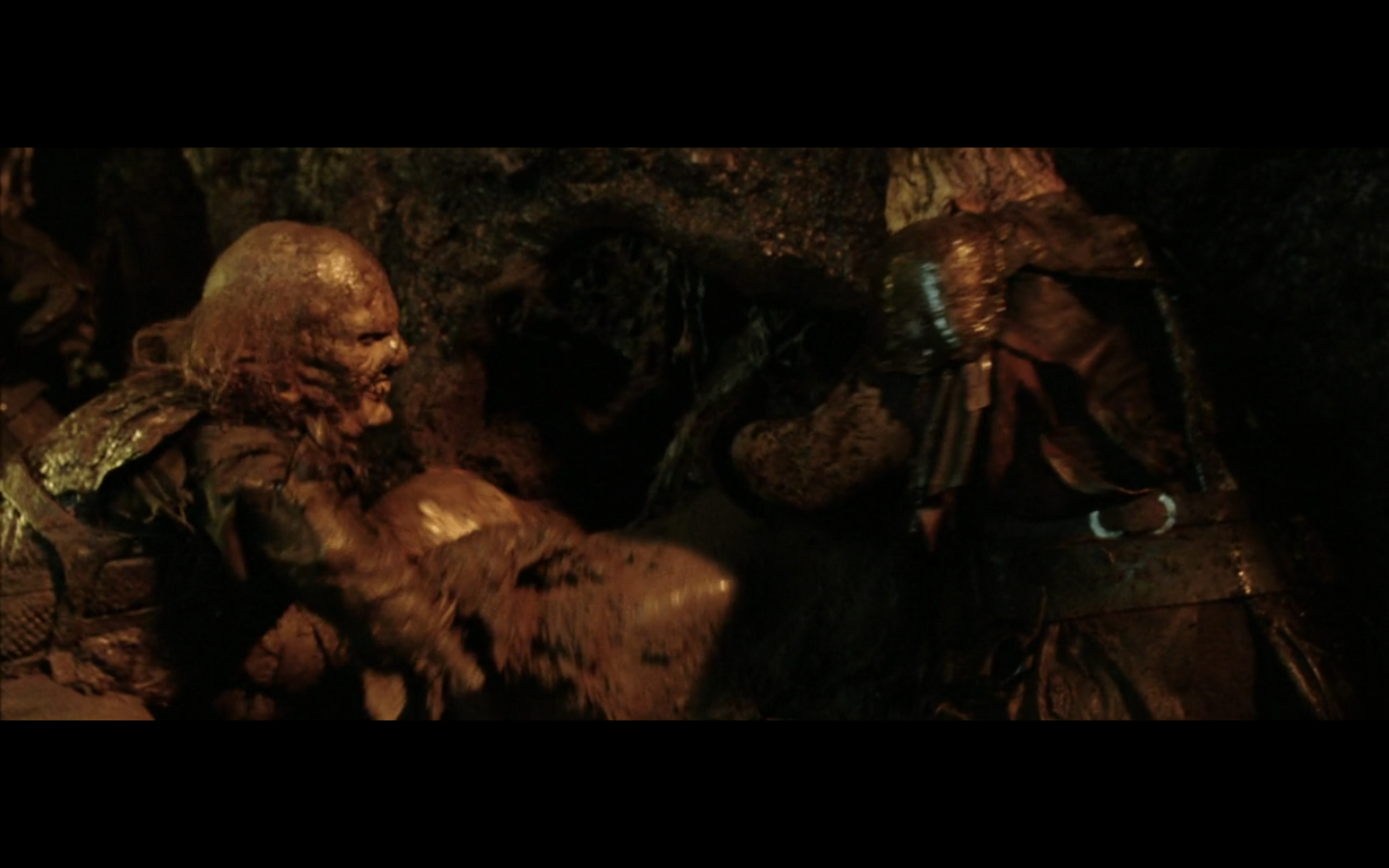 Great monologue though. Considering it’s the first we really hear from Gollum, other than, “Shire! Baggins!” when he was on the tortur-o-matic.