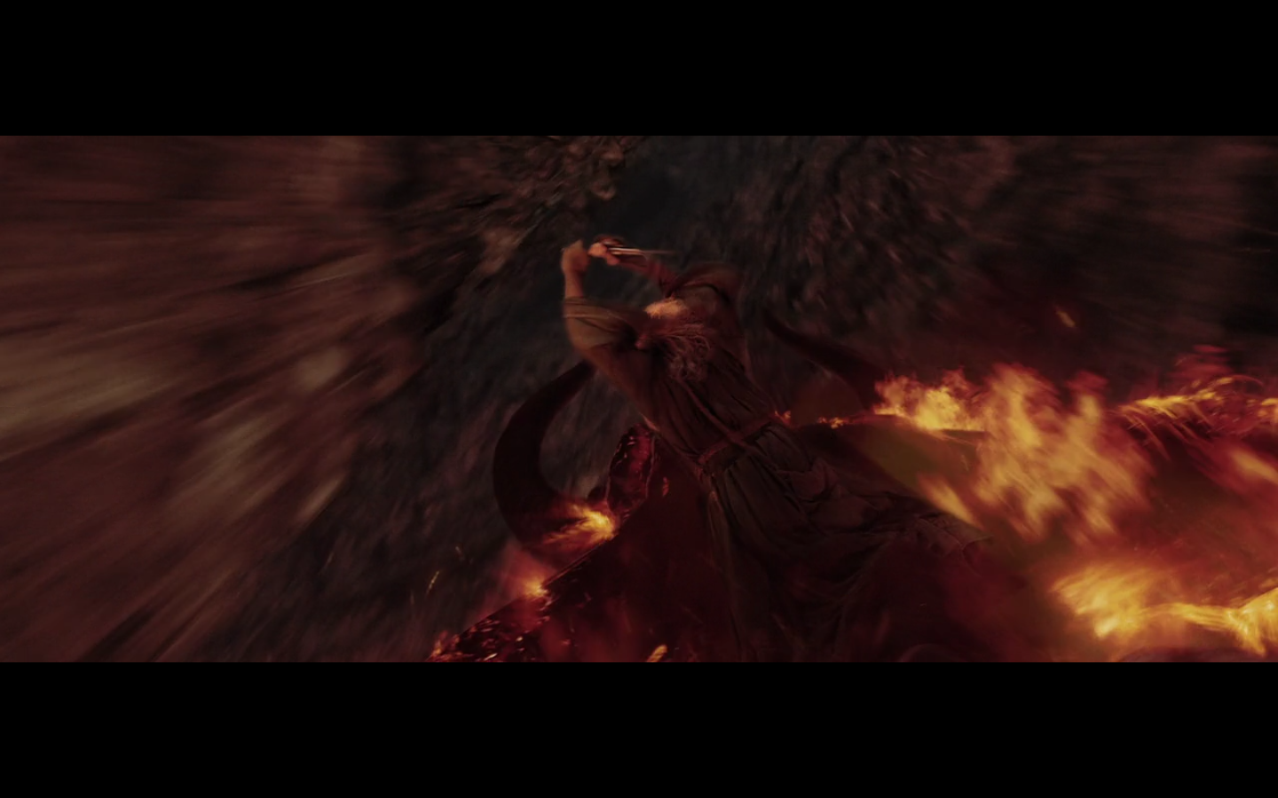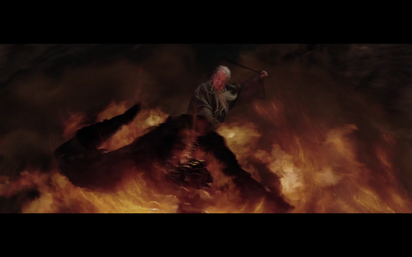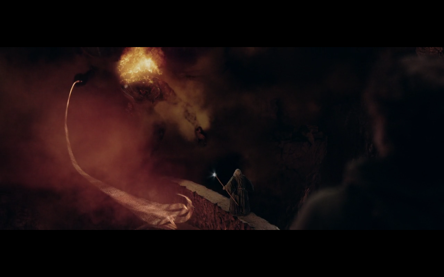(They also reedit it a bit. Since I’m pretty sure Frodo doesn’t scream until after Gandalf falls, and here they play the scream before the fall. Which I get, since that’s where we start. But still… kind of noticeable.)