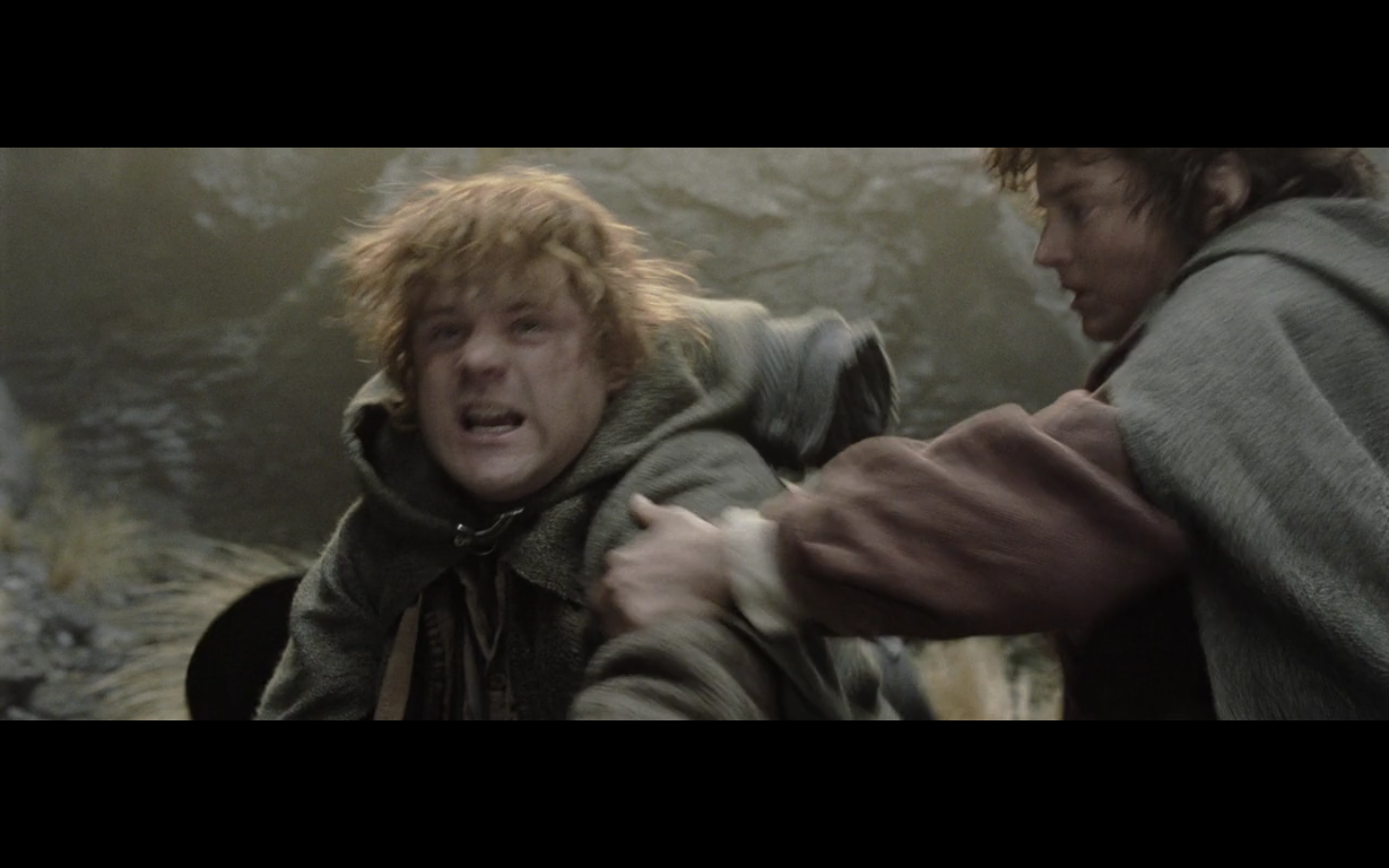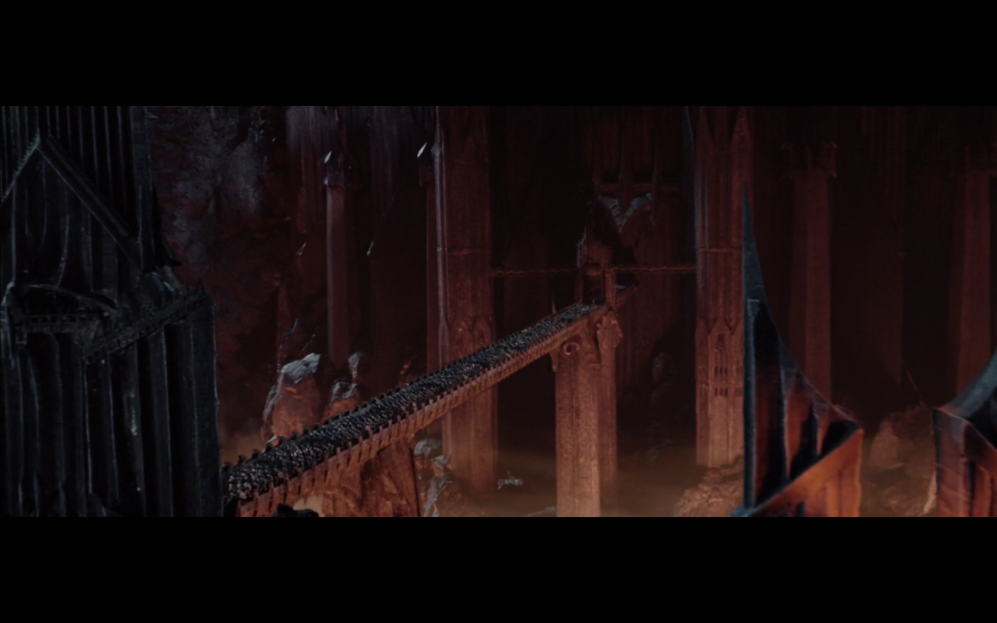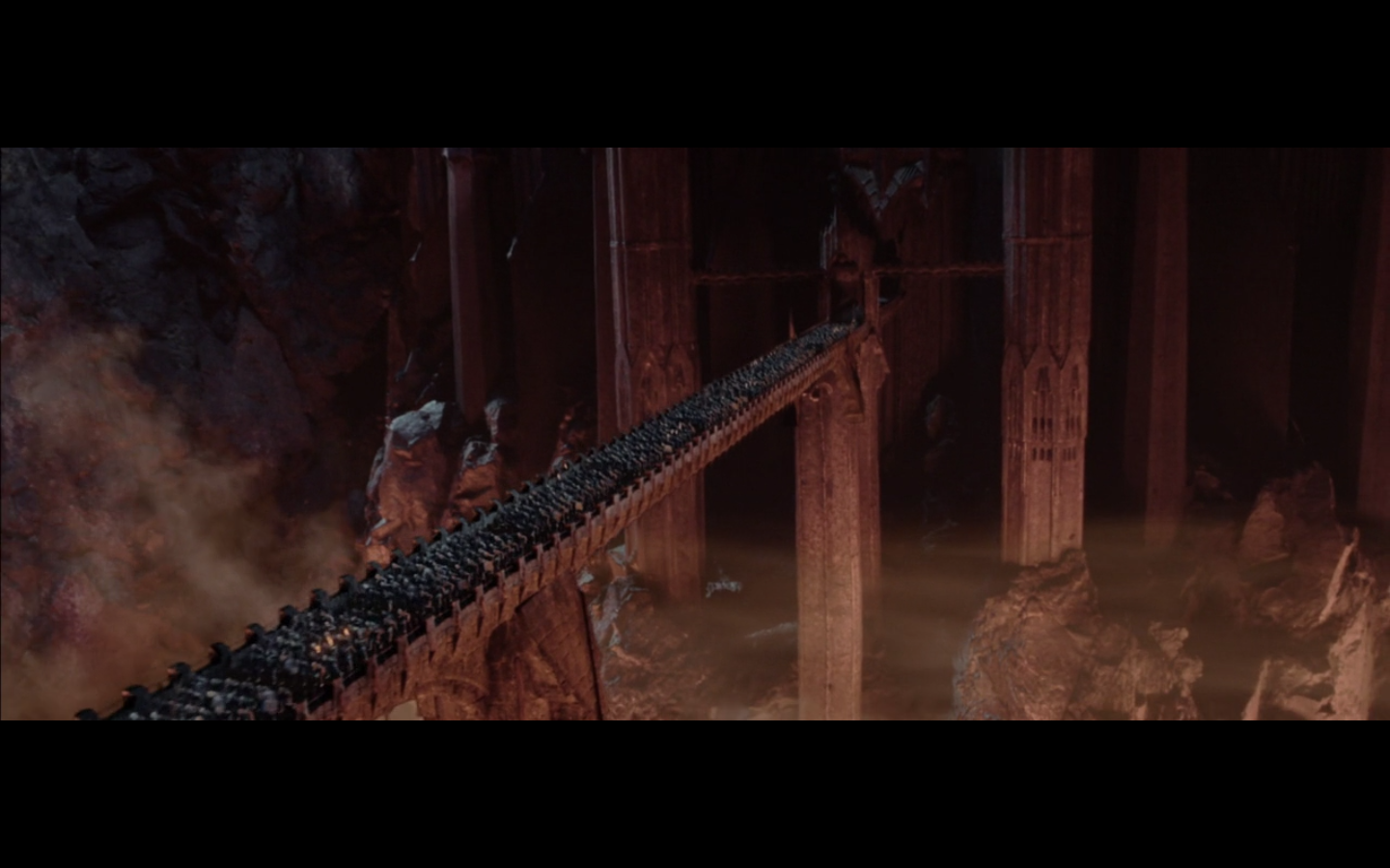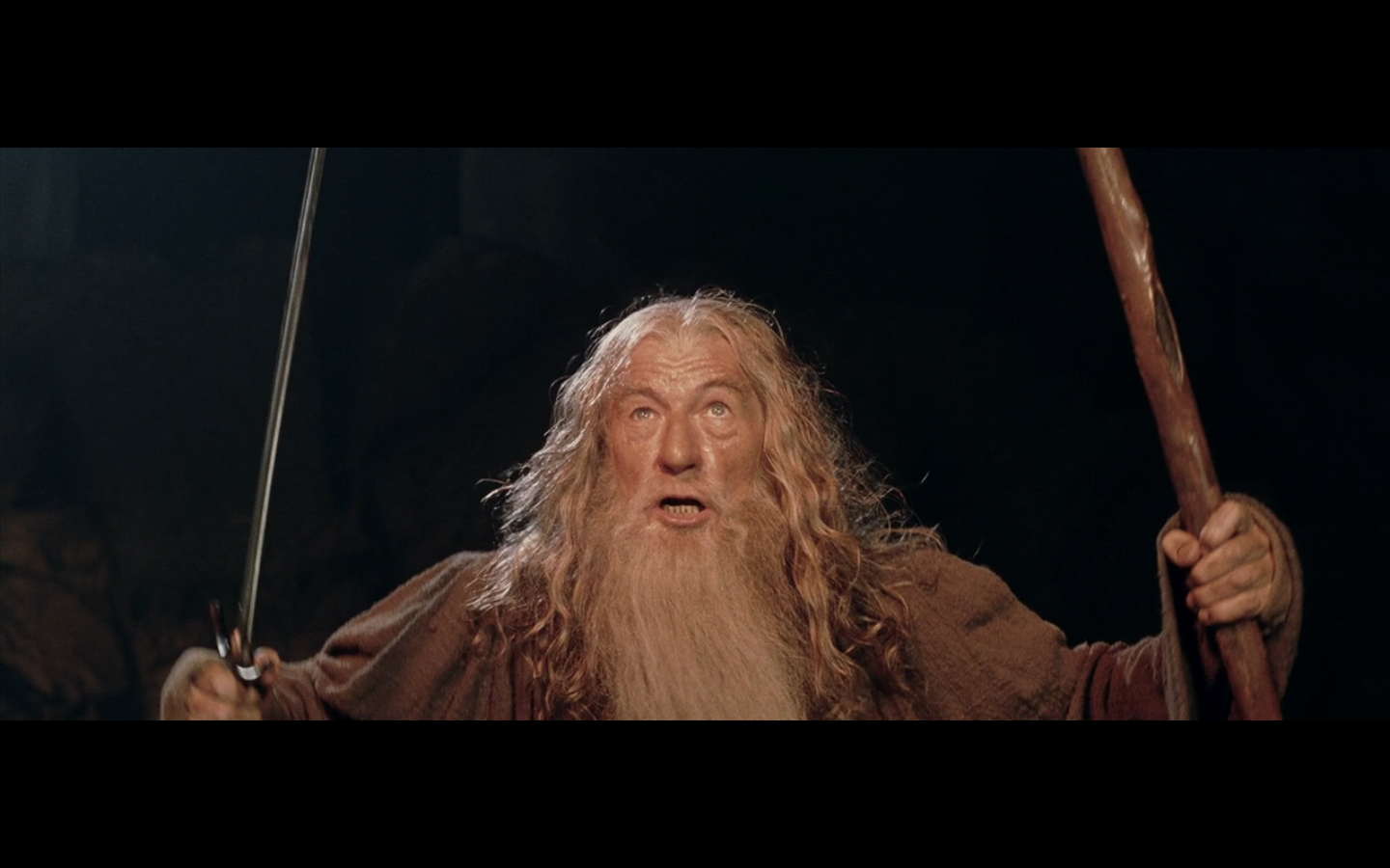 (They also reedit it a bit. Since I’m pretty sure Frodo doesn’t scream until after Gandalf falls, and here they play the scream before the fall. Which I get, since that’s where we start. But still… kind of noticeable.)