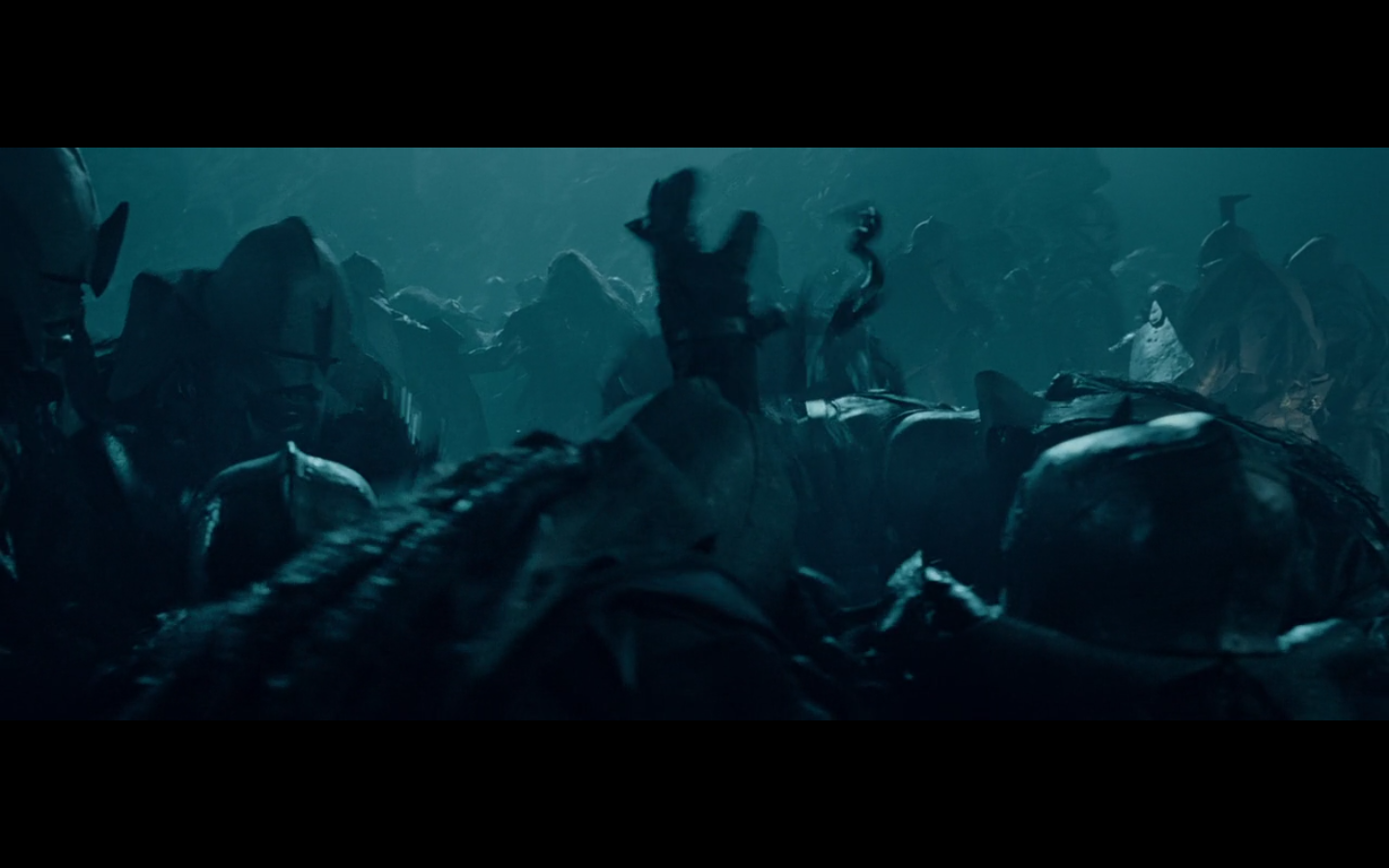 You know how this is bullshit, right? Once again, a simple understanding of spatial relationships takes me out of the film for a second. They zoom in from the snowy exterior of the mountain, through a little crack and into the inner chamber, which is where Gandalf seems to be fighting the Balrog. It’s a return to the previous film. But we know that the Bridge of Khazad-dum is right next to the exit of the mines, at ground level. There’s no snow down there.