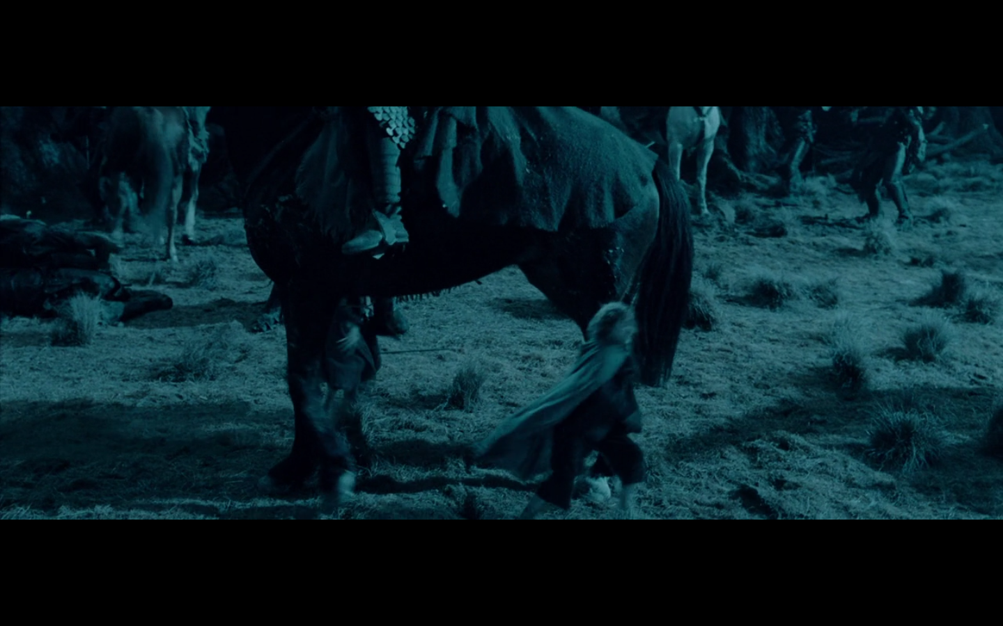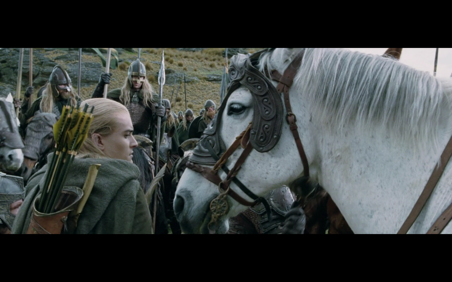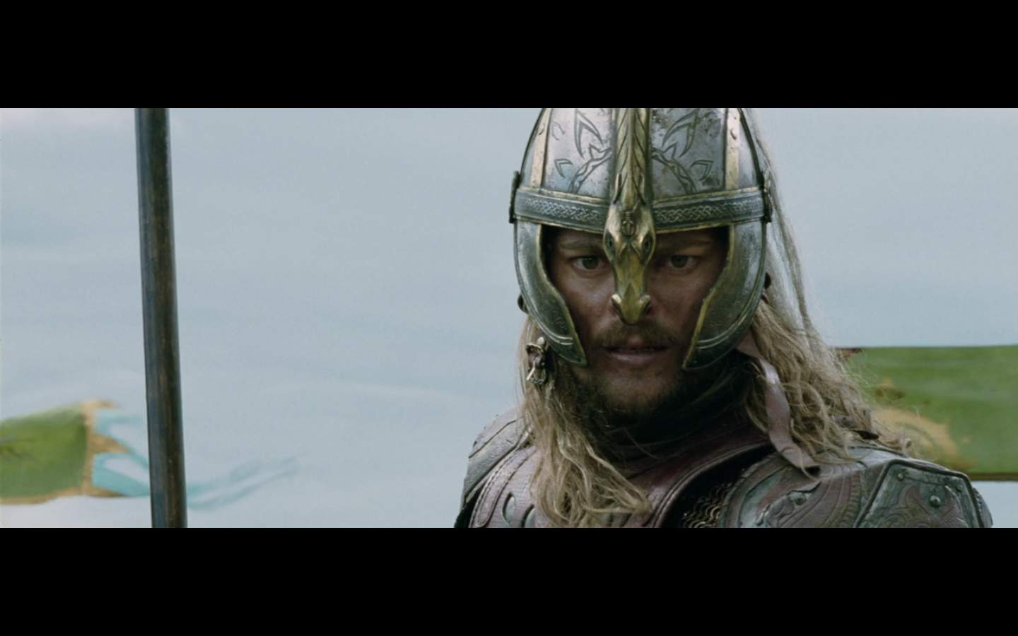 I’m just laughing cause his nose guard is a horse’s head, so it’s like his nose has a nose. I bet Theoden’s wife found him in a basket in the water. “I shall call him…’Noses.'” “That’s a bullshit name. We’re calling him Eomer.”